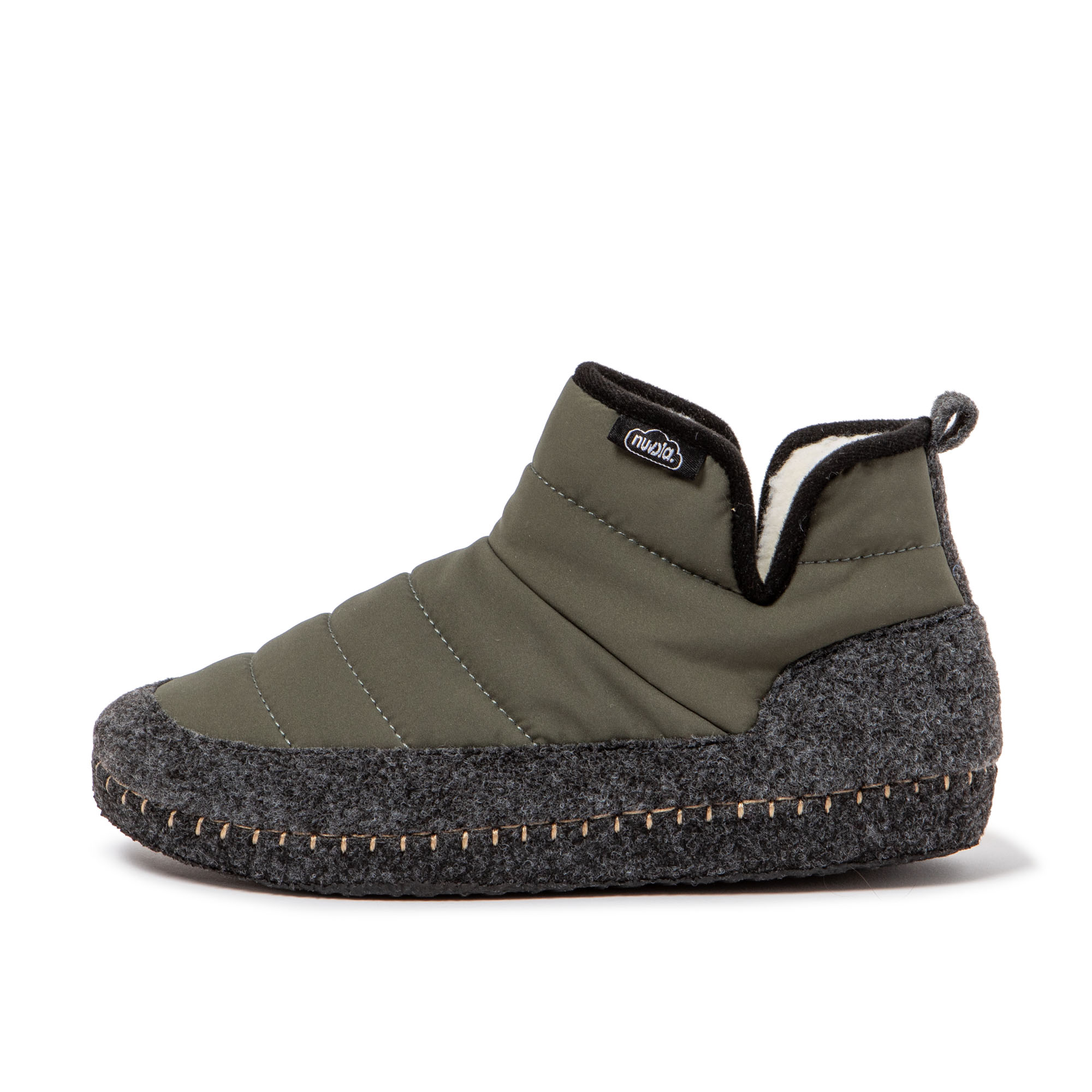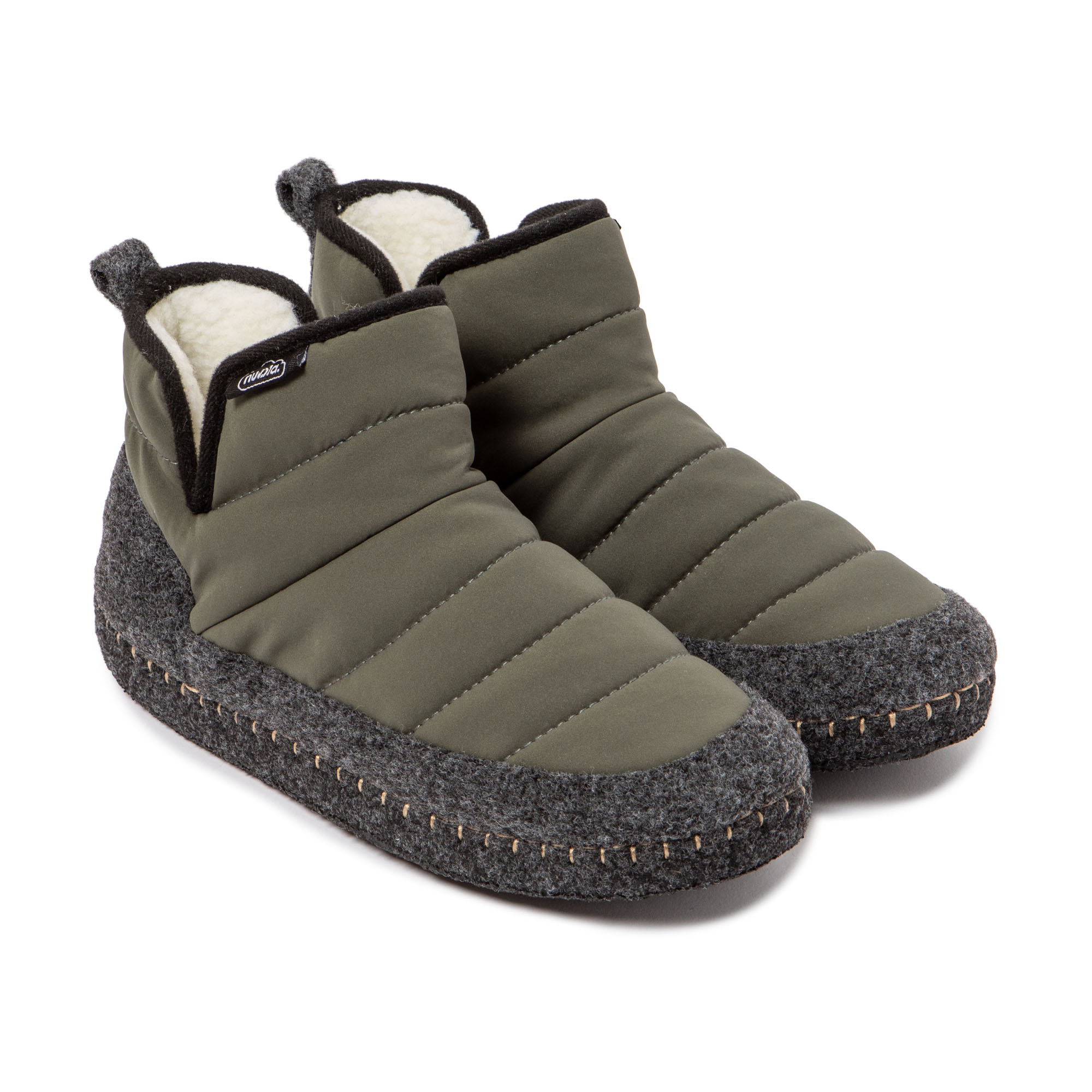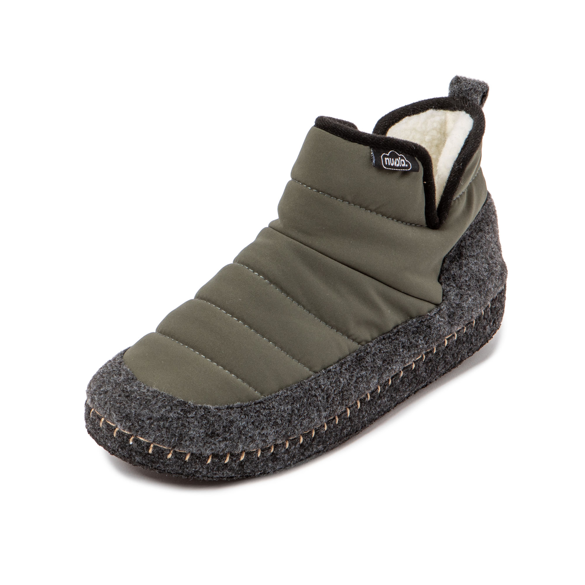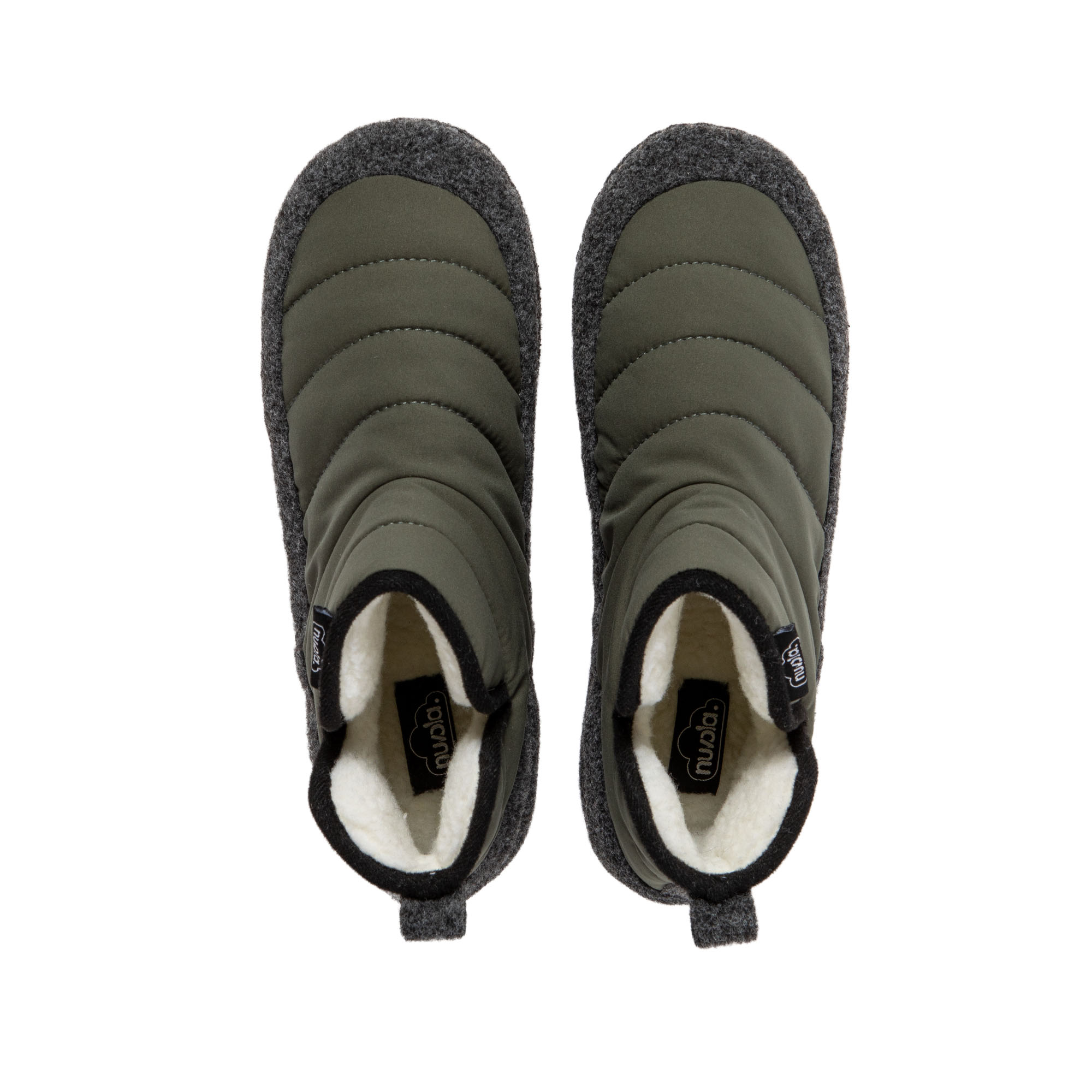 Nuvola Boot Wool – Chaussons montants pour homme et femme couleur vert militaire Conçues pour offrir chaleur, confort et style durant les journées froides, les Nuvola Boot Wool sont bien plus que de simples pantoufles. Ce modèle montants est pensé pour les hommes et femmes à la recherche d’un vrai confort à la maison, sans renoncer à un design original et robuste. L’intérieur et l’extérieur en polyester matelassé enveloppent le pied d’un rembourrage chaud qui garde la chaleur même pendant les jours les plus froids d’automne et d’hiver. La semelle en latex antidérapant assure une démarche stable, silencieuse et sans traces, idéale pour se déplacer dans toute la maison. Ces chaussons Nuvola couvrent entièrement la cheville, offrant ainsi une protection thermique et une stabilité supplémentaires. Leur semelle intérieure confortable et amortissante transforme chaque pas en un moment de détente. La couture brodée ajoute une touche artisanale et distinctive. Parfaits pour se détendre près de la cheminée à la montagne, sortir les poubelles, promener le chien ou se reposer au camping, ces chaussons de Noël sont aussi une excellente idée cadeau. Leur design polyvalent s’adapte à toutes les occasions où confort et chaleur sont de mise. Profitez de l’hiver avec les chaussures amusantes de Nuvola : une collection pensée pour chouchouter vos pieds avec style, même à la maison.