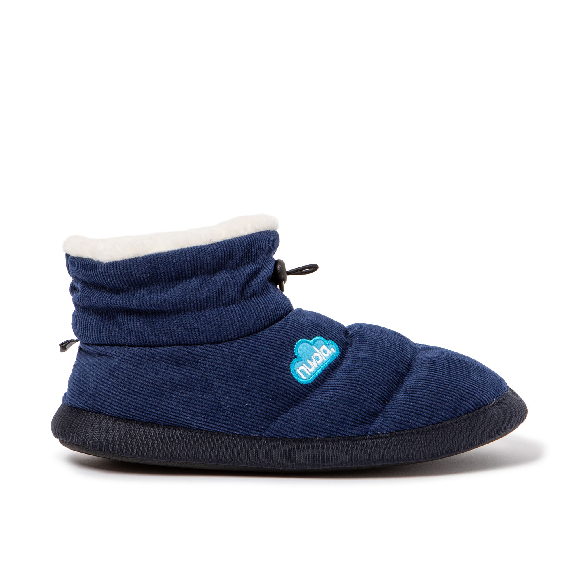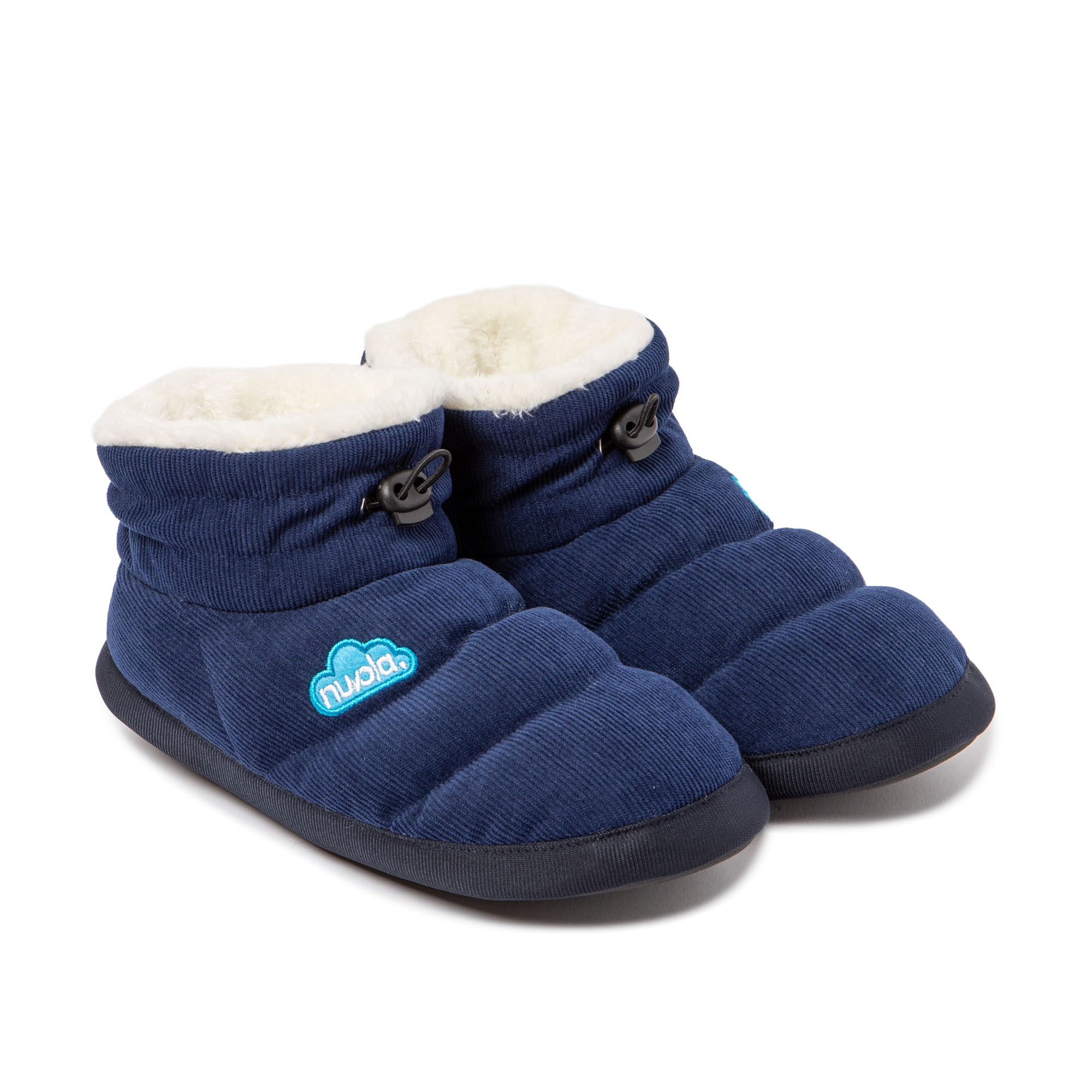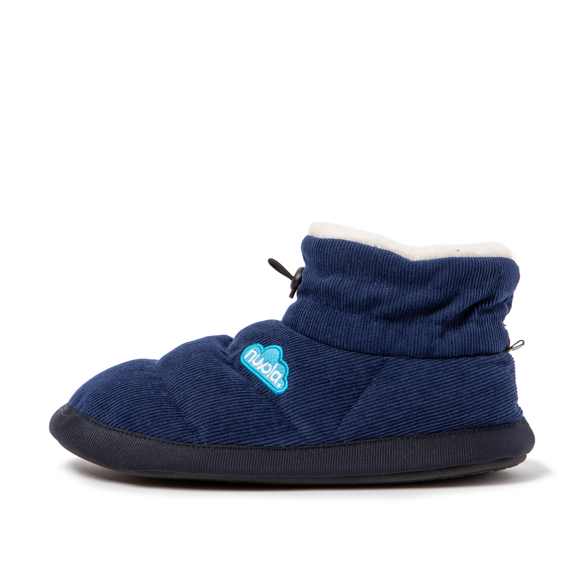 Nuvola Boot Cordy bleu foncé – Chaussons de maison type botte pour homme et femme Conçus à Barcelone, les chaussons Nuvola Boot Cordy offrent l'équilibre parfait entre tradition et confort. Leur style bottine qui couvre la cheville offre une meilleure protection thermique et une sensation enveloppante idéale pour les mois d'automne et d'hiver. Pensés pour les hommes et les femmes, ce sont les chaussons idéaux pour ceux qui apprécient le design original, le confort et la fonctionnalité au quotidien. L'extérieur en velours côtelé, d'inspiration classique, leur donne un air sophistiqué et intemporel. À l'intérieur, le rembourrage en fourrure synthétique ultra-chaude garantit une sensation immédiate de chaleur. Chaque pas devient plus léger grâce à la semelle en mousse mémoire, qui amortit la marche et procure une sensation de relaxation totale. La semelle, exclusive à Nuvola, est fabriquée en TPR antidérapant, conçue pour ne pas marquer le sol et ne pas faire de bruit en marchant. Cela les rend particulièrement pratiques pour se déplacer à la maison, mais aussi résistants pour des moments en extérieur comme promener le chien, sortir les poubelles, marcher dans l'herbe, profiter du feu de cheminée à la montagne ou se détendre au camping. Grâce à leur style chaud et accueillant, ce sont également d'excellentes pantoufles de Noël. Elles représentent un choix idéal pour un cadeau de Noël, un Secret Santa, ou tout autre cadeau spécial en hiver. Découvrez avec les chaussons Nuvola Boot Cordy des chaussures amusantes et fonctionnelles qui prennent soin de vos pieds et élèvent votre routine quotidienne avec design et chaleur. Parce que rester chez soi n'a jamais été aussi confortable... ni aussi élégant.