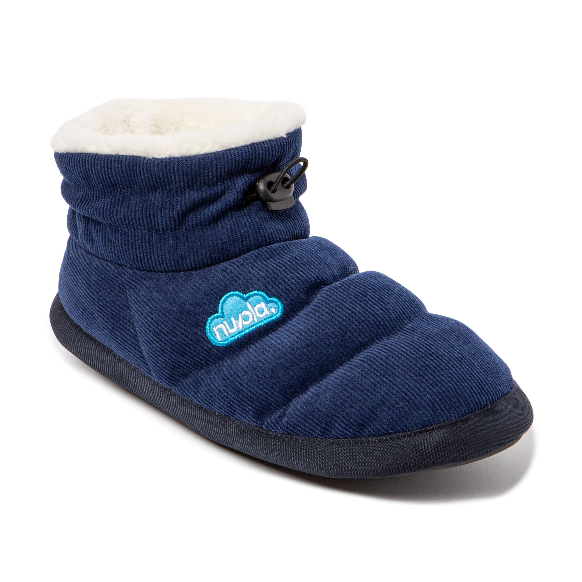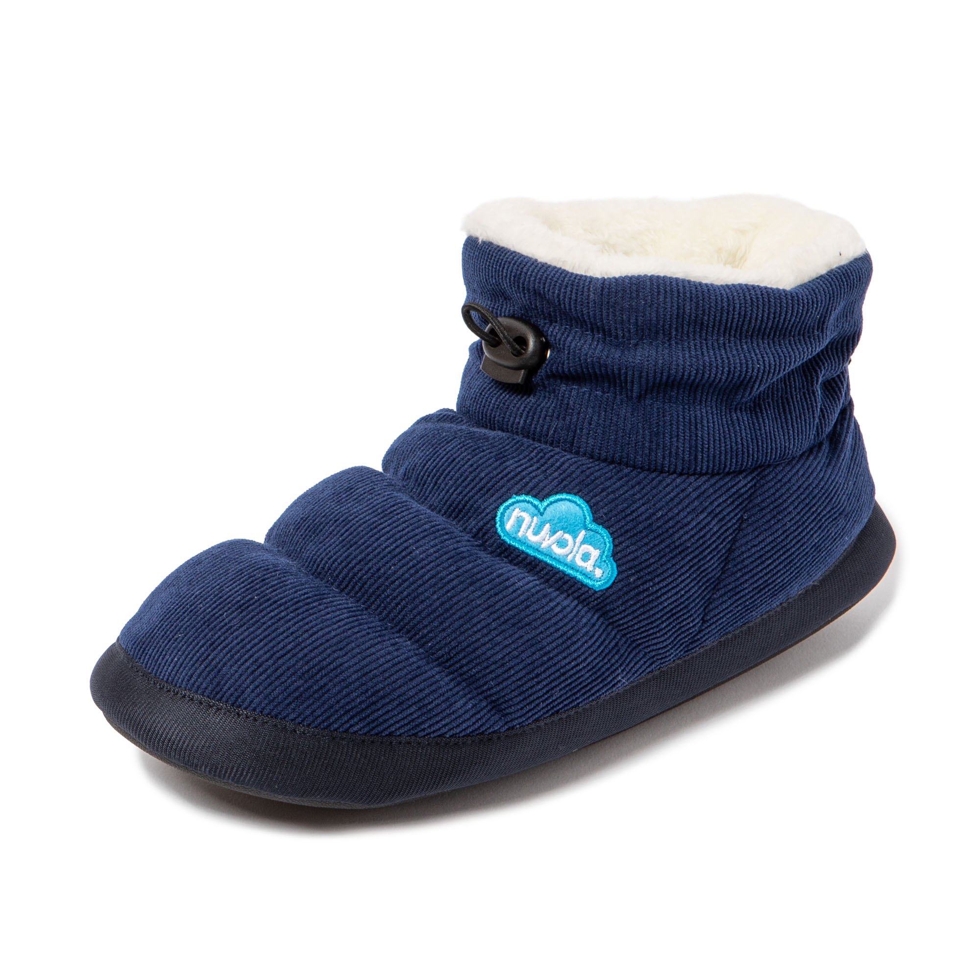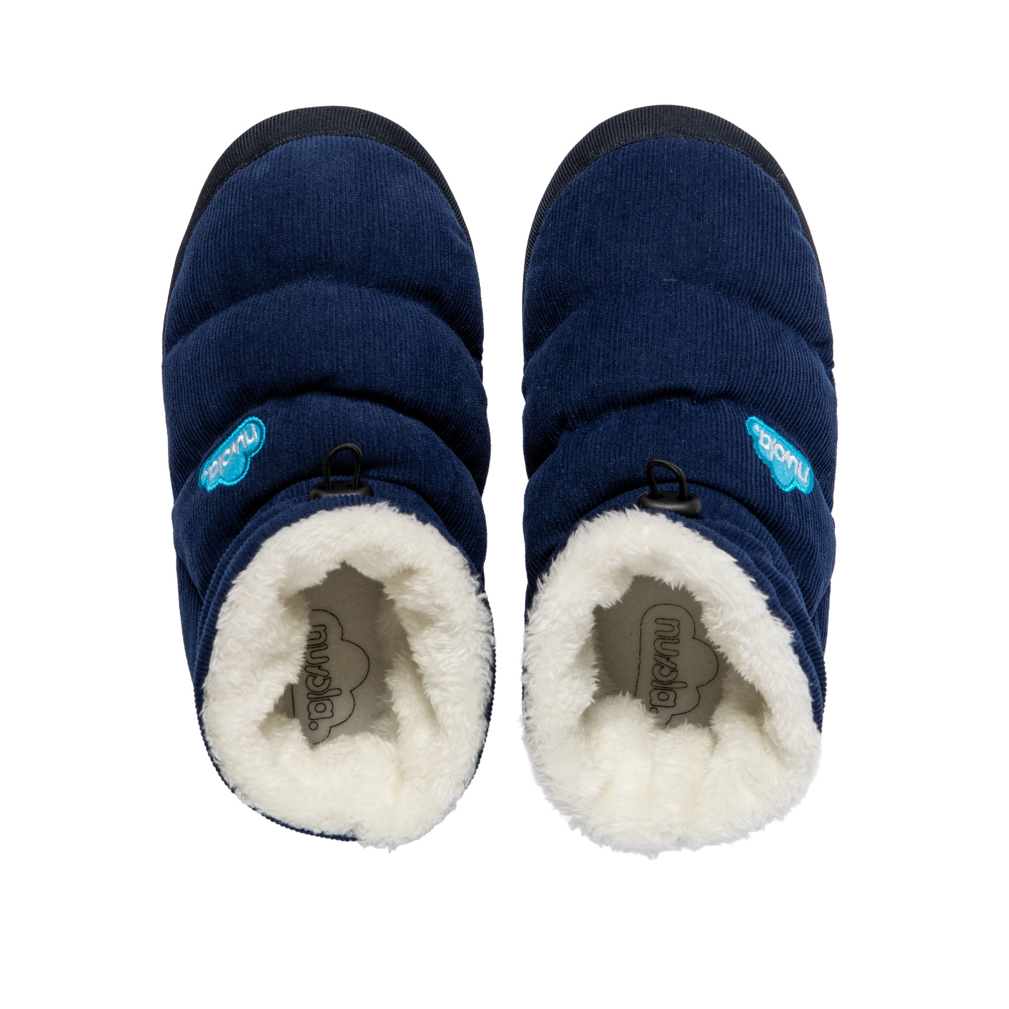 Nuvola Boot Cordy bleu foncé – Chaussons de maison type botte pour homme et femme Conçus à Barcelone, les chaussons Nuvola Boot Cordy offrent l'équilibre parfait entre tradition et confort. Leur style bottine qui couvre la cheville offre une meilleure protection thermique et une sensation enveloppante idéale pour les mois d'automne et d'hiver. Pensés pour les hommes et les femmes, ce sont les chaussons idéaux pour ceux qui apprécient le design original, le confort et la fonctionnalité au quotidien. L'extérieur en velours côtelé, d'inspiration classique, leur donne un air sophistiqué et intemporel. À l'intérieur, le rembourrage en fourrure synthétique ultra-chaude garantit une sensation immédiate de chaleur. Chaque pas devient plus léger grâce à la semelle en mousse mémoire, qui amortit la marche et procure une sensation de relaxation totale. La semelle, exclusive à Nuvola, est fabriquée en TPR antidérapant, conçue pour ne pas marquer le sol et ne pas faire de bruit en marchant. Cela les rend particulièrement pratiques pour se déplacer à la maison, mais aussi résistants pour des moments en extérieur comme promener le chien, sortir les poubelles, marcher dans l'herbe, profiter du feu de cheminée à la montagne ou se détendre au camping. Grâce à leur style chaud et accueillant, ce sont également d'excellentes pantoufles de Noël. Elles représentent un choix idéal pour un cadeau de Noël, un Secret Santa, ou tout autre cadeau spécial en hiver. Découvrez avec les chaussons Nuvola Boot Cordy des chaussures amusantes et fonctionnelles qui prennent soin de vos pieds et élèvent votre routine quotidienne avec design et chaleur. Parce que rester chez soi n'a jamais été aussi confortable... ni aussi élégant.