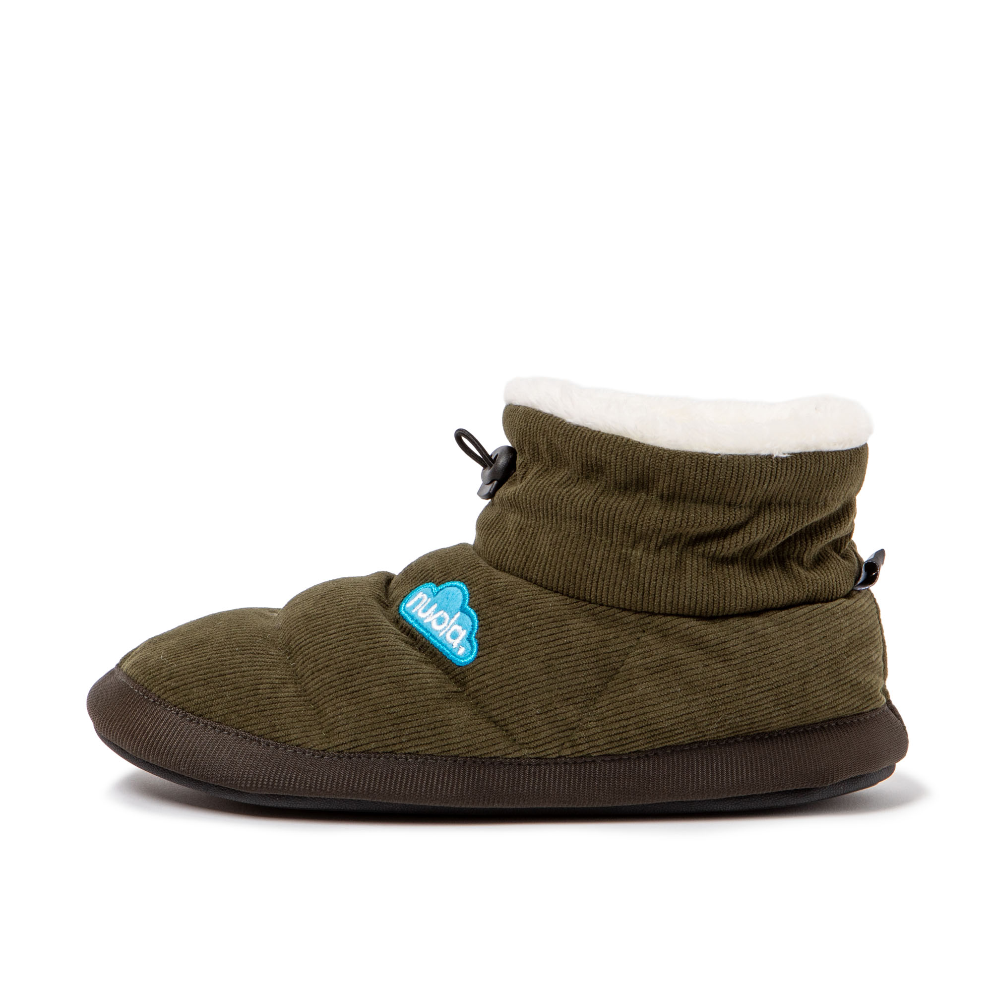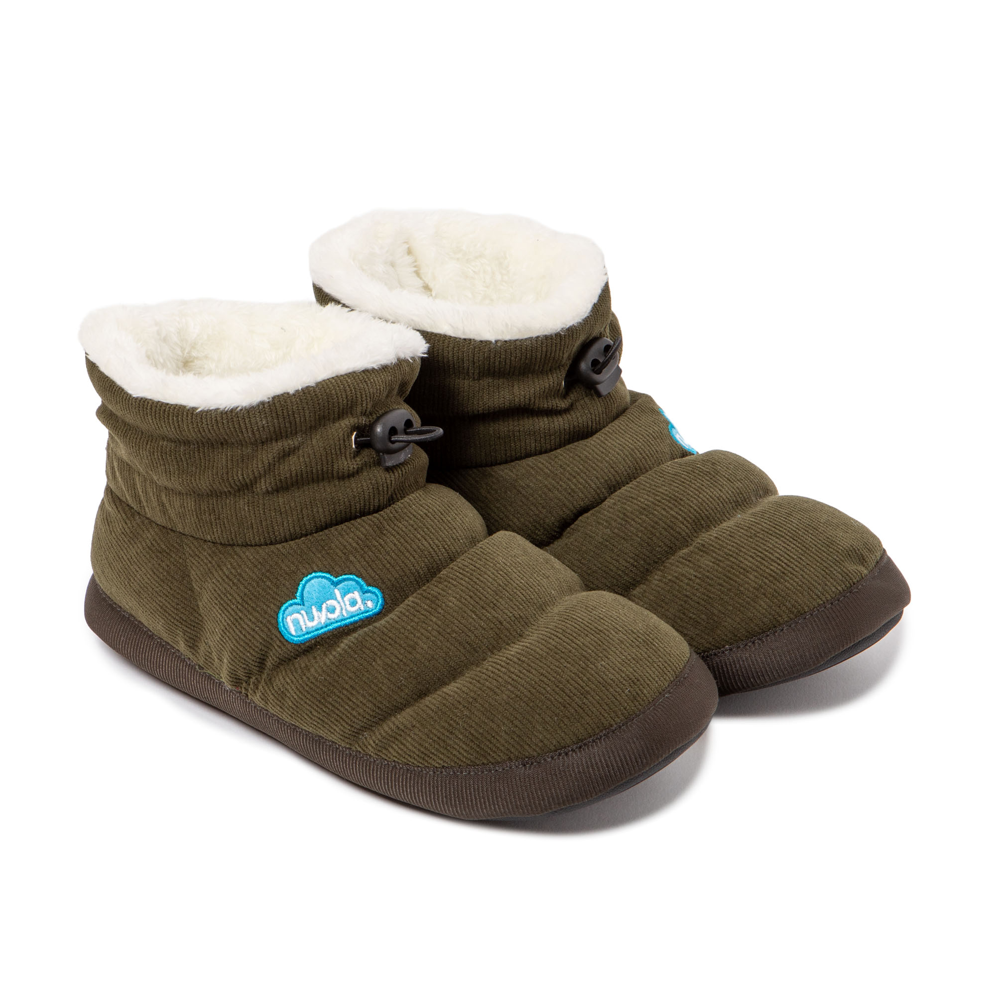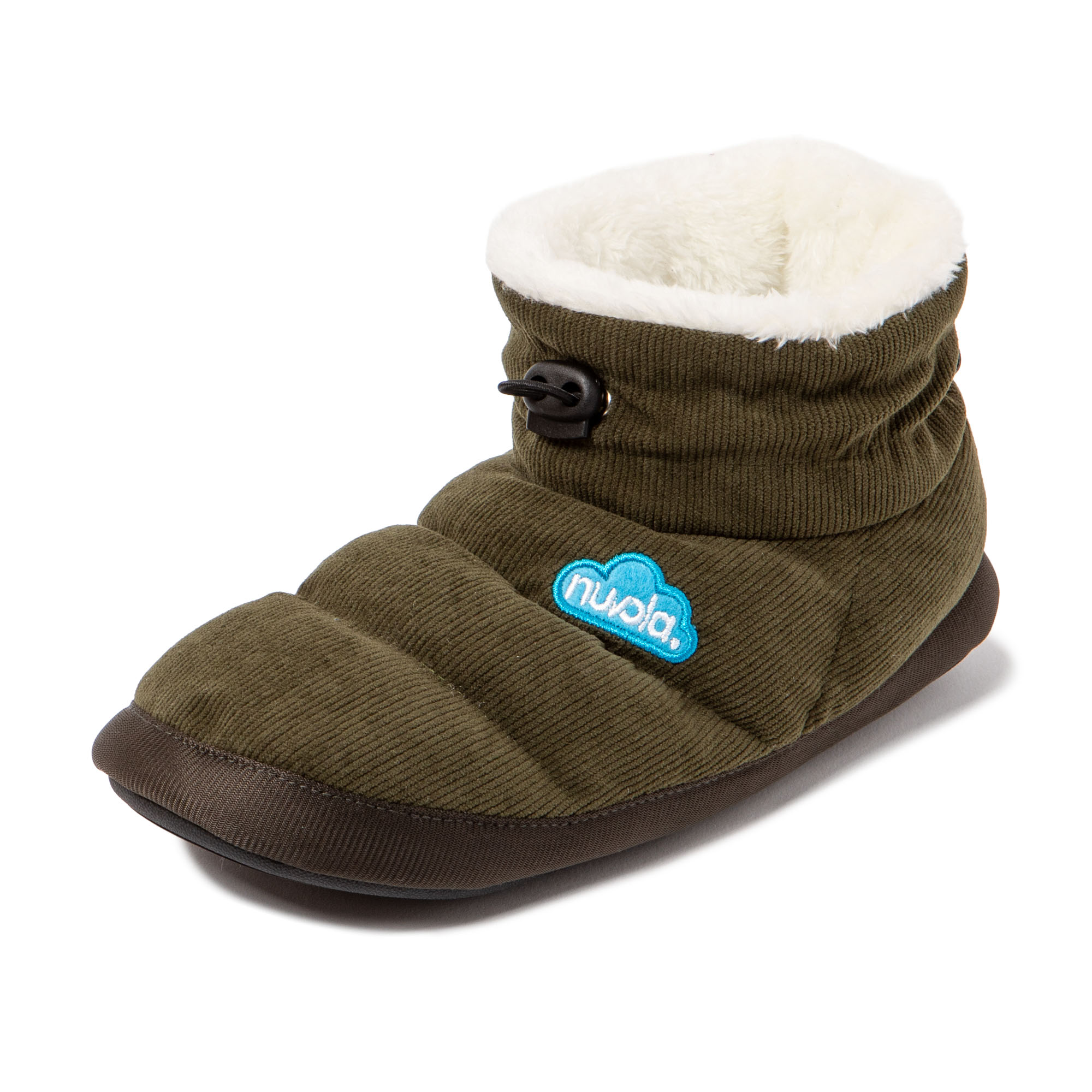 Nuvola Boot Cordy vert militaire – Chaussons bottines au design classique pour femme et homme Conçues à Barcelone, les Nuvola Boot Cordy offrent l’équilibre parfait entre tradition et confort. Leur style bottine qui couvre la cheville apporte une protection thermique supplémentaire et une sensation enveloppante, idéale pour l’automne et l’hiver. Pensées pour femmes et hommes, elles sont parfaites pour celles et ceux qui recherchent un design original, du confort et de la fonctionnalité au quotidien. L’extérieur en tissu côtelé d’inspiration classique leur donne une allure sophistiquée et intemporelle. À l’intérieur, la doublure en fausse fourrure extra chaude procure une chaleur immédiate. La semelle intérieure en mousse à mémoire de forme amortit chaque pas, pour une sensation totale de détente. La semelle exclusive de Nuvola, en TPR antidérapant, ne laisse pas de traces et ne fait aucun bruit. Ces chaussons sont donc parfaits pour la maison, mais aussi assez résistants pour l’extérieur : promener le chien, sortir les poubelles, marcher sur la pelouse, profiter du feu de cheminée à la montagne ou se détendre au camping. Avec leur style chaleureux et accueillant, elles sont aussi une excellente idée de cadeau de Noël. Parfaites pour un Secret Santa, l’Épiphanie ou toute autre occasion spéciale en hiver. Découvrez dans les Nuvola Boot Cordy des chaussures originales et fonctionnelles qui chouchoutent vos pieds avec style et chaleur. Être à la maison n’a jamais été aussi confortable… ni aussi élégant.