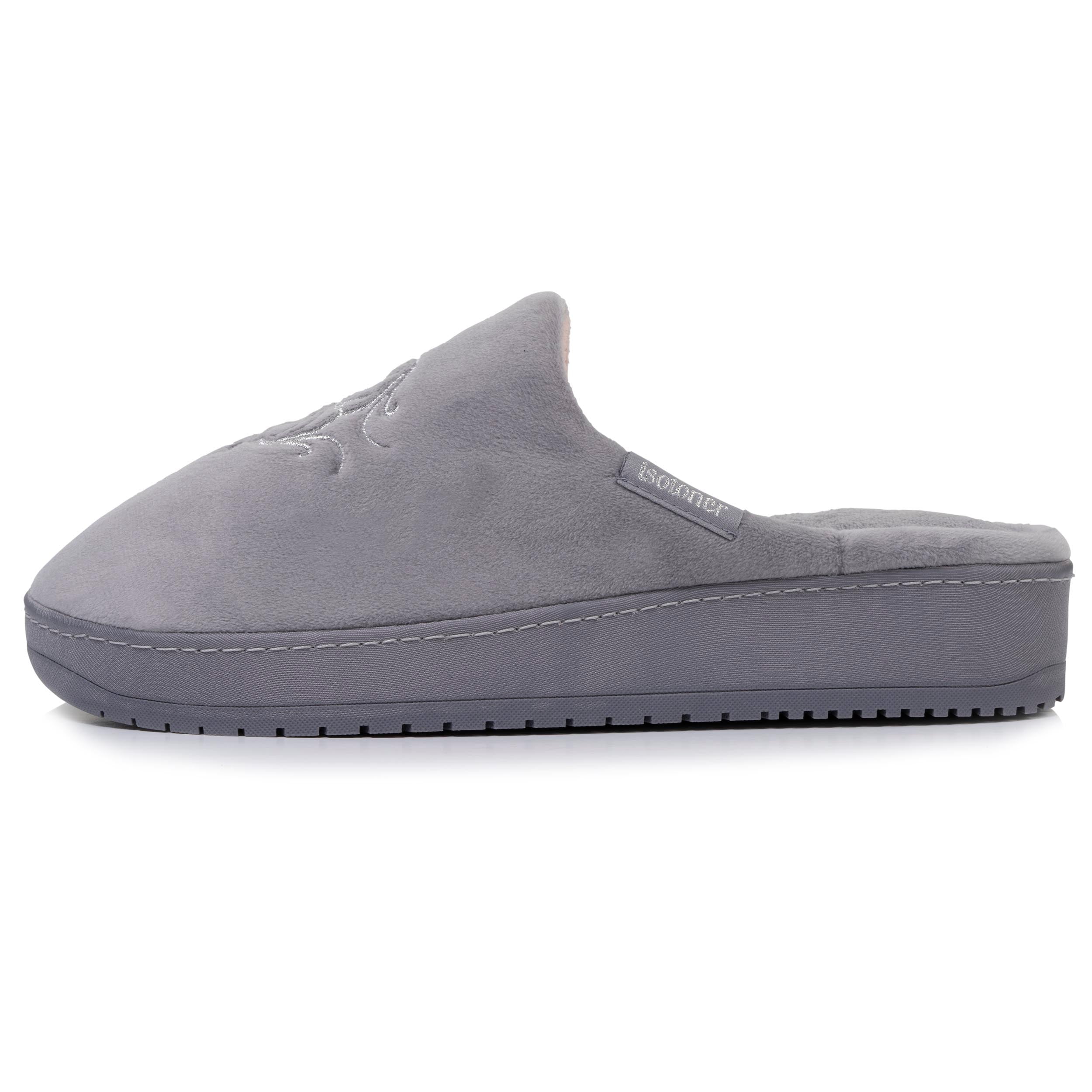 Ces chaussons mules talons couleur gris pour femme sauront vous séduire par leur extrême confort. En plus de ses 3,7 cm de talon, la semelle ergonomique de ces chaussons mules femme vous assurera une stabilité et un confort optimal. De plus, le velours ultra doux présent sur ce chausson mule pour femme est une matière soyeuse à l'aspect chic qui ajoutera sa touche de charme. Ces pantoufles sont lavables en machine à 30°C.