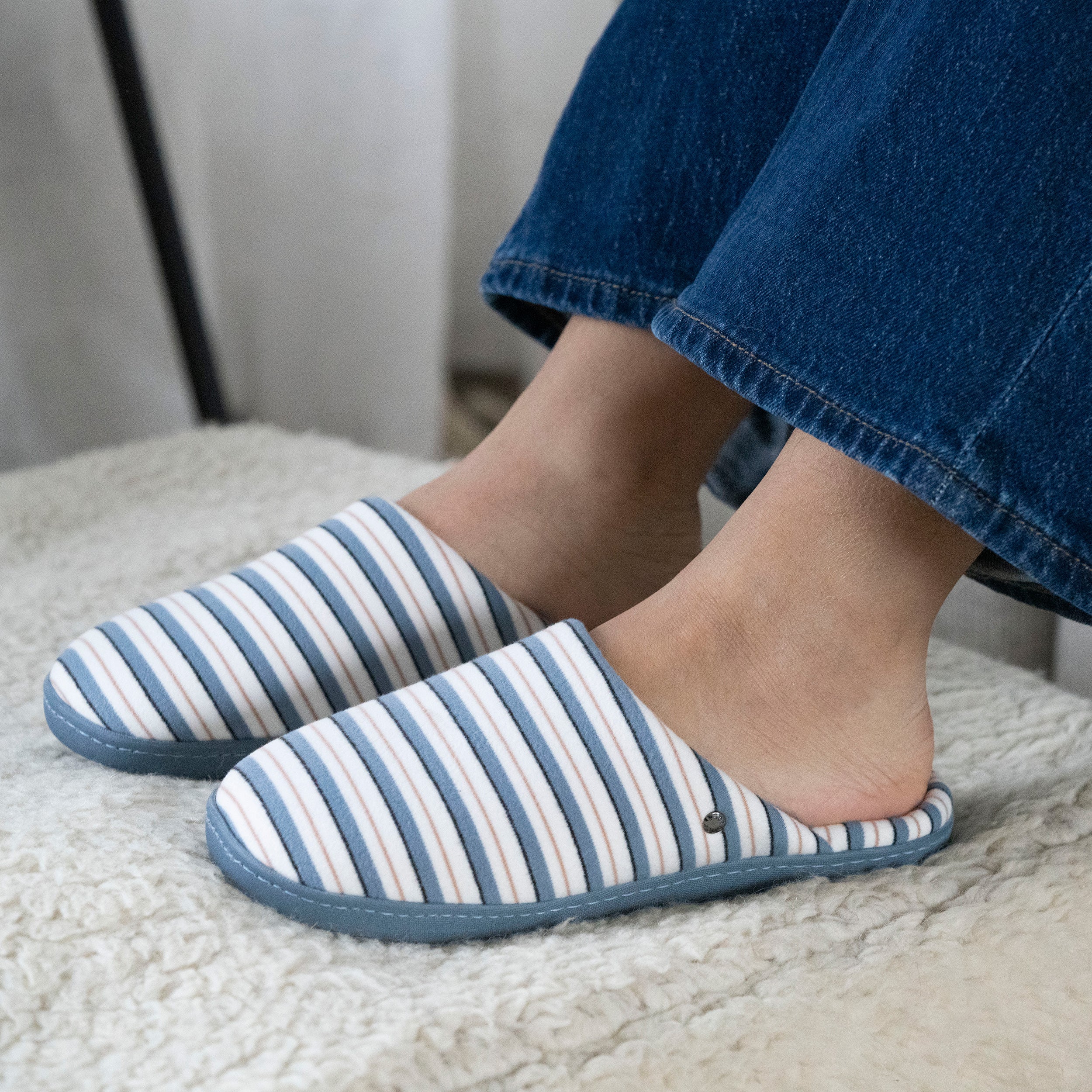 Ces chaussons mules rayure marinière pour femme sont originales et sophistiquées. Le tissu de ces chaussons mules est en jersey ultra doux qui vous apportera douceur et souplesse. De plus, le coton utilisé pour l'intérieur de ces chaussons femme est issu de l'agriculture biologique. Le confort de ce chausson est optimal grâce à l'utilisation d'une mousse EVERYWEAR™. Leur semelle ergonomique s'adapte à la forme de votre voûte plantaire pour un meilleur maintien du pied. Ces pantoufles mules confort sont lavables en machine à 30°C.