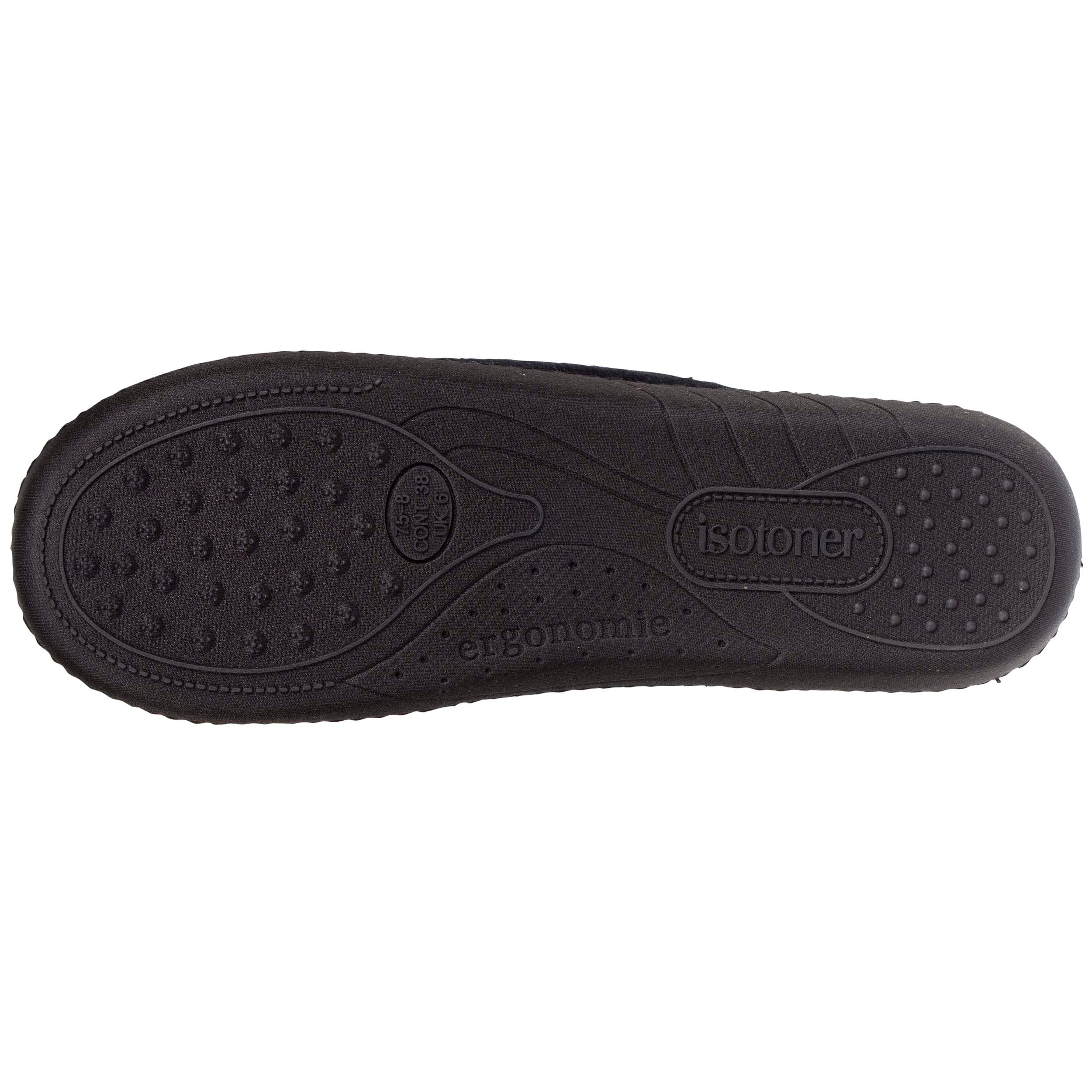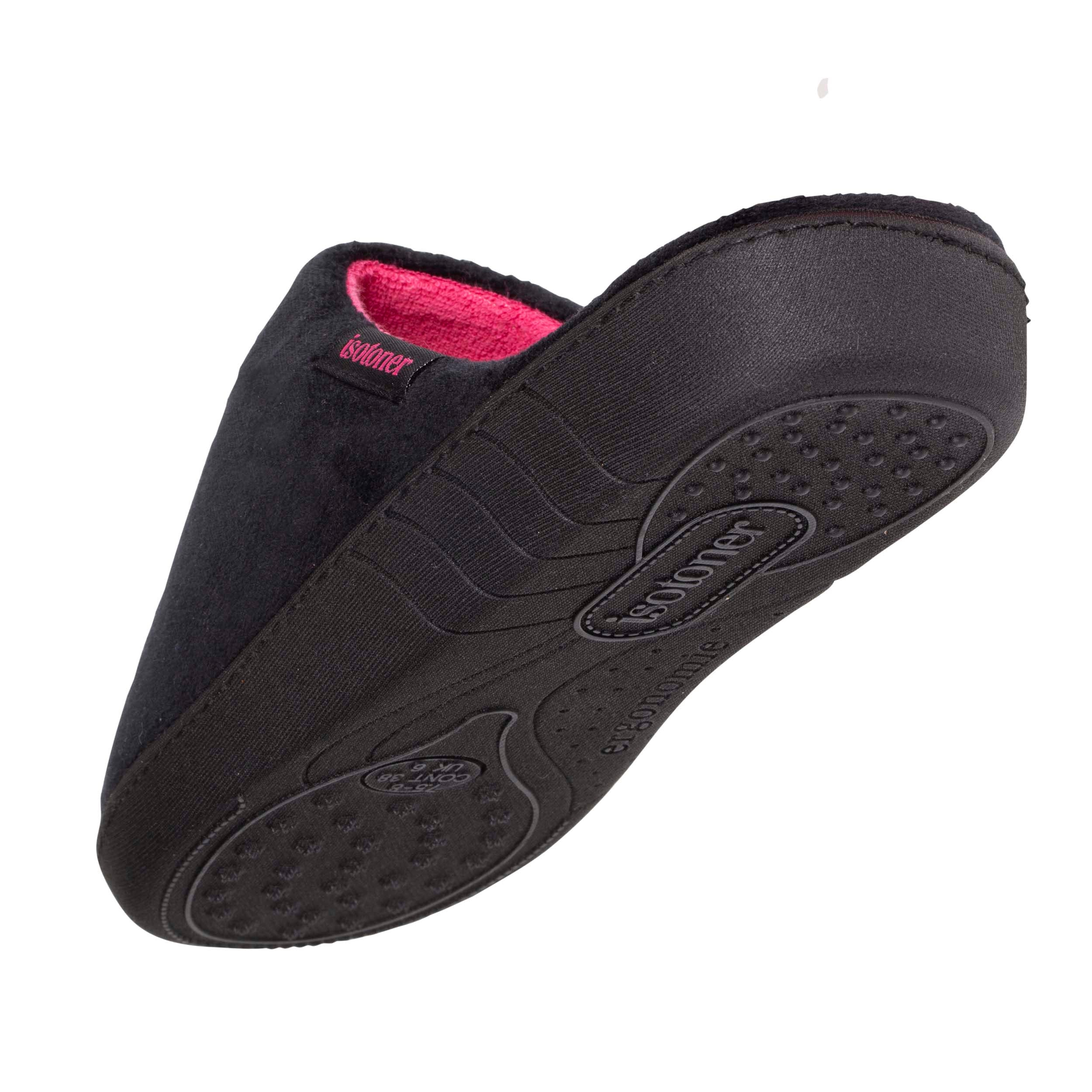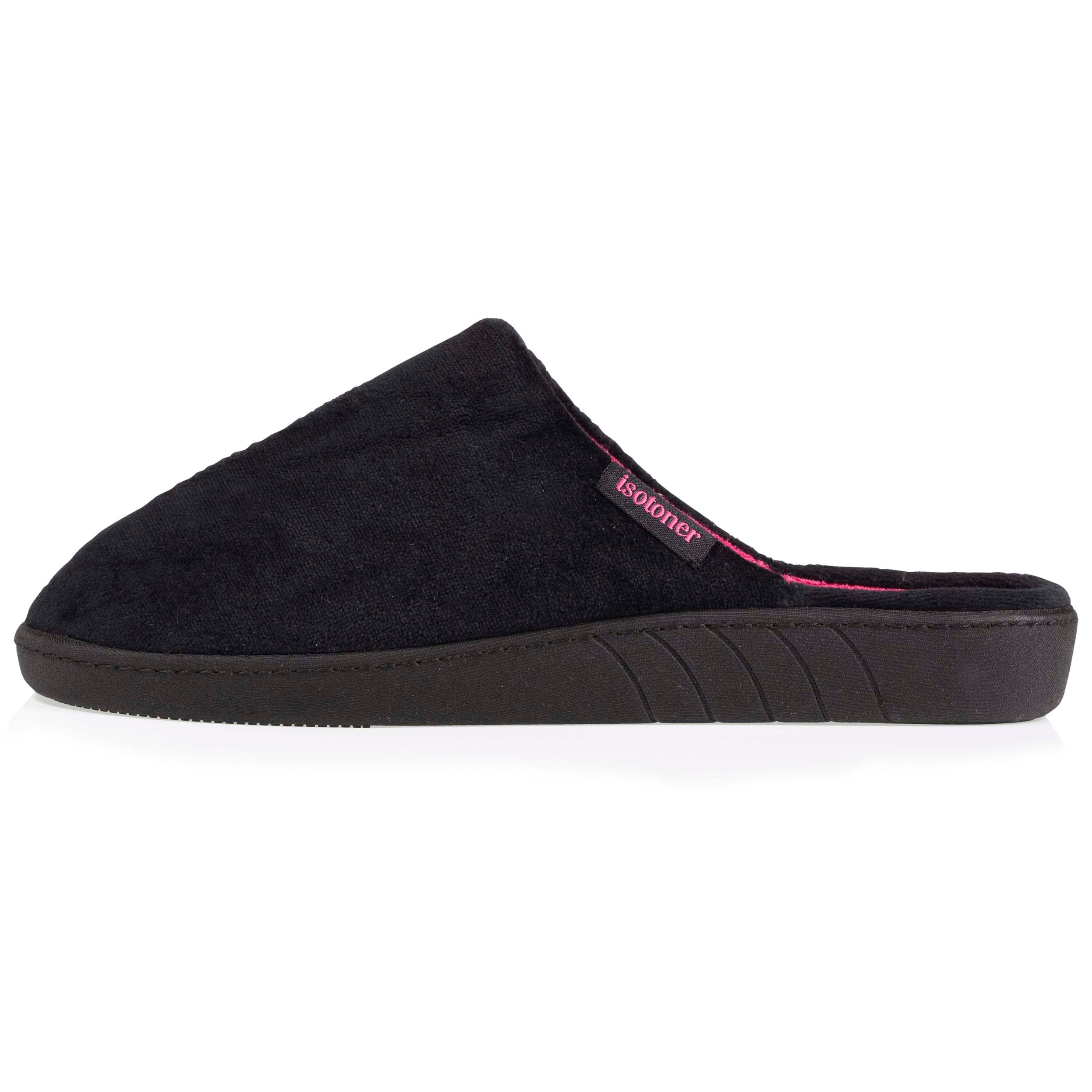 Retrouvez l'intemporelle chausson mule noire de chez Isotoner ! Ce chausson pour femme agrémenté de superbes rayures lumineuses sur la première de propreté va vous séduire par son confort et leur esthétisme. L'intérieur de ces mules en velours est composé de coton d'origine biologique. La semelle ergonomique de ces mules apporte à vos pieds soutien et bien-être et la mousse à mémoire de forme vous donnera la sensation de chaussons faits sur mesure. Ces pantoufles sont lavables en machine à 30°C.