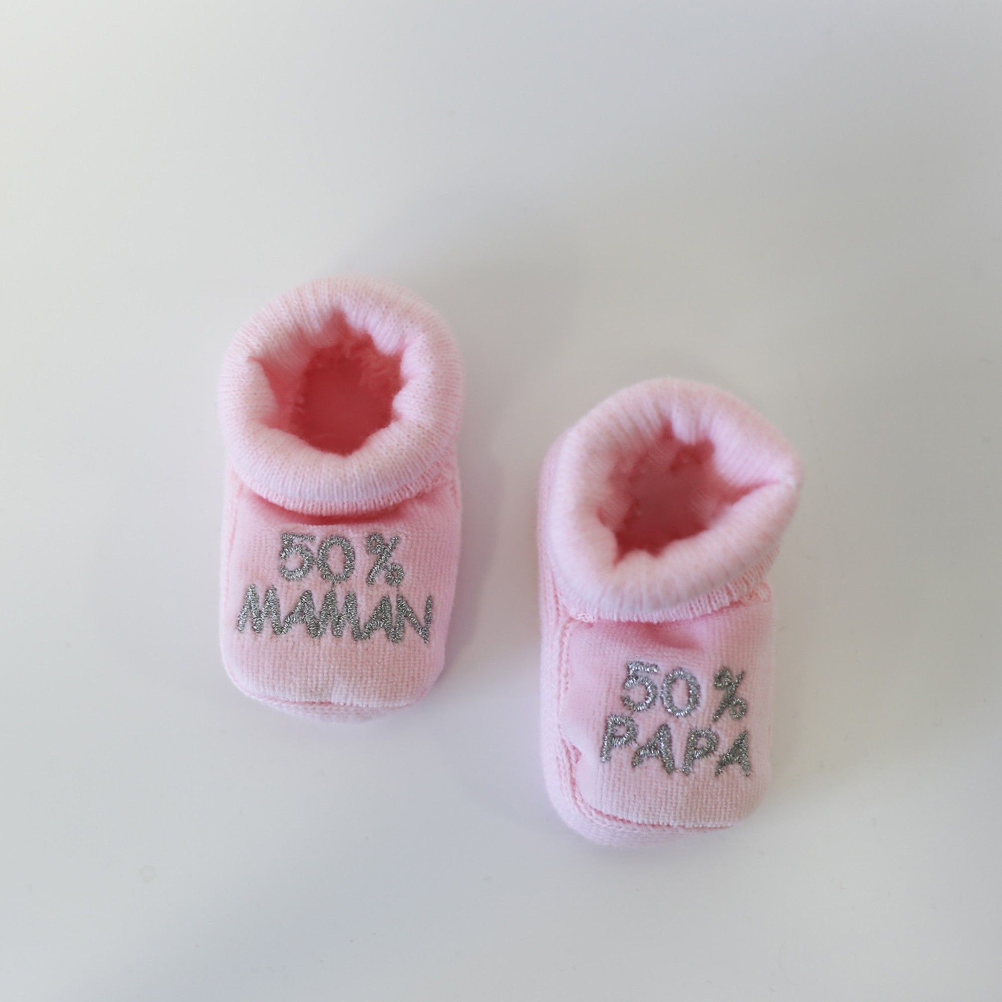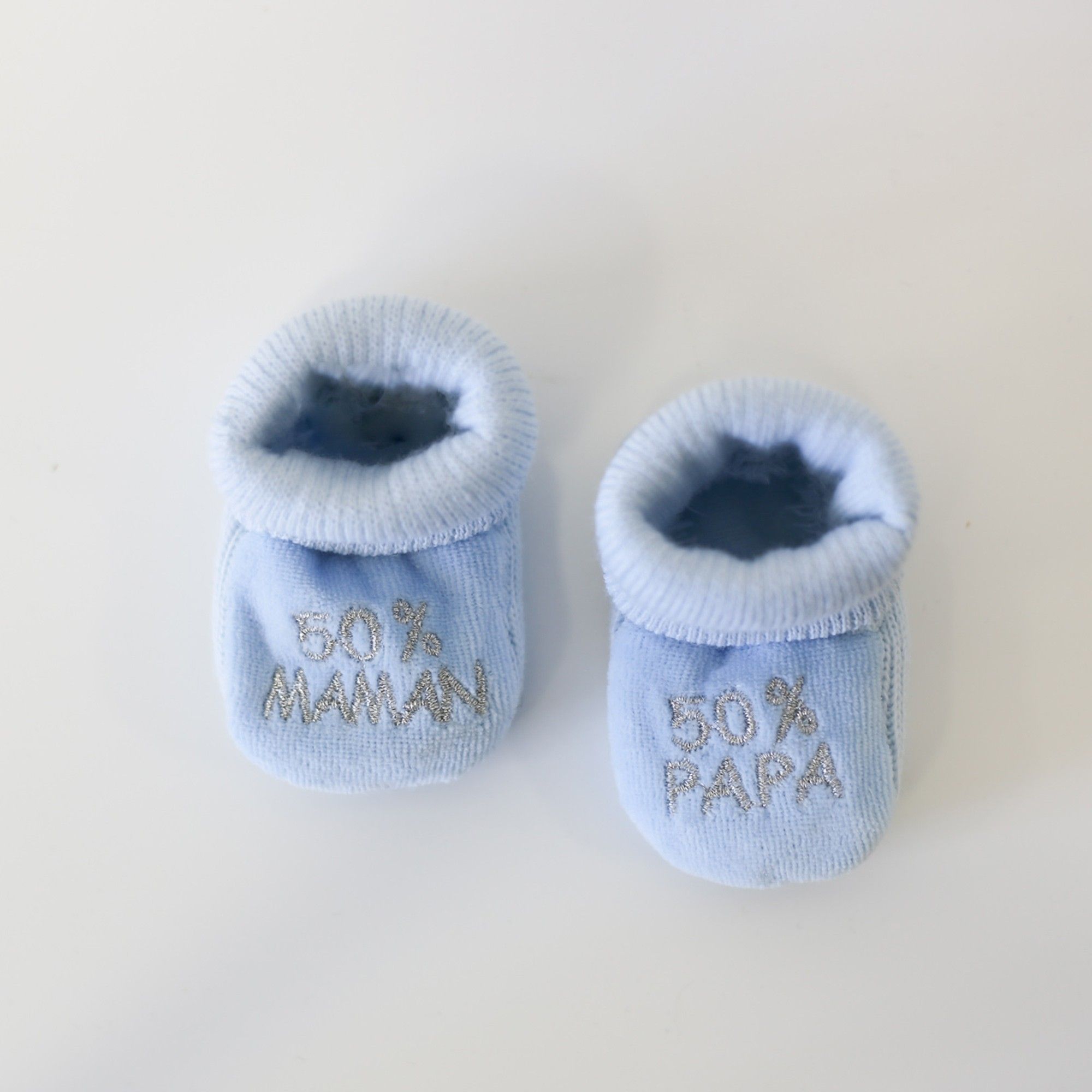 | Libellé | Chaussons naissance - message : 50% maman 50% papa |