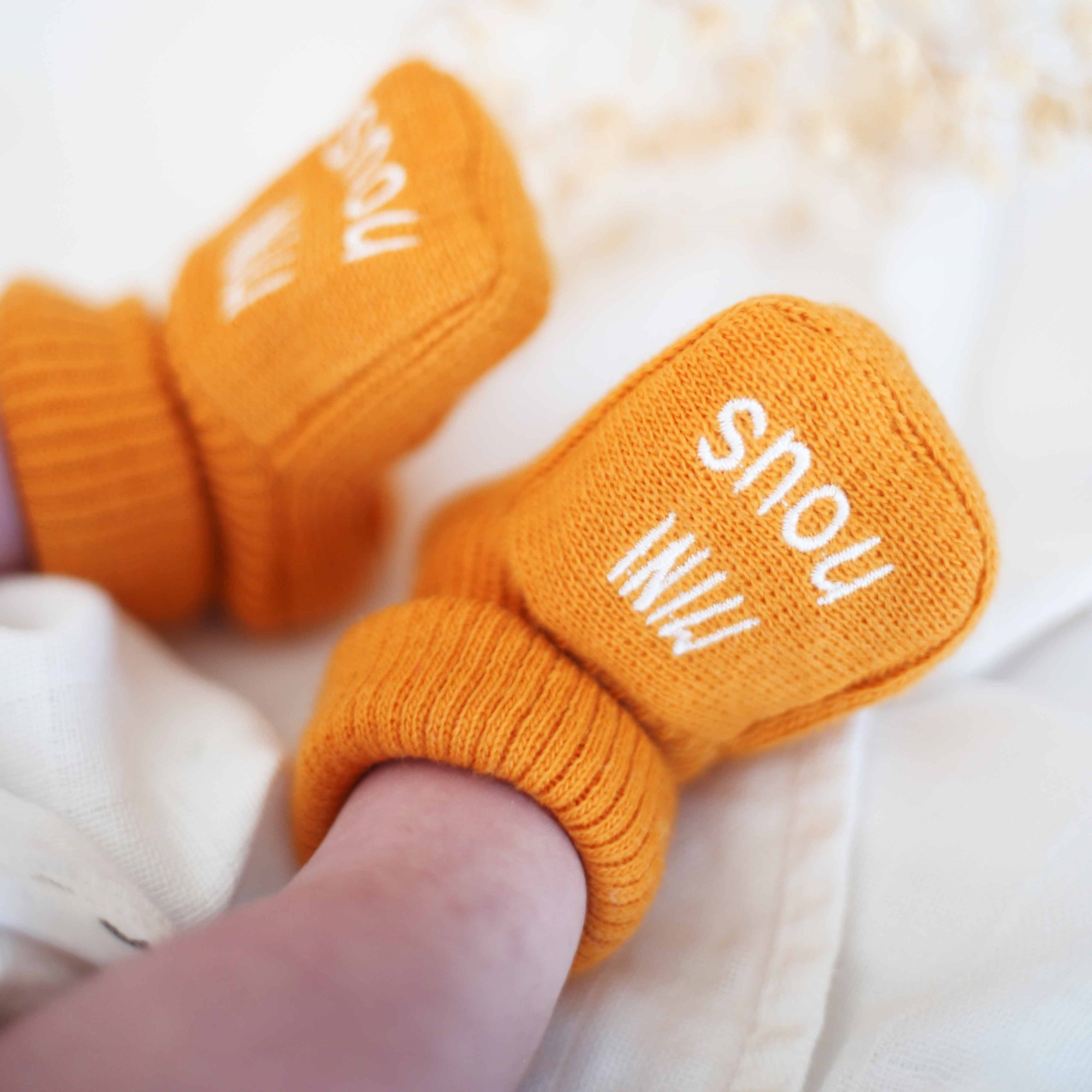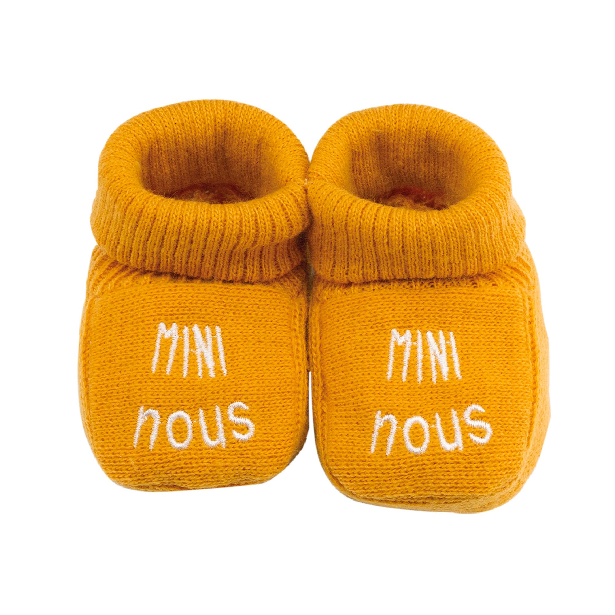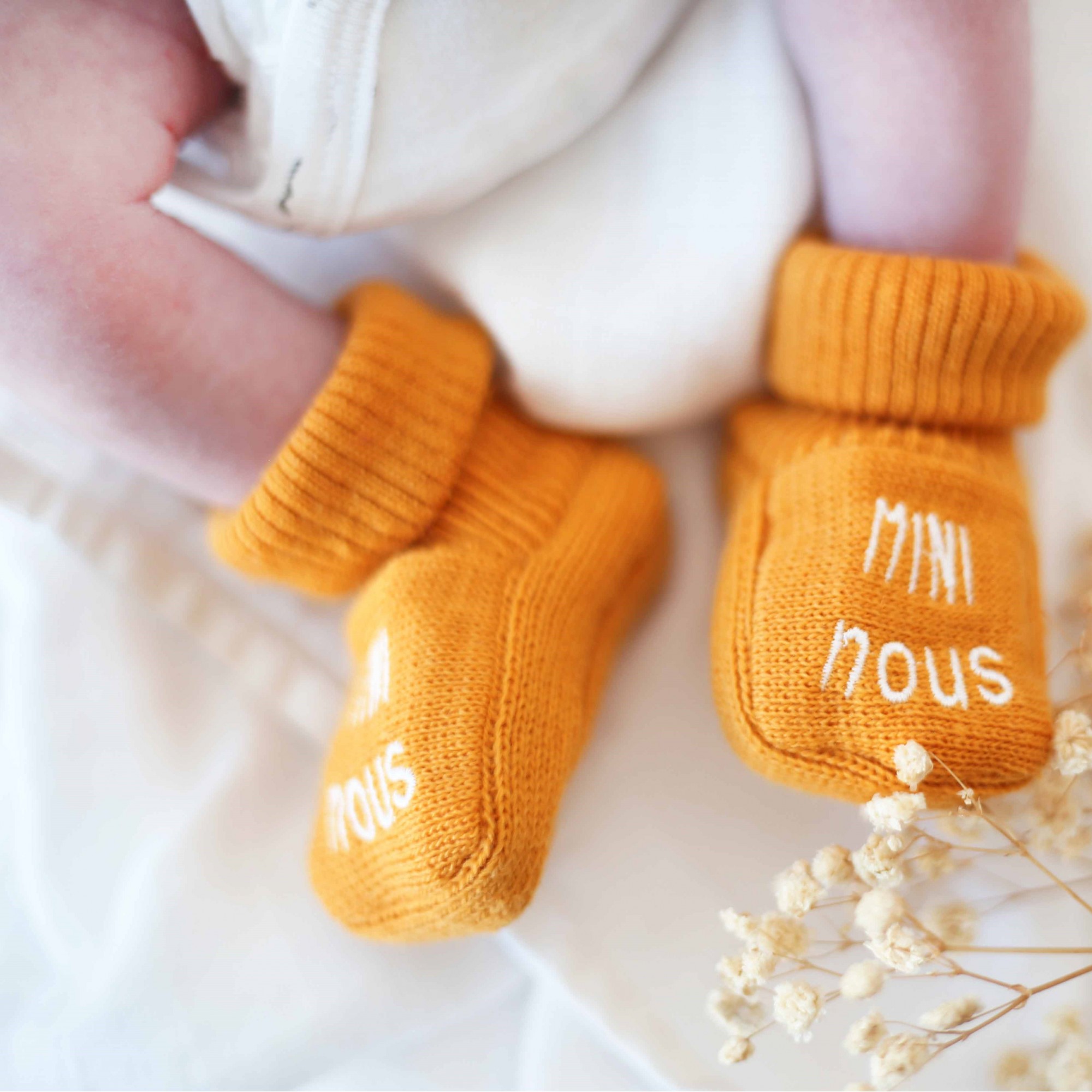 Ces chaussons bébé sont 80% acrylique / 20% coton, doux et chauds. Ils sont brodés et déclinés dans plusieurs coloris. Ils sont de taille unique 0/1 mois.