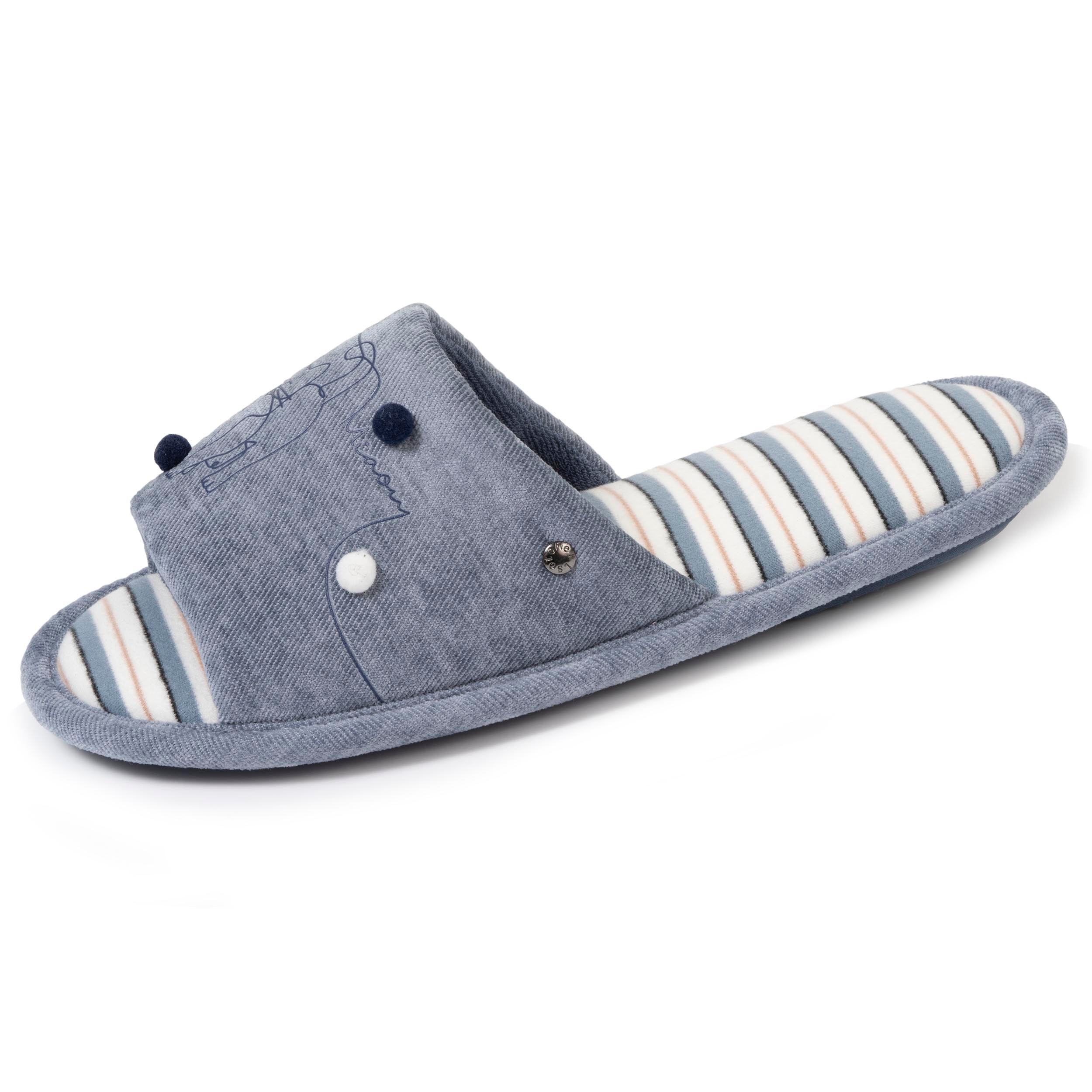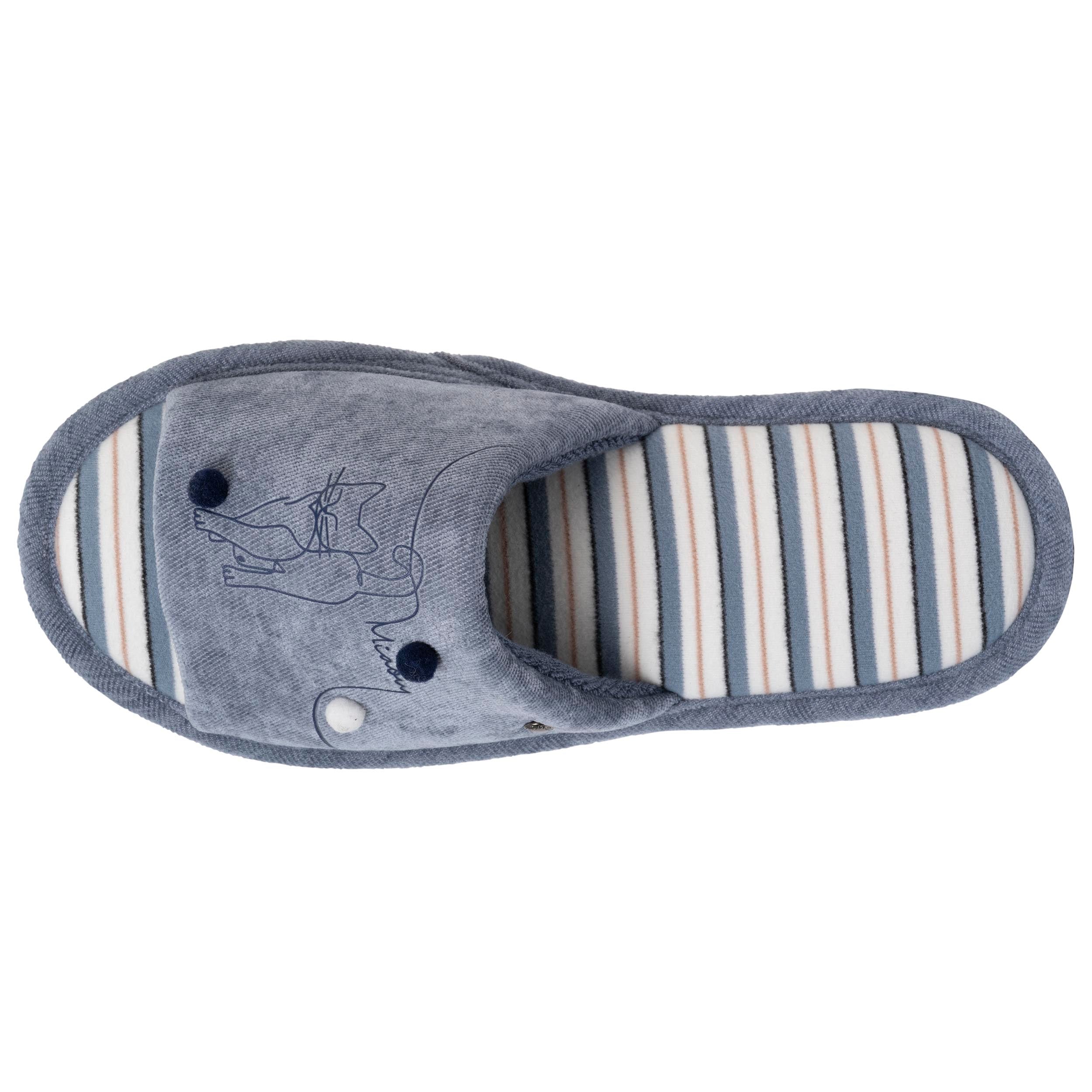 Sélectionnez ces sublimes chaussons sandales gris avec une touche de fantaisie offerte par leur joli motif chat pour apporter un peu de douceur à votre vie. Ces mules ouvertes sont si rapides à enfiler que vous aurez envie de les porter toute la journée ! Le tissu jersey qui les compose les rend douces et agréables à porter. Ces chaussons sont lavables en machine à 30°C.