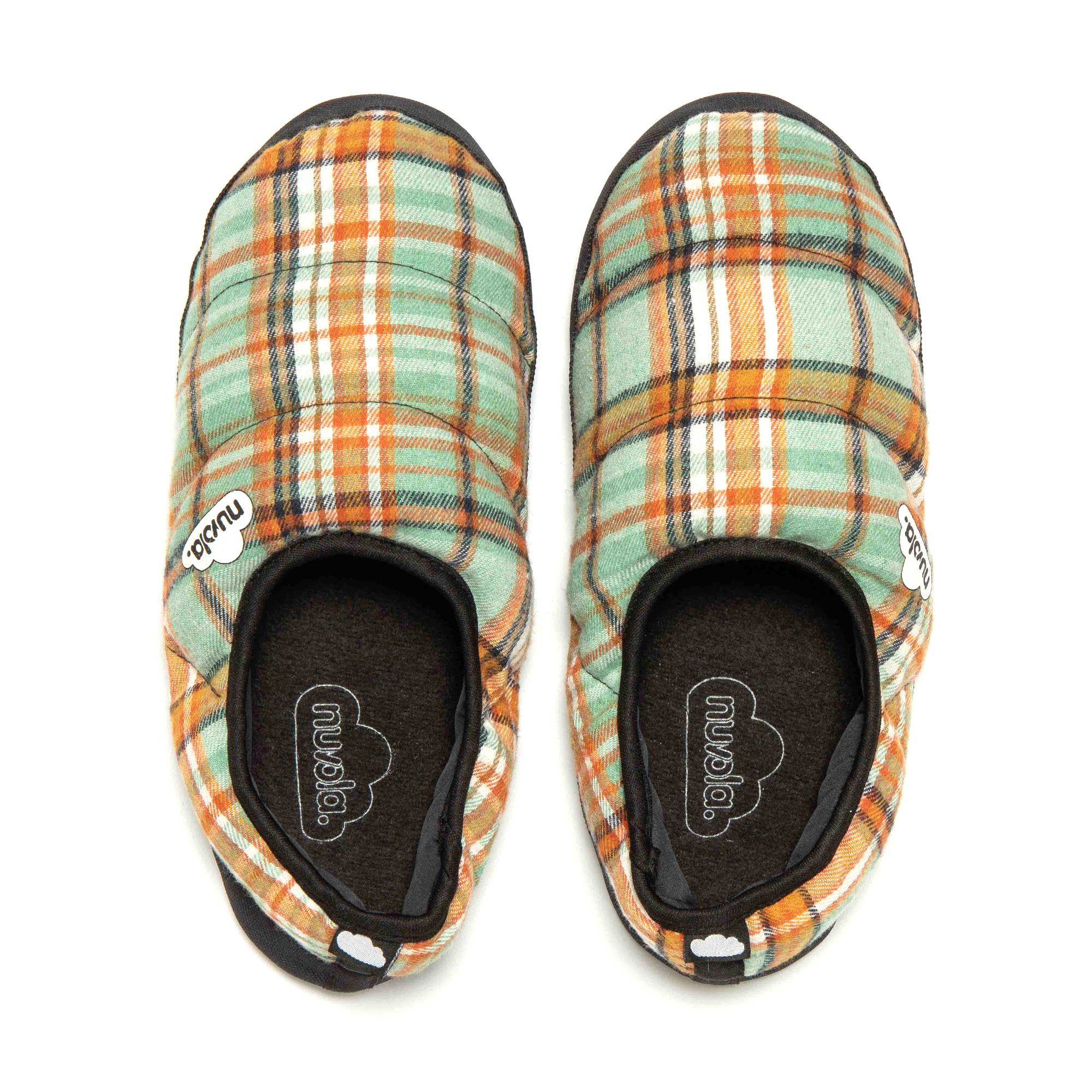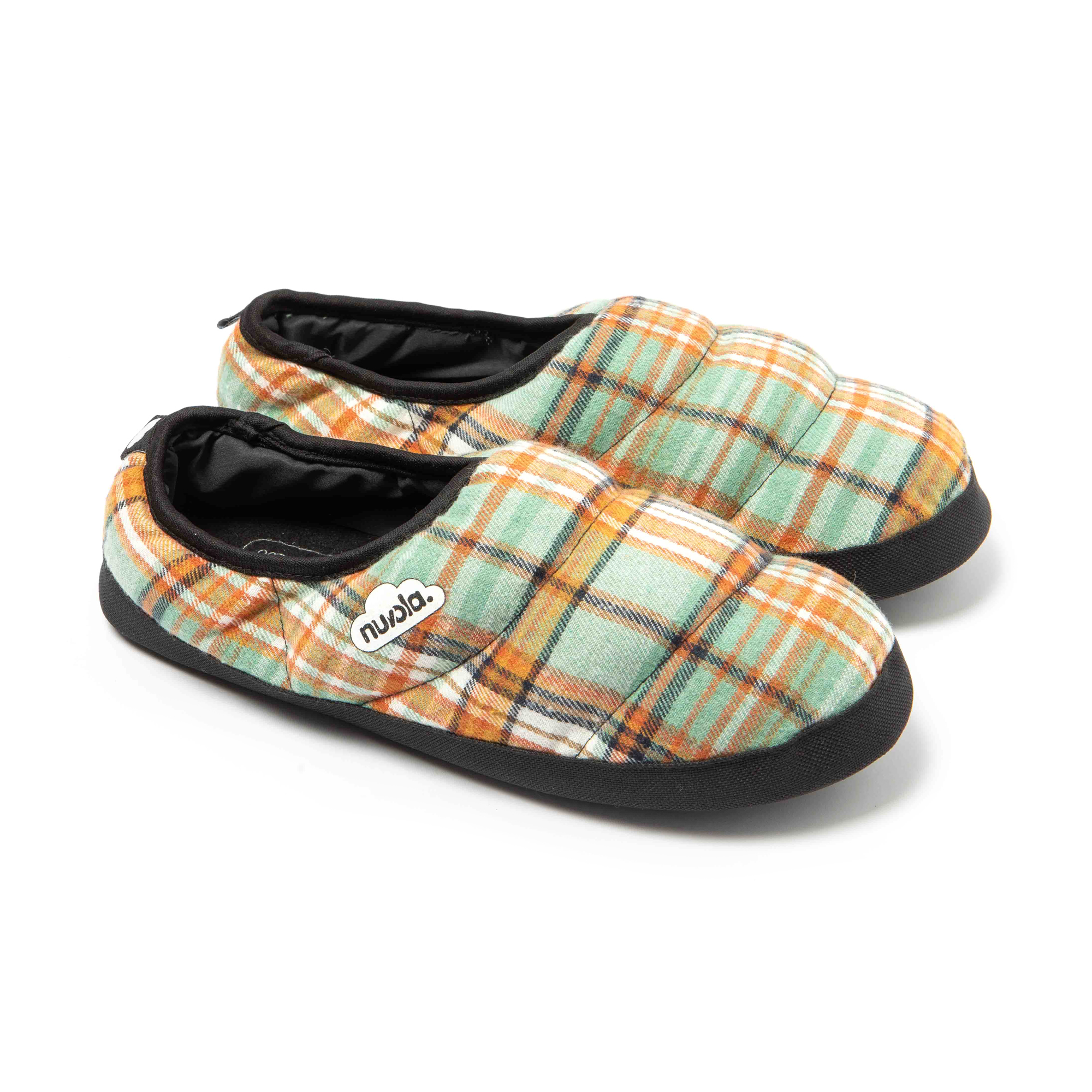 Chaussons unisex Nuvola de couleur verte et orange avec semelle en gomme