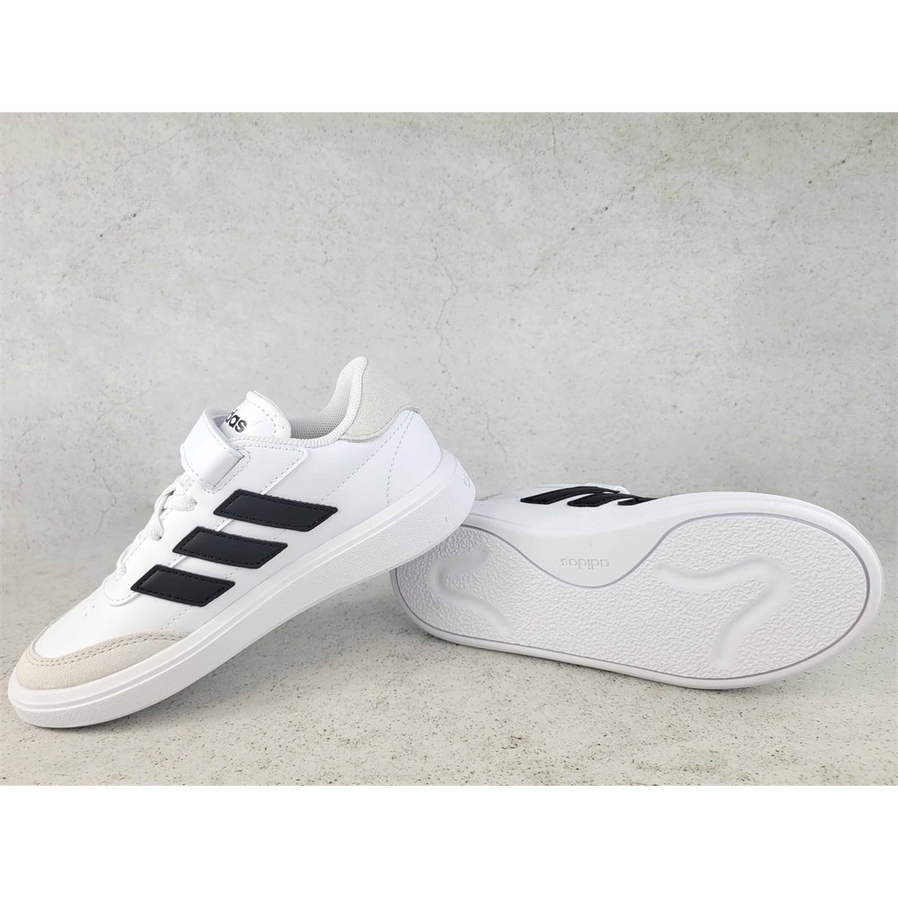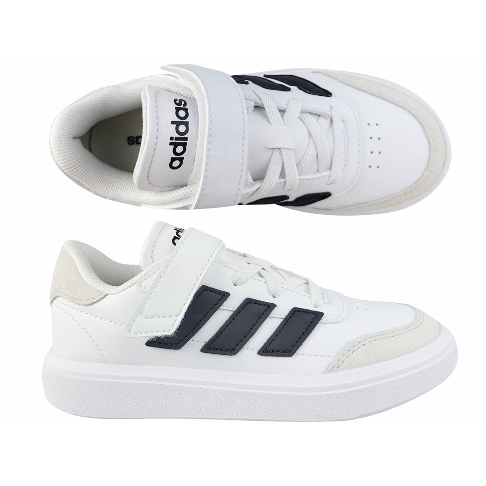 Parfait pour les petits ! Chaussures de sport classiques pour enfants de la ligne ADIDAS COURTBLOCK, un modèle confortable et fonctionnel avec une fermeture velcro, qui permet d'enfiler et de retirer rapidement la chaussure. Trois bandes renforcent encore le look sportif.