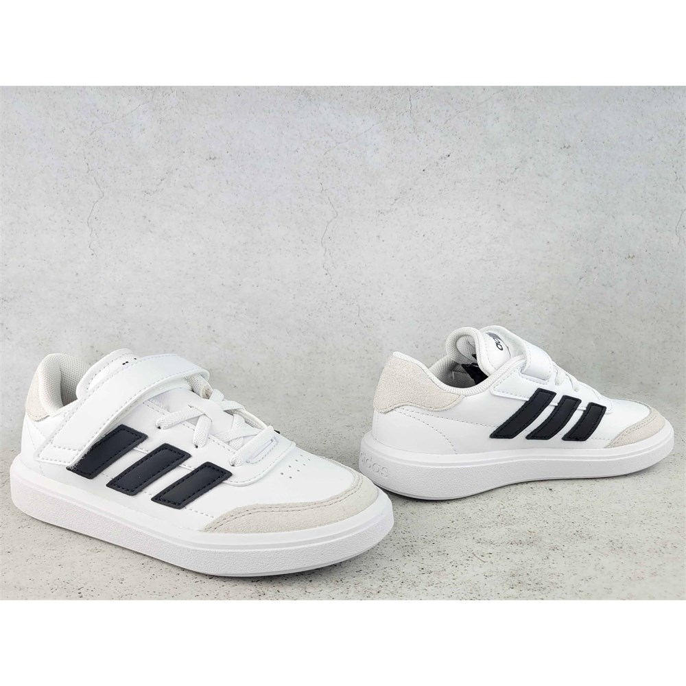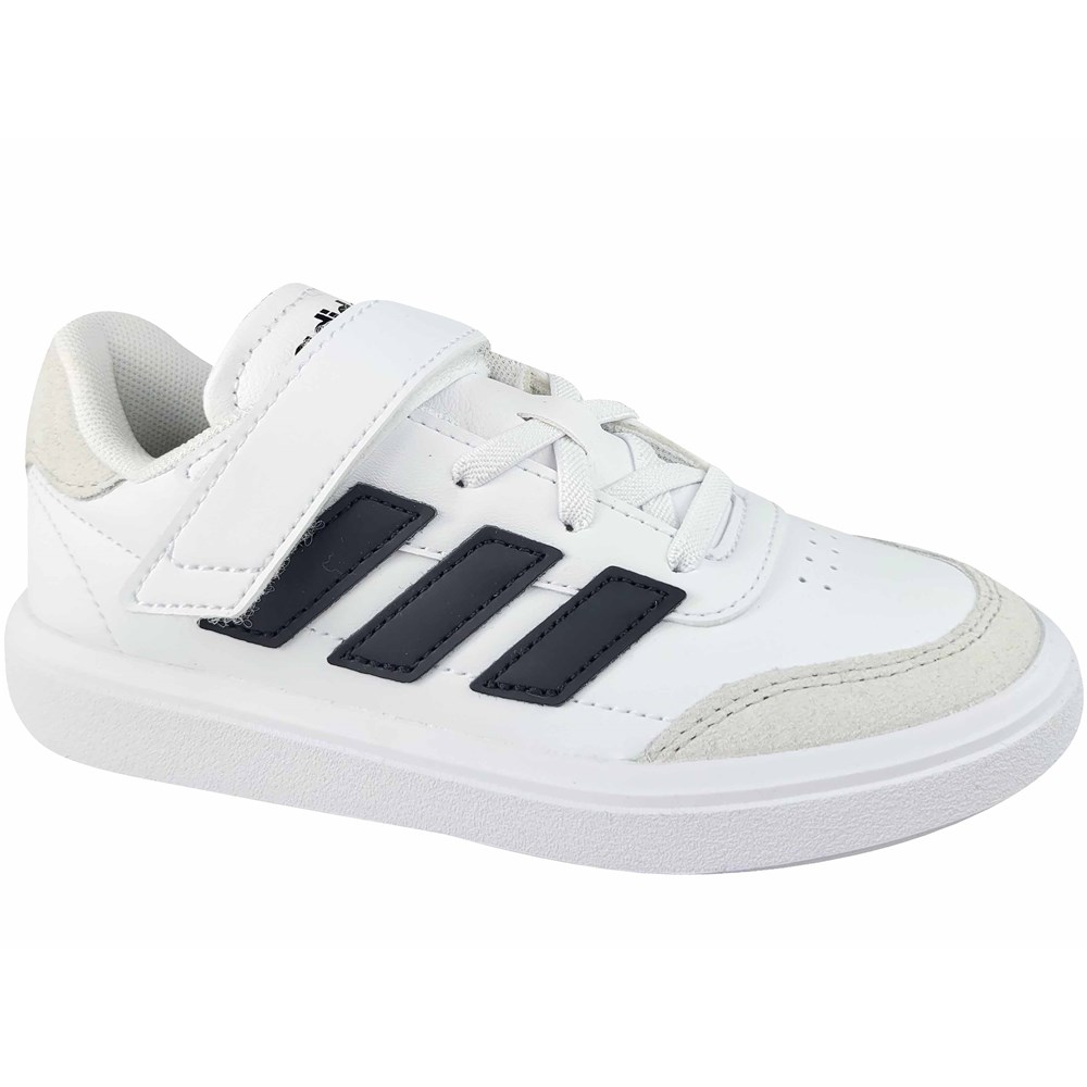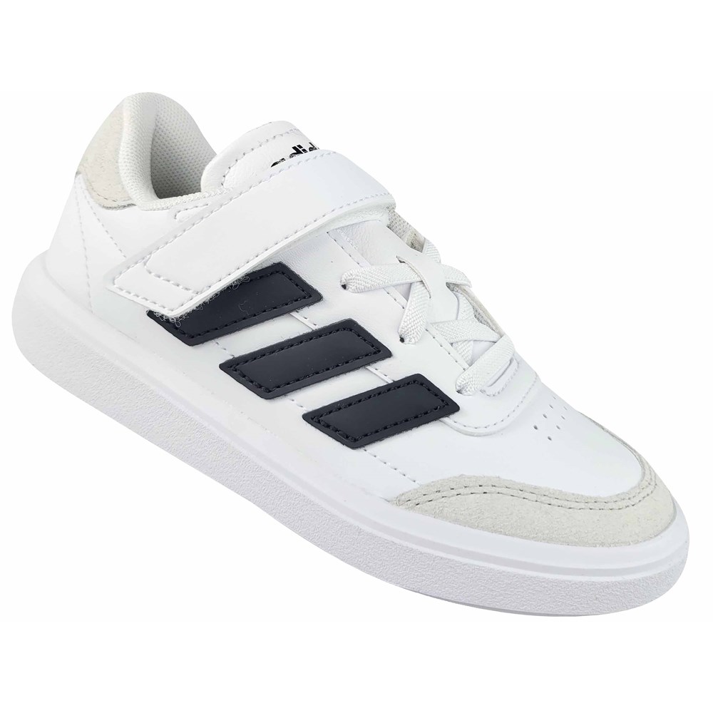 Parfait pour les petits ! Chaussures de sport classiques pour enfants de la ligne ADIDAS COURTBLOCK, un modèle confortable et fonctionnel avec une fermeture velcro, qui permet d'enfiler et de retirer rapidement la chaussure. Trois bandes renforcent encore le look sportif.