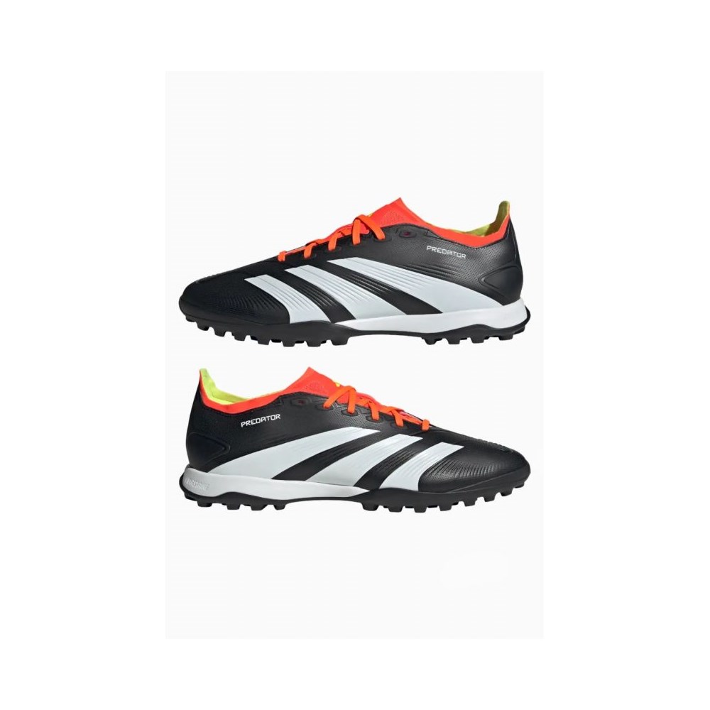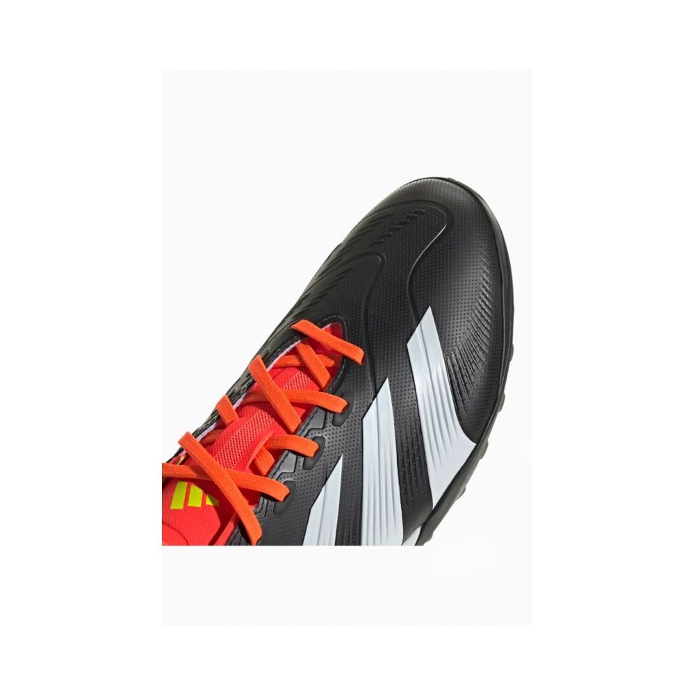 Le jeu consiste à atteindre des objectifs, et ces chaussures de football ont été conçus pour atteindre le but. Derrière. Tout le monde. Ensemble. Choisissez la perfection avec les nouvelles chaussures adidas Predator. La tige Hybridfeel, recouverte d'une texture convexe et équipée de superpositions Strikescale adhérentes sur la face interne du pied, a été optimisée pour des tirs de précision. Une semelle extérieure à crampons en caoutchouc assure la stabilité sur le gazon artificiel.