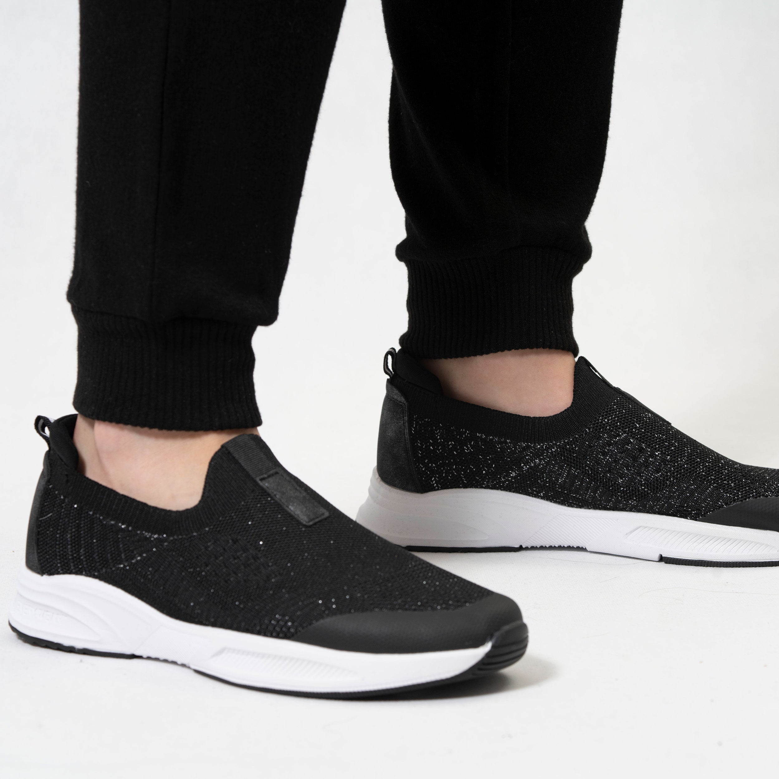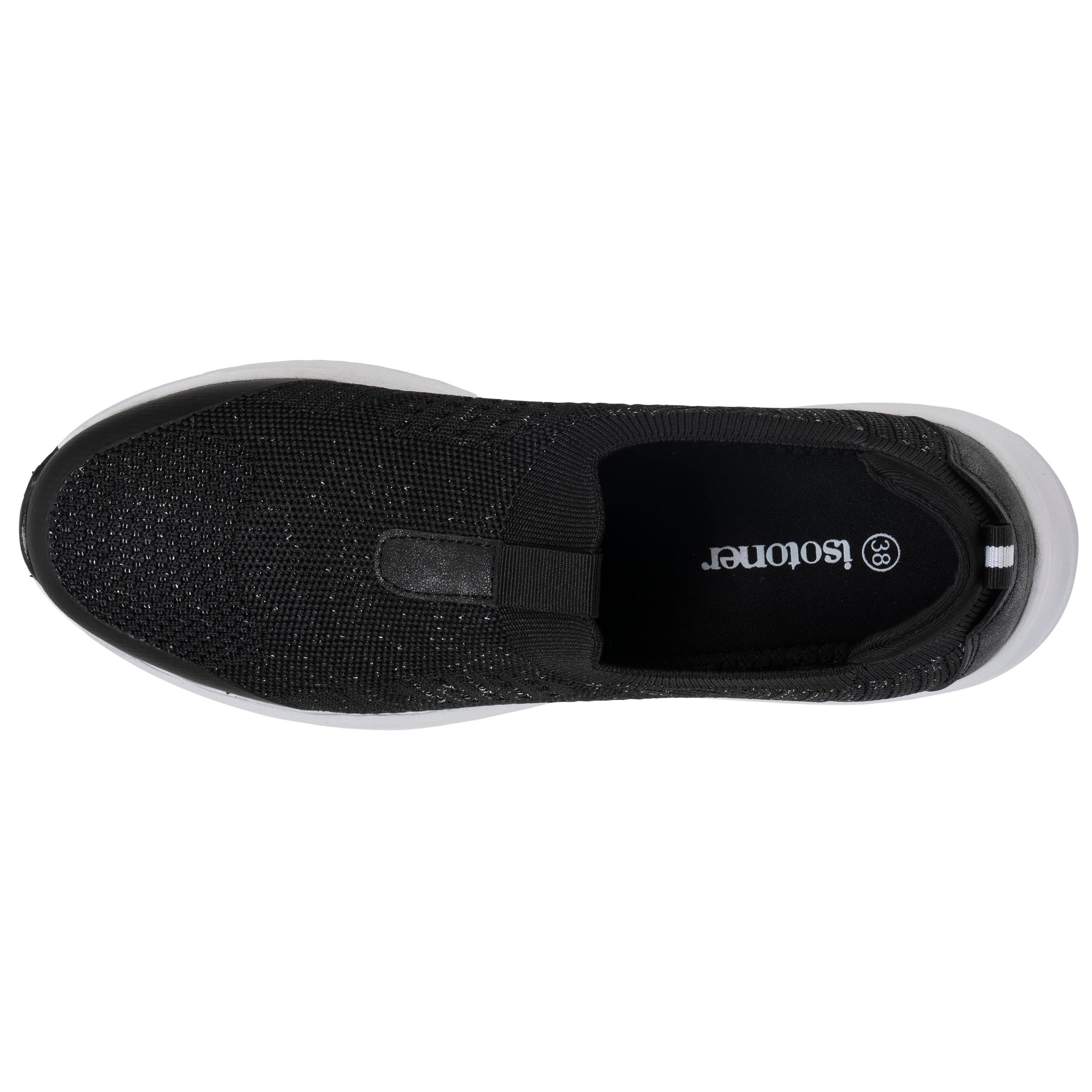 Cette chaussure basket slip-on femme noir avec semelle sport combine confort, style et modernité. Grâce à sa semelle extérieure souple et légère, cette chaussure offre une excellente adhérence tout en assurant un confort optimal tout au long de la journée. La semelle intérieure à mémoire de forme épouse la morphologie du pied pour un maintien agréable. Son tissu noir rehaussé de fils lurex apporte une touche de brillance discrète, idéale pour un look à la fois décontracté et féminin. Pratique et tendance, cette basket slip-on femme deviendra vite une chaussure incontournable de votre dressing.
