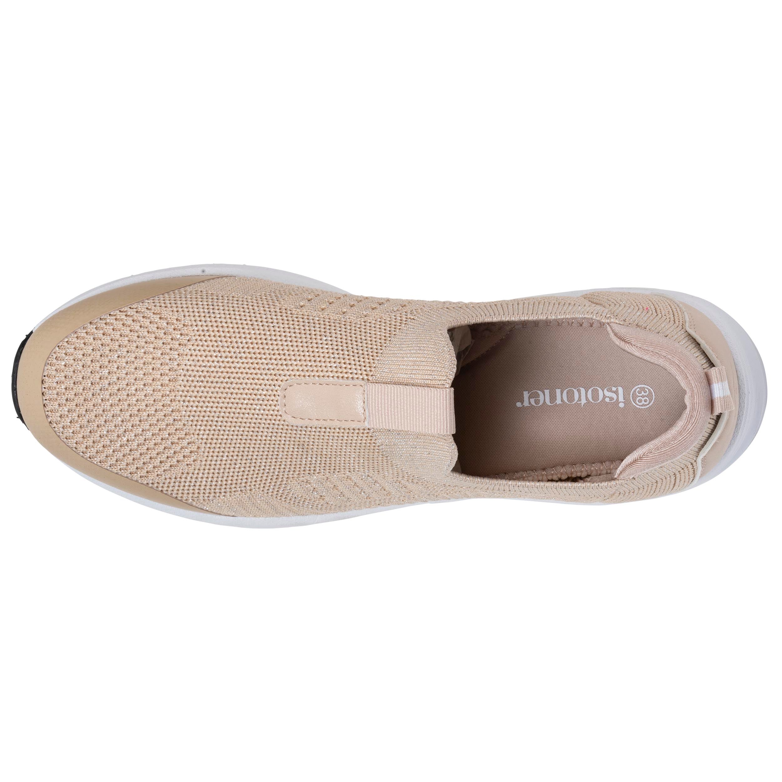 Cette chaussure basket slip-on femme beige à semelle sport associe confort, légèreté et brillance. Sa semelle extérieure souple assure une bonne adhérence au quotidien, tandis que sa semelle intérieure à mémoire de forme garantit un confort optimal. Conçue pour s’adapter à votre pied, cette chaussure est idéale pour un usage prolongé. Son tissu beige lumineux, enrichi de fils lurex, apporte une touche d’éclat discrète à votre tenue. Facile à enfiler et agréable à porter, cette basket slip-on femme devient vite une chaussure incontournable de votre collection.