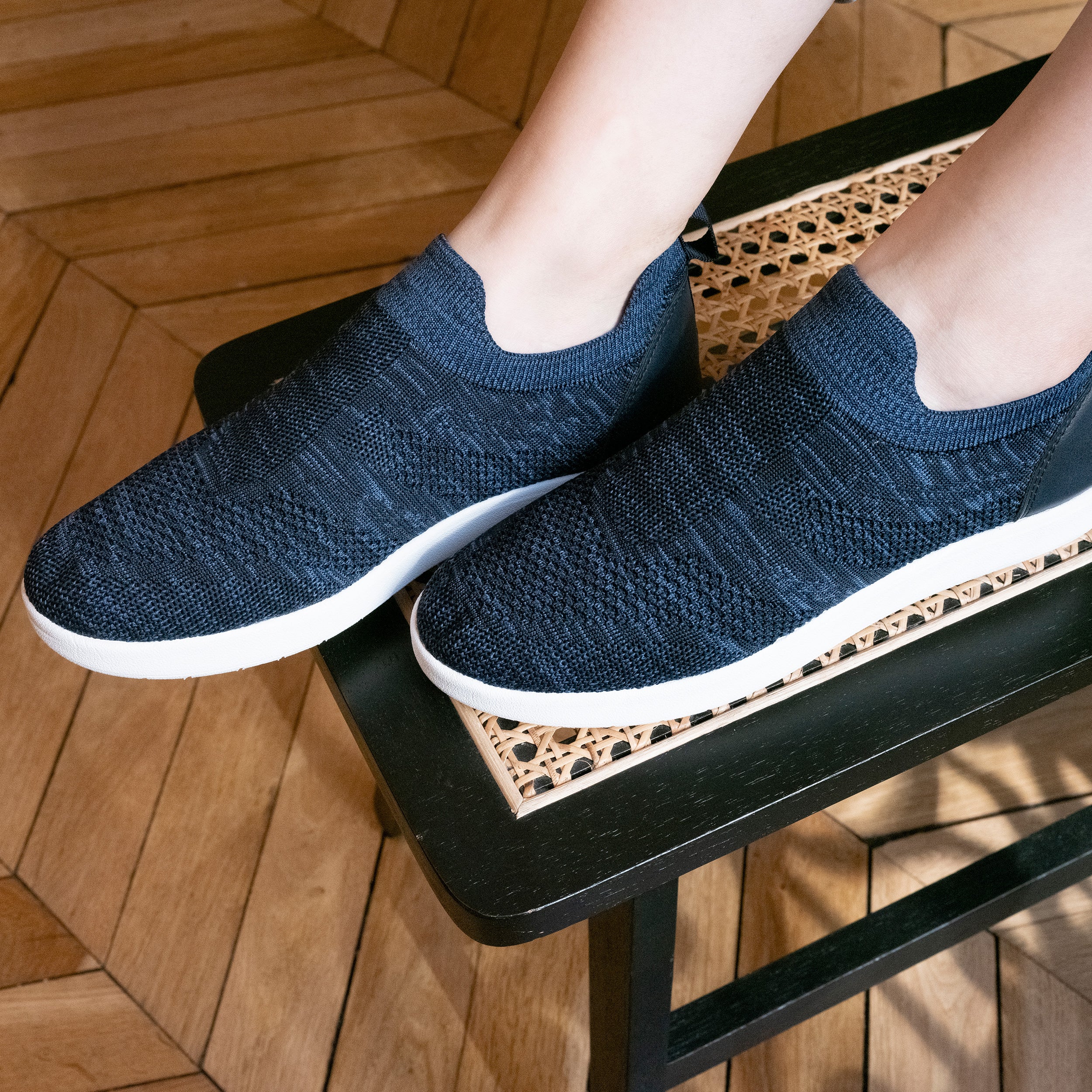 Cette Basket confortable Slip-on femme à maille marine est extrêmement confortable. La semelle de cette basket femme bénéficie de la technologie EVERYWEAR™ vous garantissant confort et durabilité dans le temps. La semelle épaisse, composée à 70% de caoutchouc, permet d’amortir votre pas. La semelle intérieure à mémoire de forme s'adapte à la morphologie de votre pied et épouse votre voûte plantaire pour un confort supplémentaire. Grâce à sa maille extensible, cette chaussure est d'une facilité d’enfilage optimal.