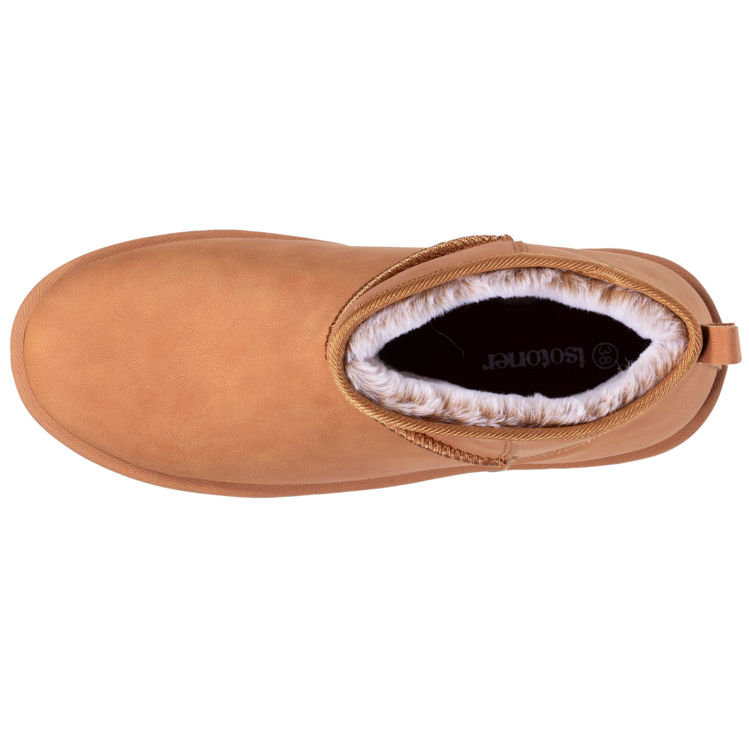 Parfait pour l'hiver, ces boots camel basses effet nubuck pour femme associent confort et style. Ces chaussures vous assurent un confort optimal grâce à son intérieur fourré agréable au toucher. Avec leur semelle intérieure à mémoire de forme de ces boots s'adaptent à votre pied et vous garanti un confort tout au long de la journée. Le patch issu de notre technologie EVERYWEAR™ placé au niveau du talon apporte un confort unique à cette chaussure pour femme. Ces boots basses camel sont votre alliées du quotidien pour accessoirisez toutes vos tenues.