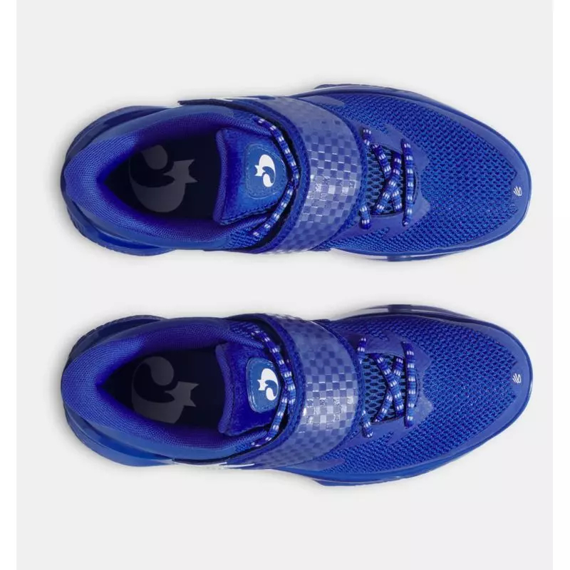 De Lexington à la ligue, ces chaussures sont conçues pour les joueurs qui recherchent à la fois performance et style, avec un motif en damier unique et une explosion de bleu qui orne la tige jusqu'à l'amorti UA Flow.