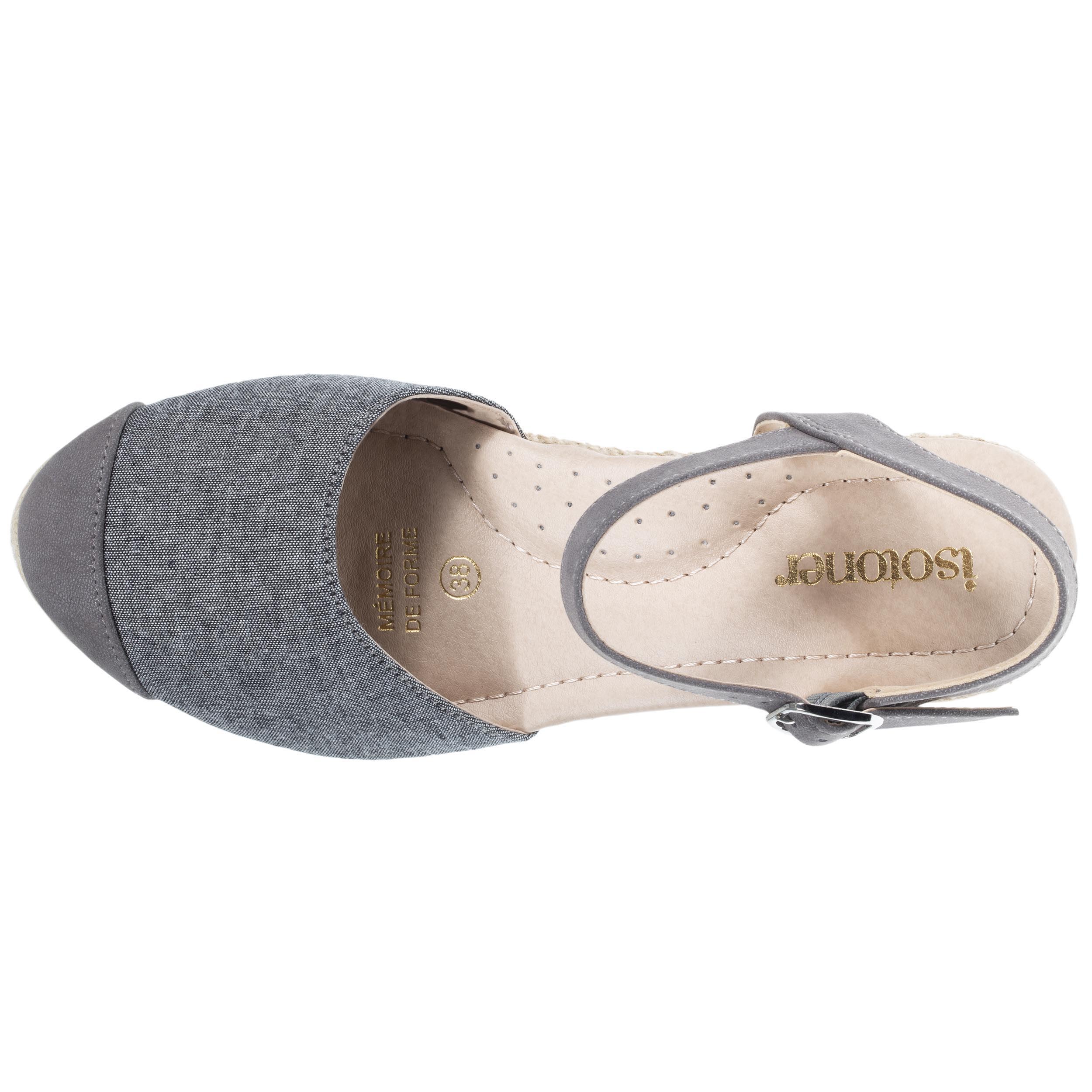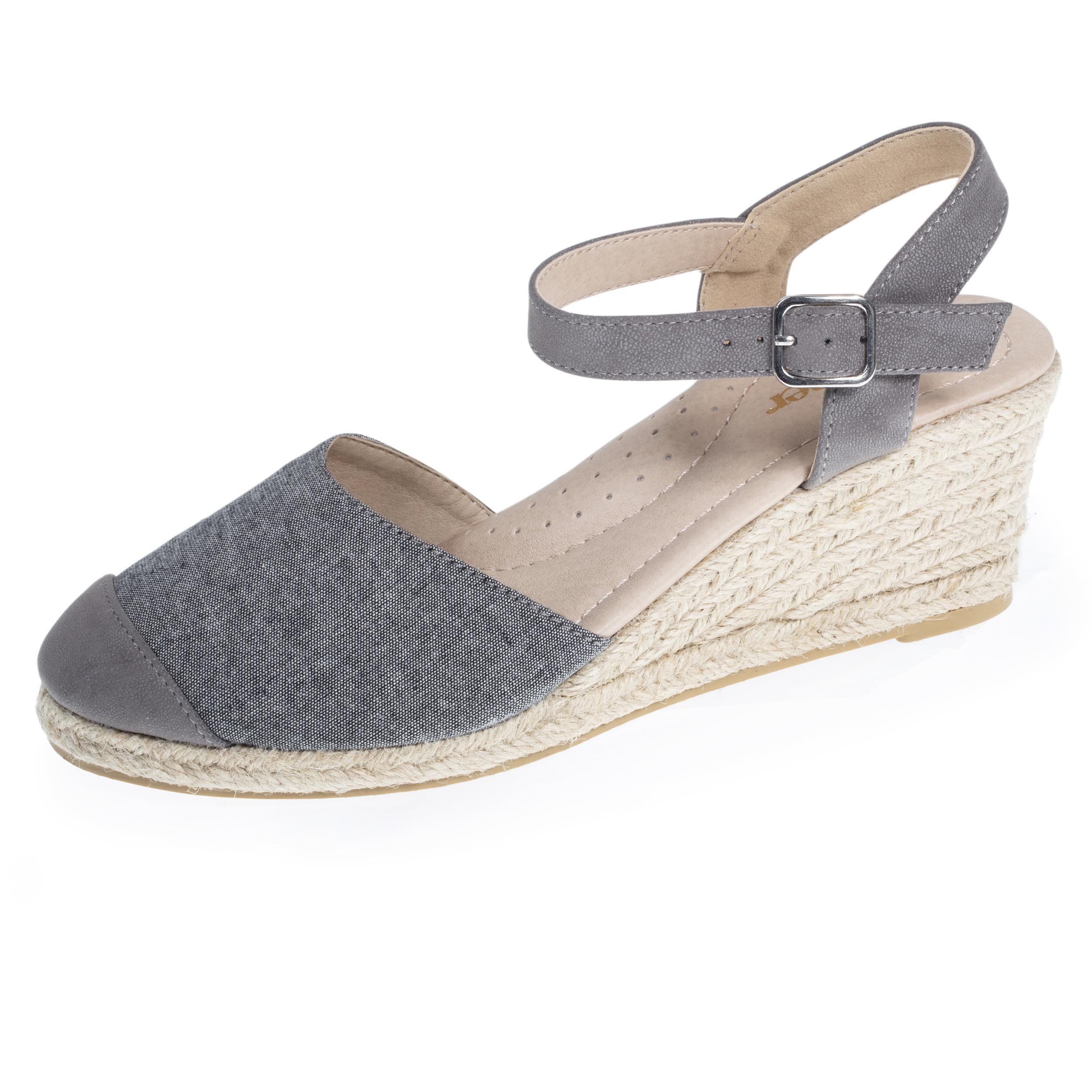 Dotée d'une semelle intérieure en mousse à mémoire de forme ainsi qu’un léger coussin amortissant qui soutient votre voûte plantaire, cette espadrille grise fermée vous garantit un confort tout au long de votre journée ! Elle possède un talon compensé de 6cm qui viendra sculpter vos jambes et vous donnera un look très féminin.