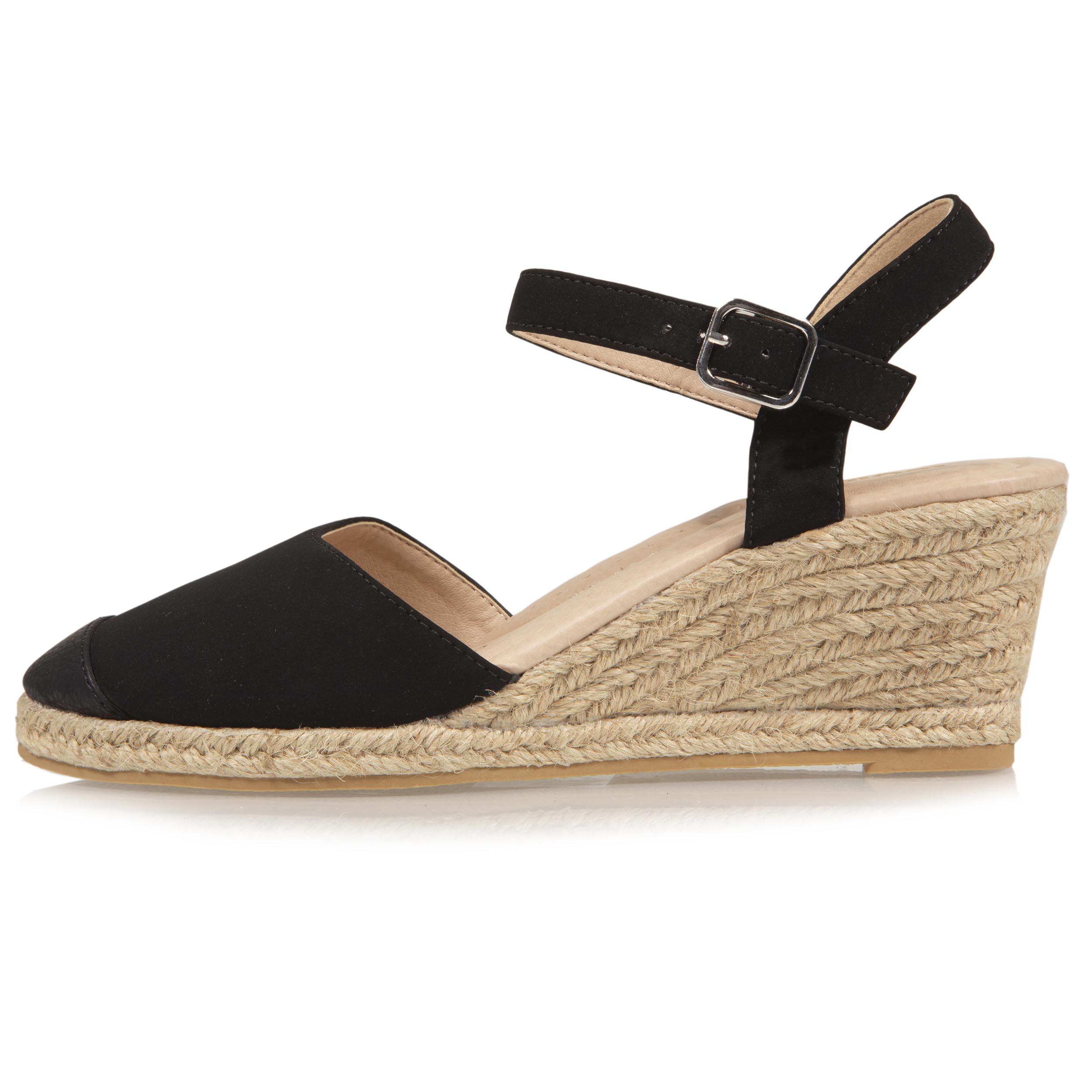 Dotée d'une semelle intérieure en mousse à mémoire de forme ainsi qu’un léger coussin amortissant qui soutient votre voûte plantaire, cette espadrille noire fermée vous garantit un confort tout au long de votre journée ! Elle possède un talon compensé de 6cm qui viendra sculpter vos jambes et vous donnera un look très féminin.