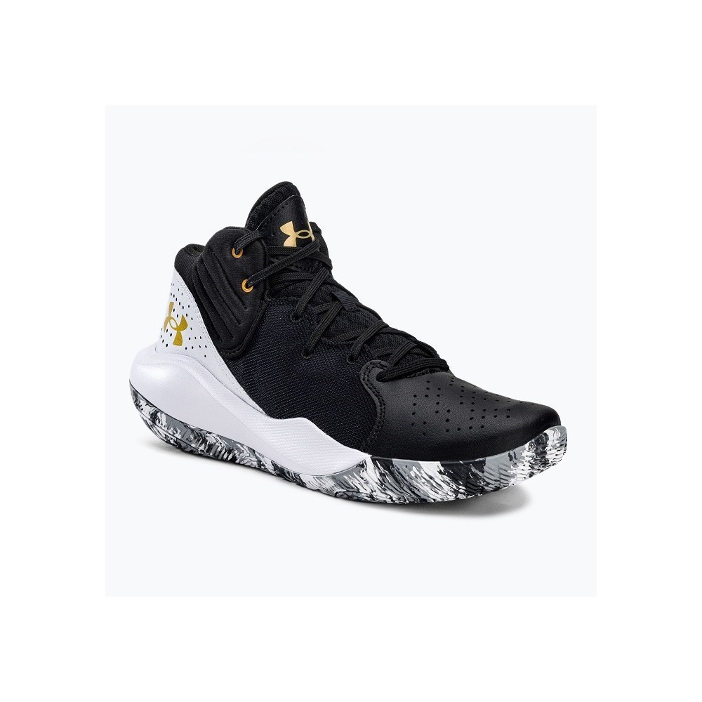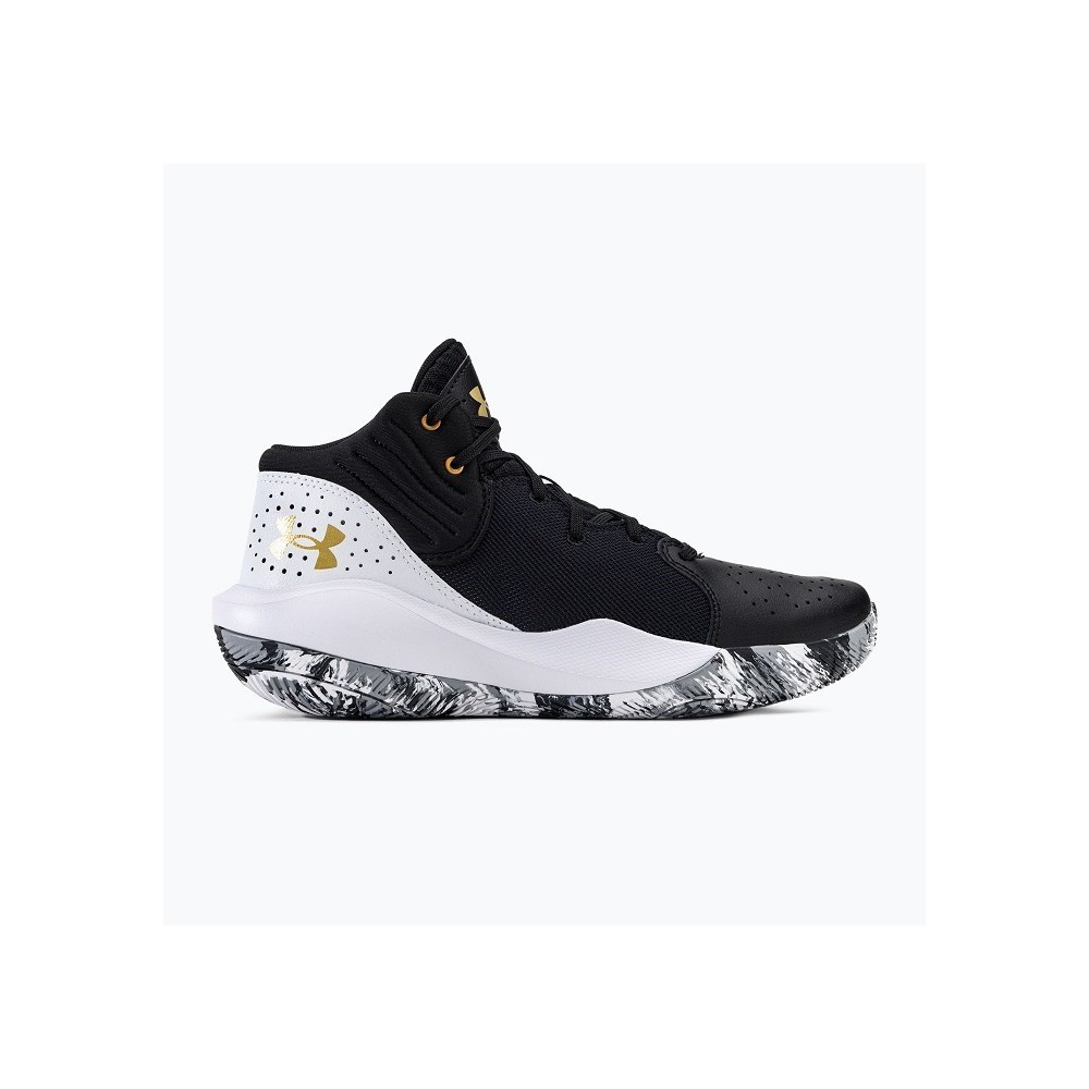 Chaussures de sport Under Armour JET 21 Les chaussures de basket-ball sont fabriquées à partir de matériaux de la plus haute qualité. La mousse EVA est responsable du rembourrage. C'est une combinaison de matière textile et de cuir. La semelle extérieure en caoutchouc nous offre une bonne adhérence pendant le jeu.