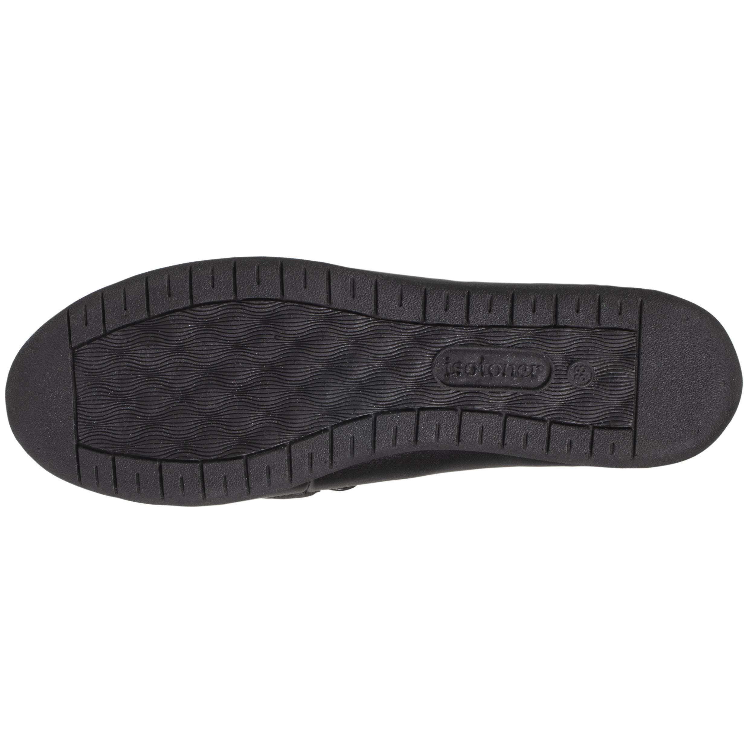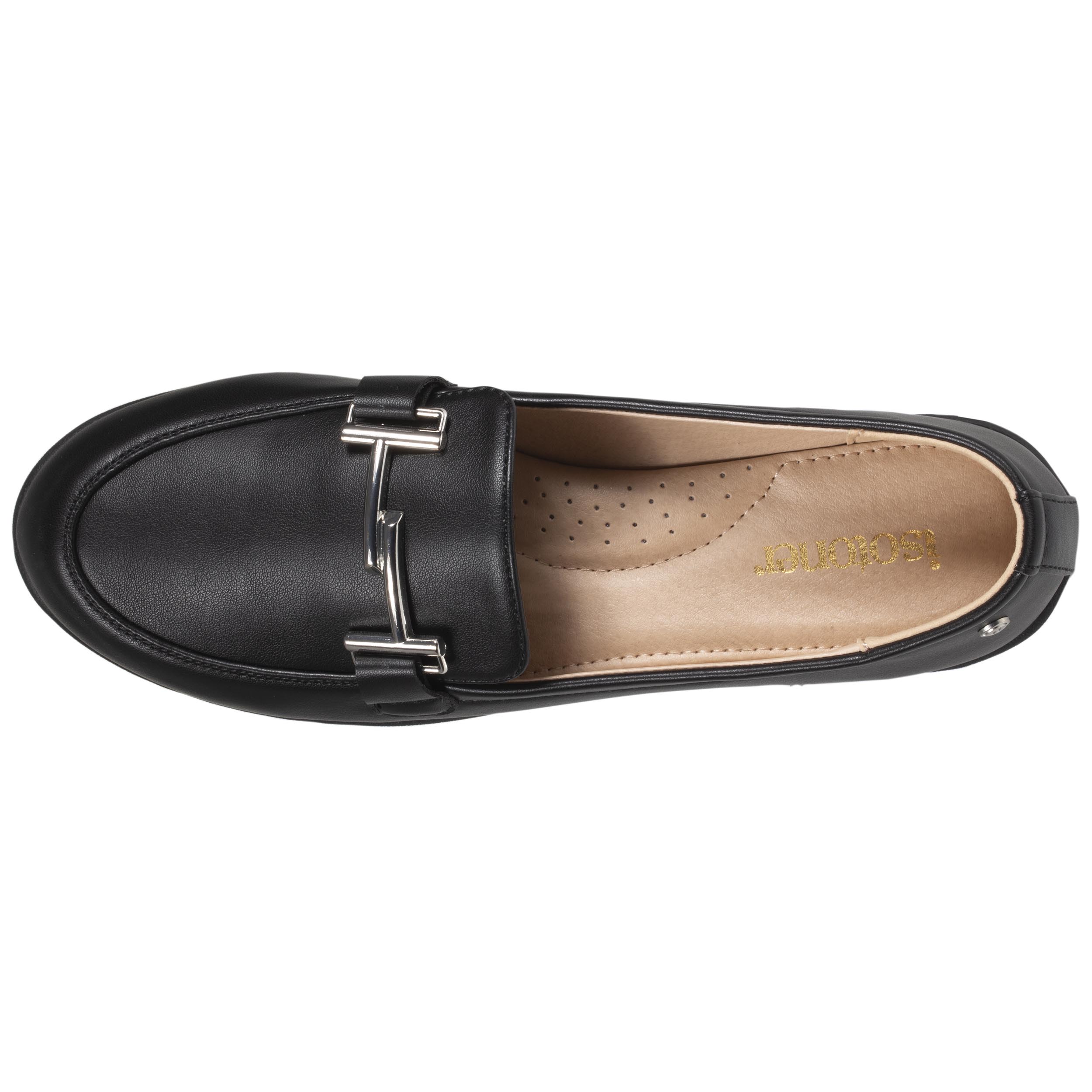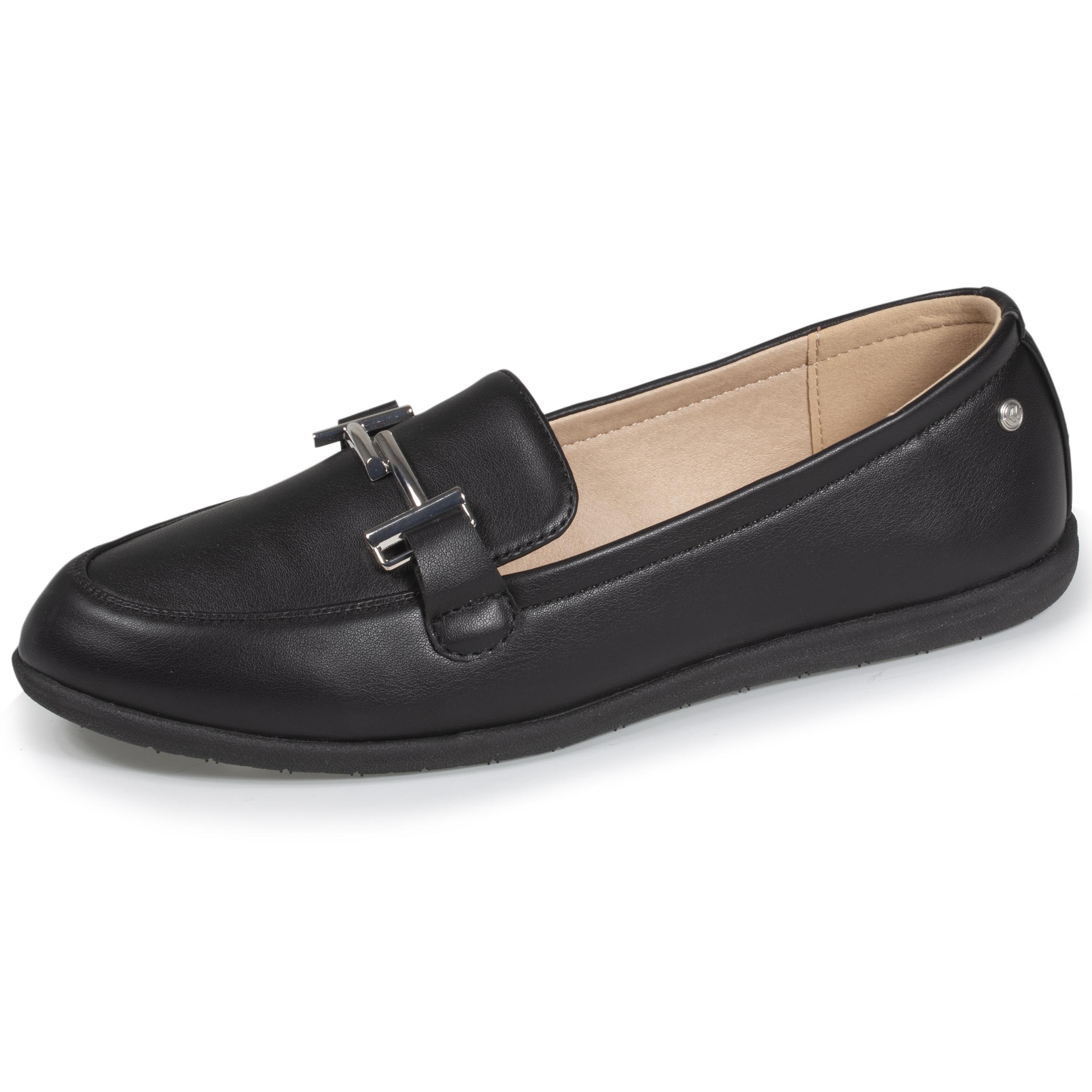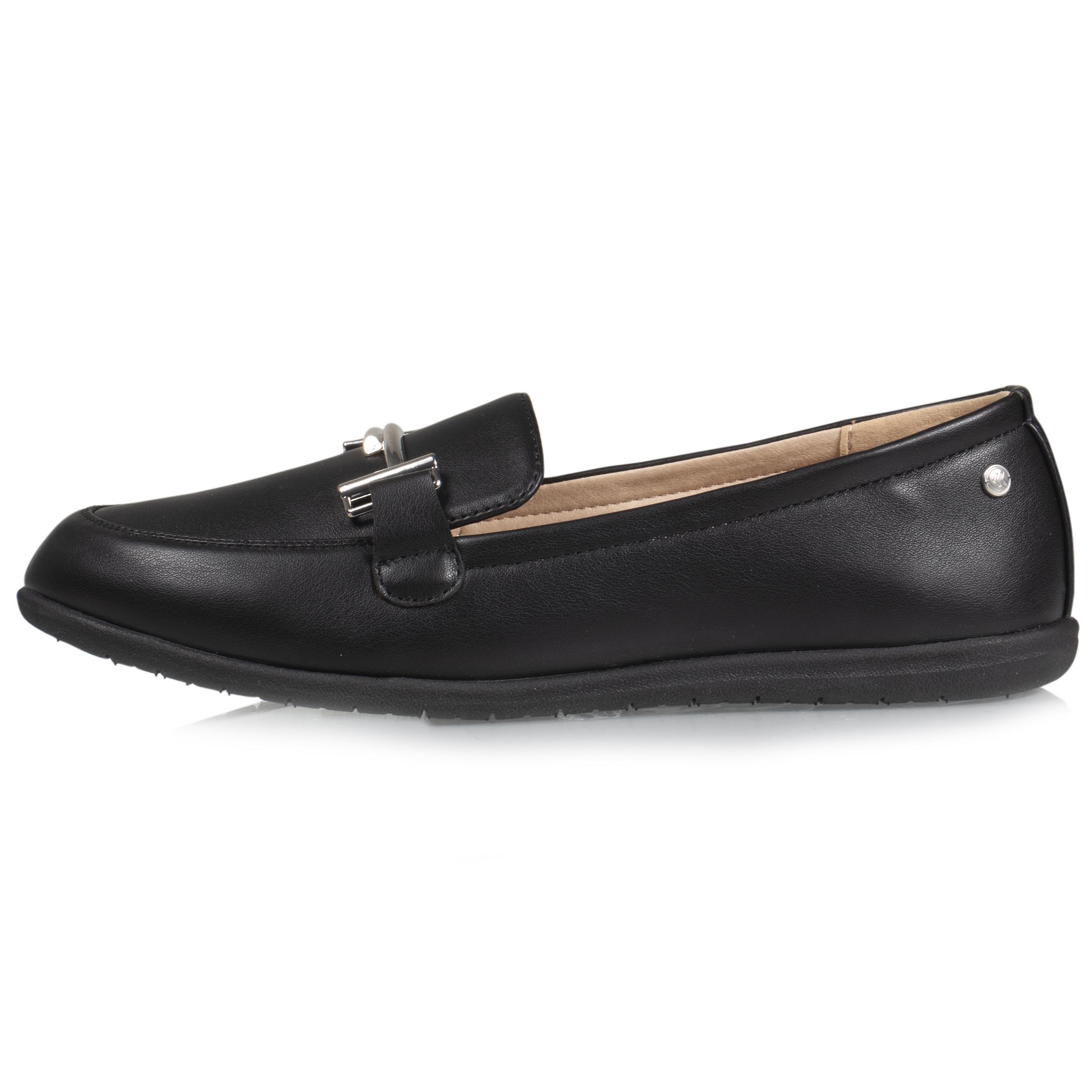 Ce mocassin noir pour femme avec accessoire argenté à l'avant allie style et confort. Ce modèle classique et intemporel apportera à votre tenue une touche d'élégance. La technologie EVERYWEAR™ de la semelle, composée à 70% de caoutchouc, rend cette ballerine souple et légère. La semelle à mémoire de forme s'adapte à la forme de votre pied et le soutien de la voûte plantaire vous assurent un confort optimal.