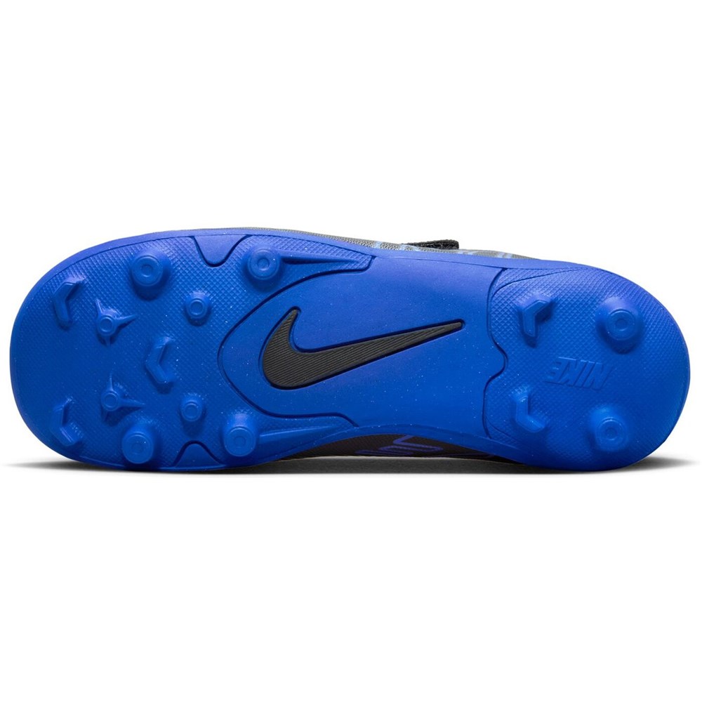 Avec les chaussures Nike Jr. Mercurial Vapor 15 Club, le jeu reste passionnant et palpitant. Oubliez les lacets (pour l'instant !). Ces chaussures sont faciles à enfiler et possèdent une large sangle sur le dessus pour un ajustement sûr. Conçus pour une variété de surfaces, y compris le gazon artificiel et l'herbe, ils offrent beaucoup de traction pour que votre future star puisse se concentrer sur ses compétences. La cage de vitesse est constituée d'un matériau fin mais solide qui fixe le pied à la plaque sans ajouter de poids supplémentaire. La tige en cuir synthétique présente de petits détails texturés qui offrent une bonne adhérence et un meilleur contrôle du ballon lors des dribbles. La sangle Velcro rend ces chaussures de football faciles à enfiler et à enlever lorsque vous vous rendez sur le terrain et que vous rentrez chez vous. Les dalles en plastique avec crampons moulés sont conçues pour être utilisées sur des terrains en gazon véritable et en gazon artificiel. Le D polyvalent