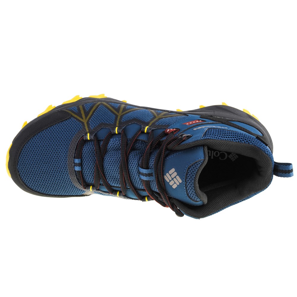 Catégorie: Montantes. Couleur: Bleu. Doublure: Textile. Fermeture: laçage. Genre: hommes. Membrane: Oui. Saison: Toute saison. Semelle: Caoutchouc. Système: water resistant. Tige: Synthétique.