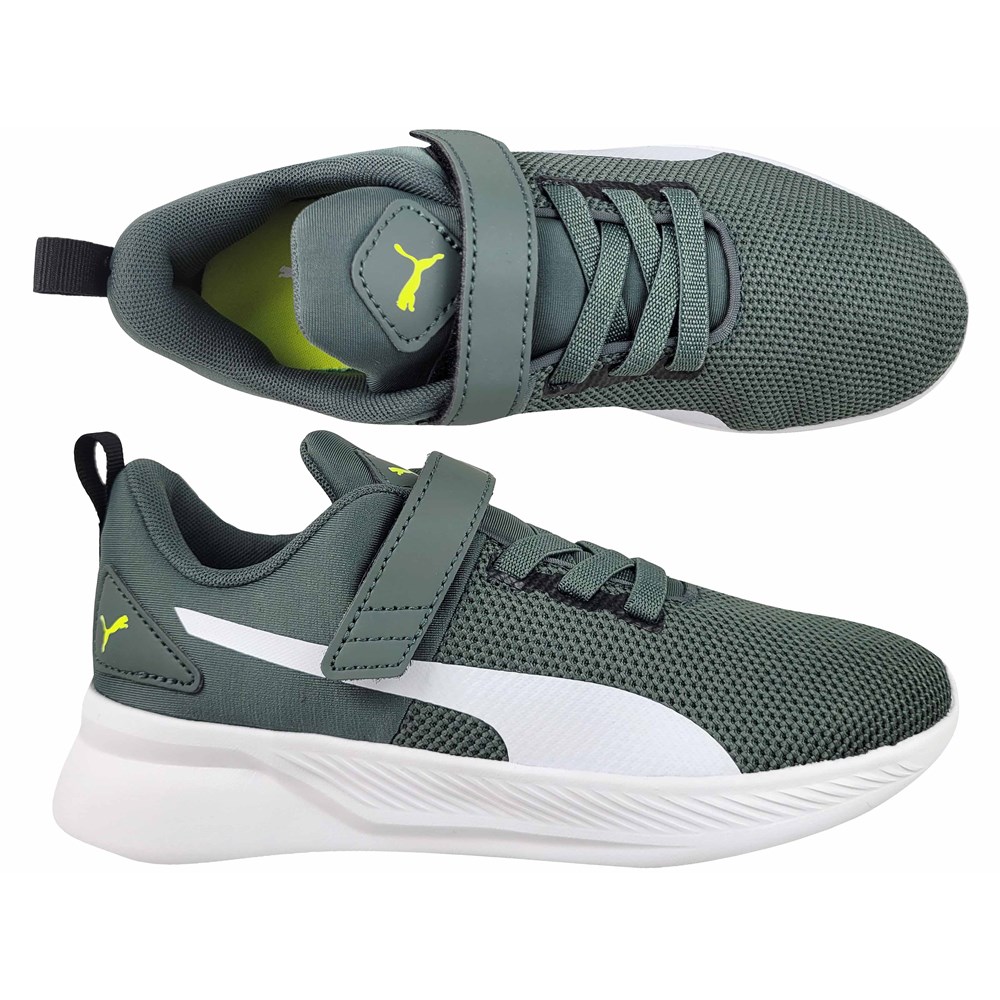 Chaussures de sport classiques pour enfants, PUMA FLYER RUNNER V PS avec fermeture velcro pour enfiler et retirer facilement la chaussure. Très pratique et léger. Le confort est assuré par une tige respirante et une semelle intérieure souple SOFTFOAM+.