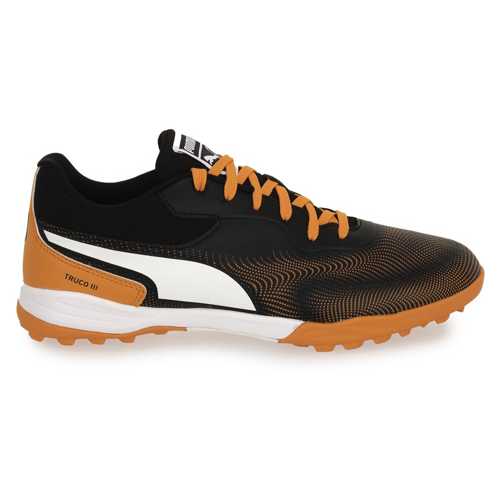 En mettant les chaussures de football Puma Truco 107426-04 vous allez gagner une nouvelle perspective du jeu. La construction particulière de la semelle Puma offre une bonne flexibilité et un accrochage parfait. La nature de la tige (non défini) procure la légèreté et le confort d’usage. Ces chaussures se caractérisent d’une bonne ventilation – de l’humidité produite pendant l’effort physique est évacuée à l’extérieur d’une manière très efficace. Puma, en introduisant des technologies les plus avancées dans ses chaussures de football, accroît fort les performances du joueur. Cette série de chaussures Puma se caractérise par le bien-être thermique en toute saison. Les chaussures de football [homme] Puma c’est une accélération extraordinaire dans tous les sens, la virevolte et la qualité supérieure de réalisation – c’est un bon choix et le plaisir du jeu.