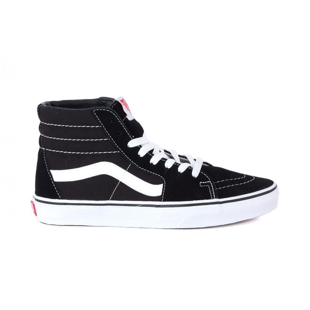 Baskets montantes pour hommesde la marque Vans mondialement connue et respectée, fabriquées encuir suédé naturel noir et en tissu de la ligne Sk8-Hi. L'intérieur des chaussures et la semelle intérieure sont en tissu doux. La forme du bout rond offre beaucoup d'espace pour les orteils. Les lacets permettent d'enfiler facilement les chaussures et de les ajuster au pied. La semelle plate en matériau de haute qualité mesure 3 cm de hauteur. Les baskets sont légères et pratiques, ce qui en fait un complément parfait à toute tenue sportive ou décontractée.