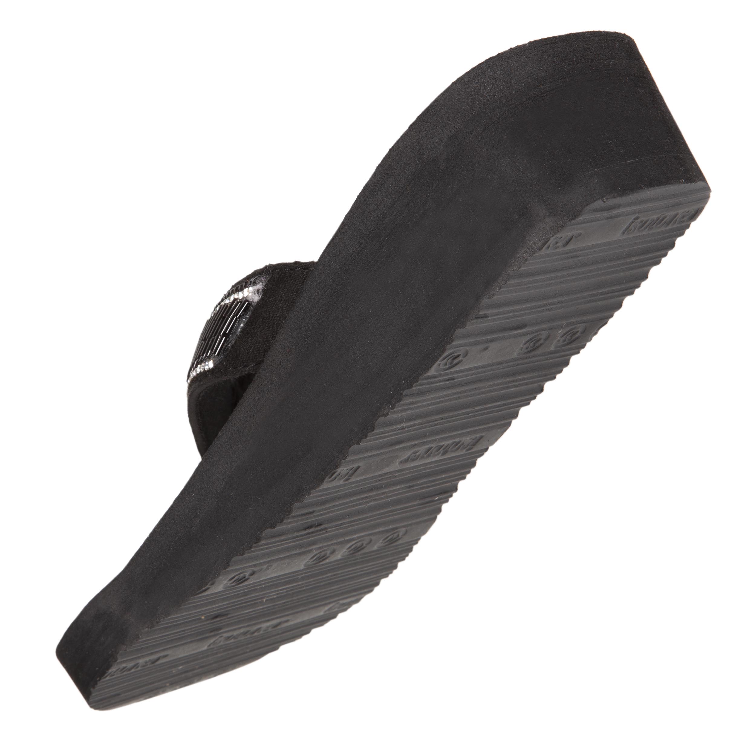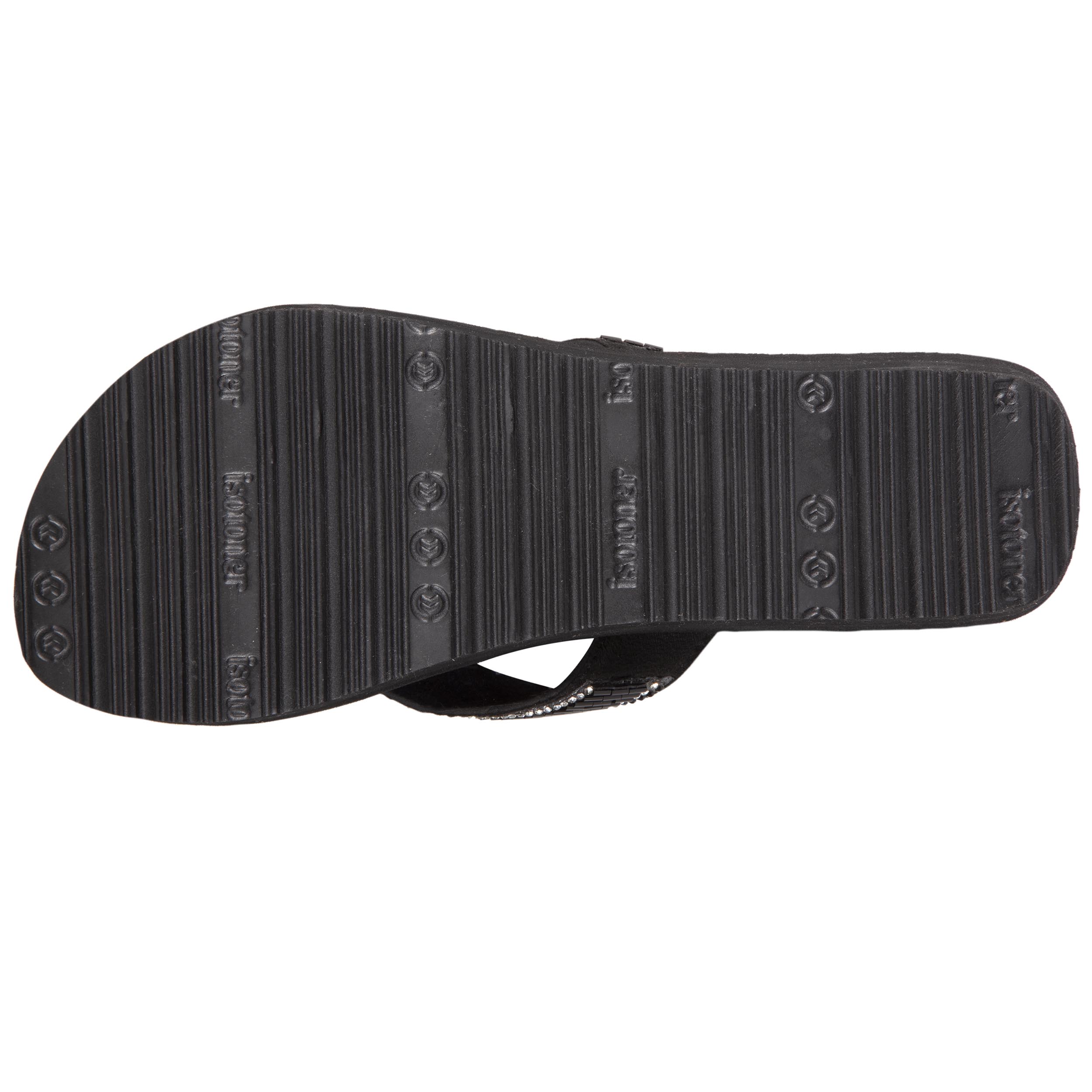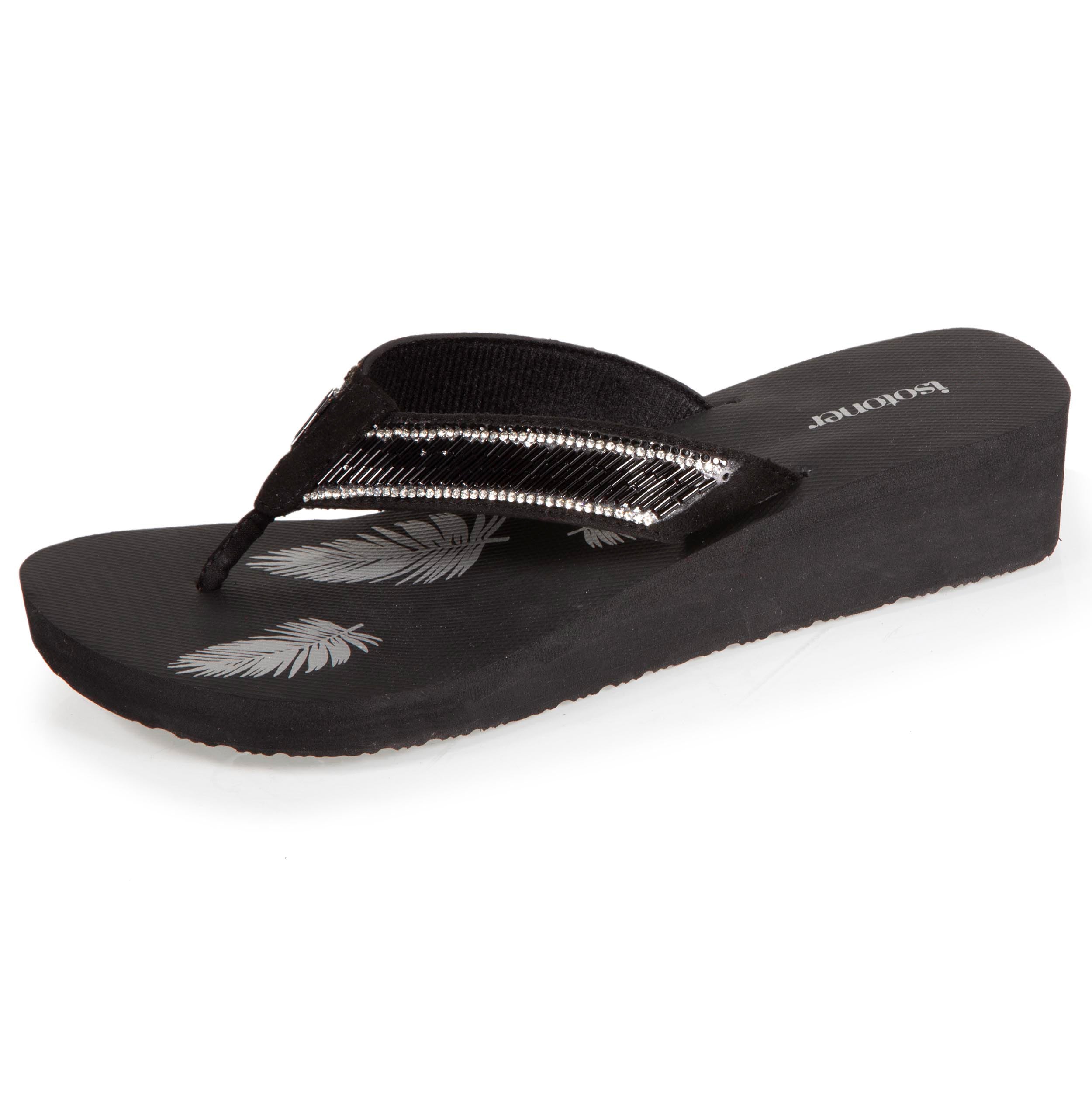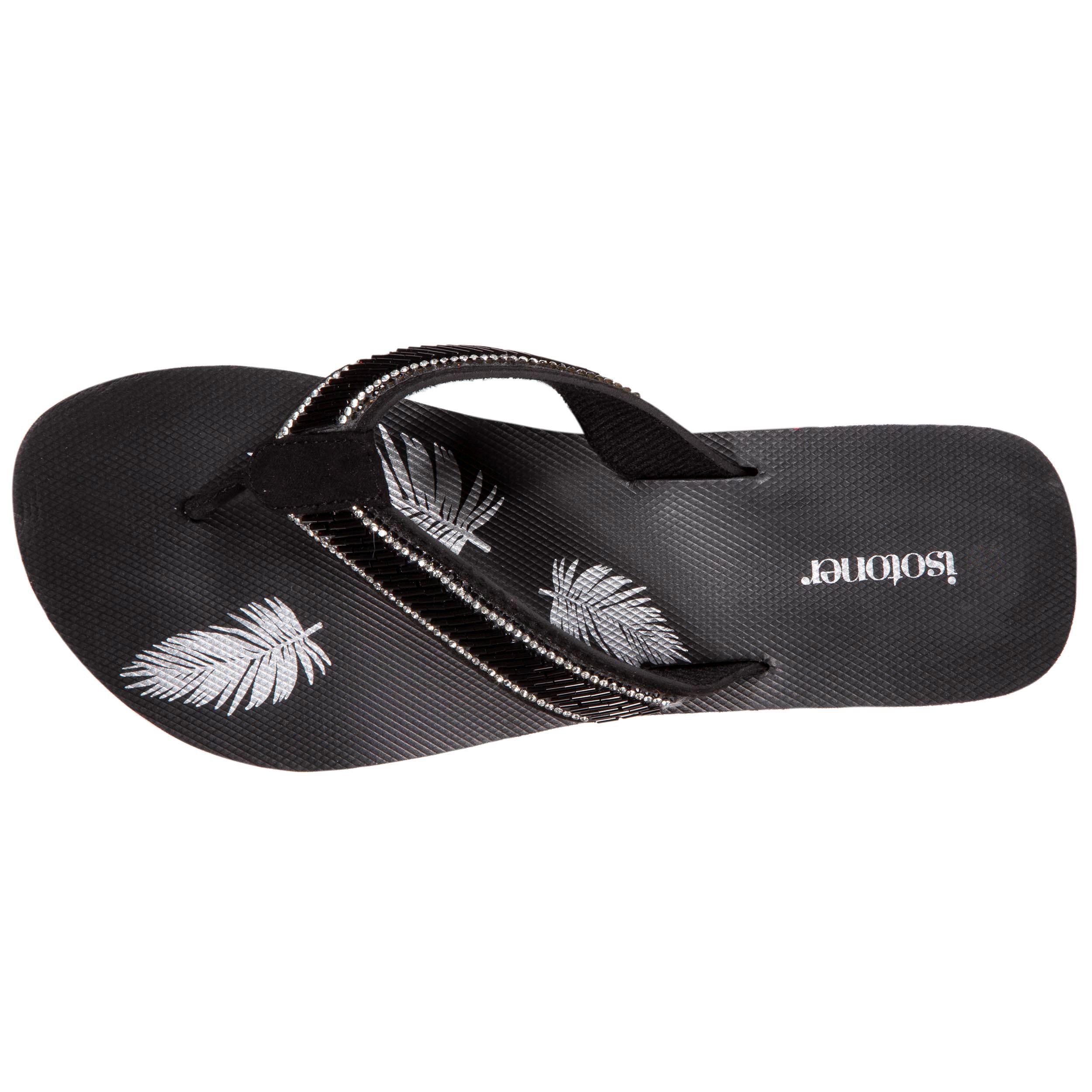 Découvrez notre nouvelle tong à perles noire pour femme Isotoner. Amatrice de talons, ces tongs sont faite pour vous ! Pour vous accompagner dans votre quotidien, à la plage, et même en soirée, ces tongs à talon de 4 cm vous procureront un confort unique. Grâce à leur couche supérieure composée à 20% de caoutchouc synthétique, ces tongs sont moelleuses et vous accompagneront durant l’été. Sophistiquées et élégantes, la tige perlée de ces tongs se mariera parfaitement avec vos tenues estivales.