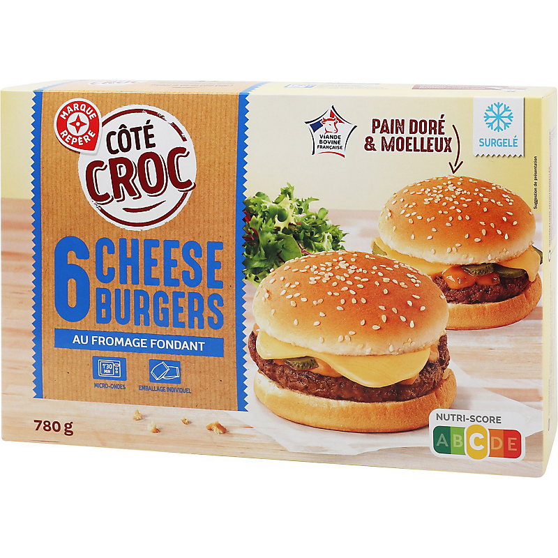 Cheeseburgers surgelés x 6 - 780 g - COTE CROC