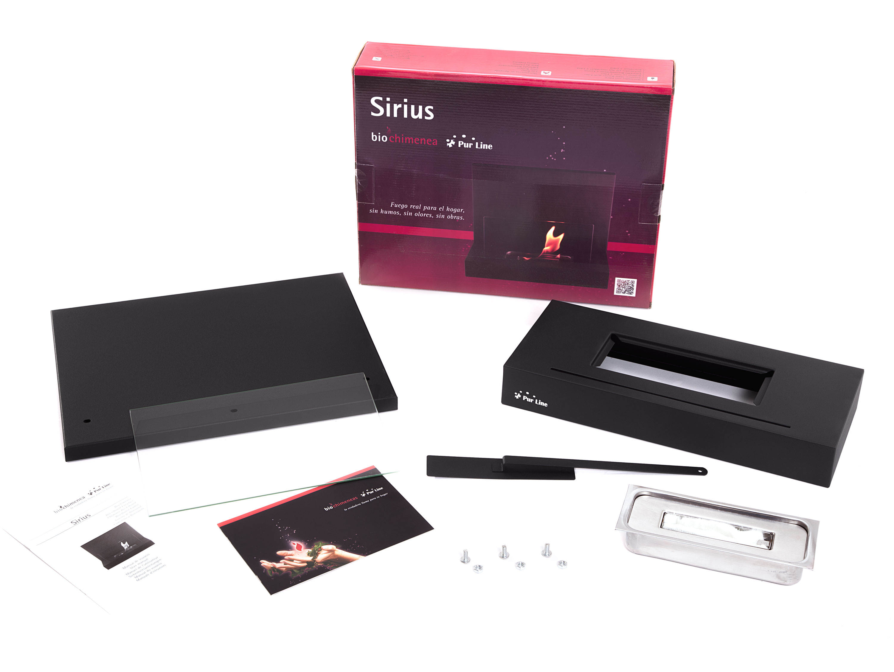 La SIRIUS est une cheminée bio au corps carré et à la base rectangulaire, réalisée en acier et en verre trempé, dont la couleur noire met en valeur la présence des flammes et apporte une touche d'élégance. Elle comprend un bloc de combustion d'une capacité de 0,2L. Sa puissance de chauffe est équivalente à 1,2 kW.