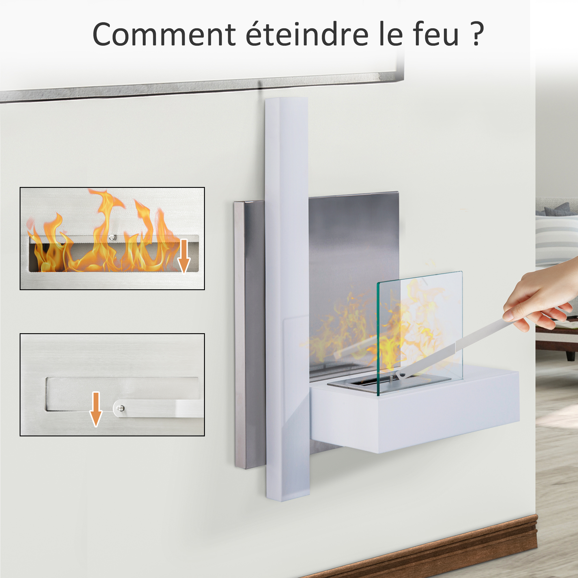 | Libellé | Cheminée bioéthanol murale design Bauhaus 1 brûleur 1,5 L 75L x 22l x 63H cm couverture 20-25 m² acier blanc inox. brossé |