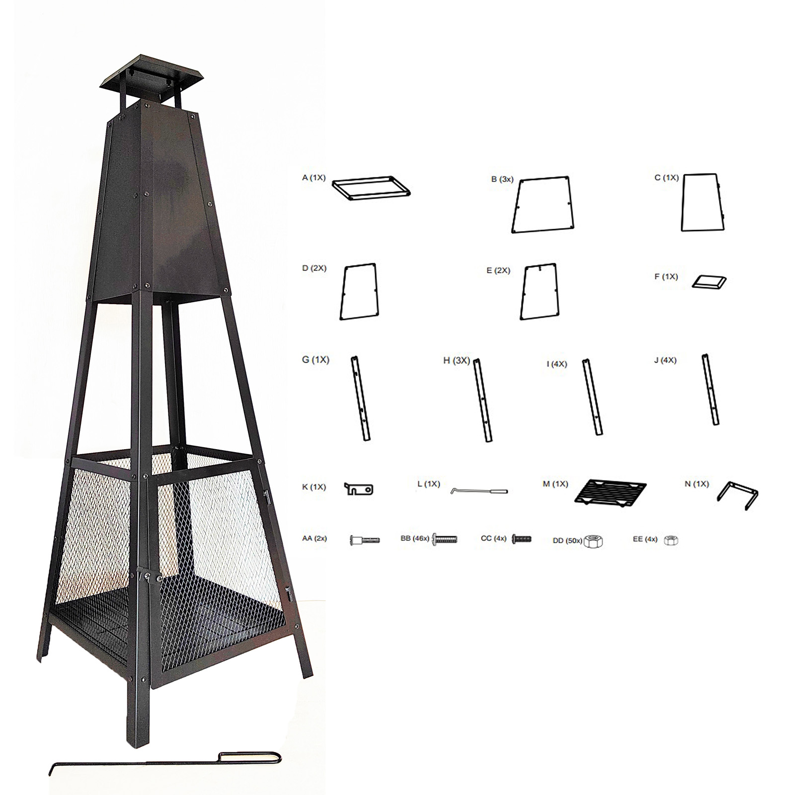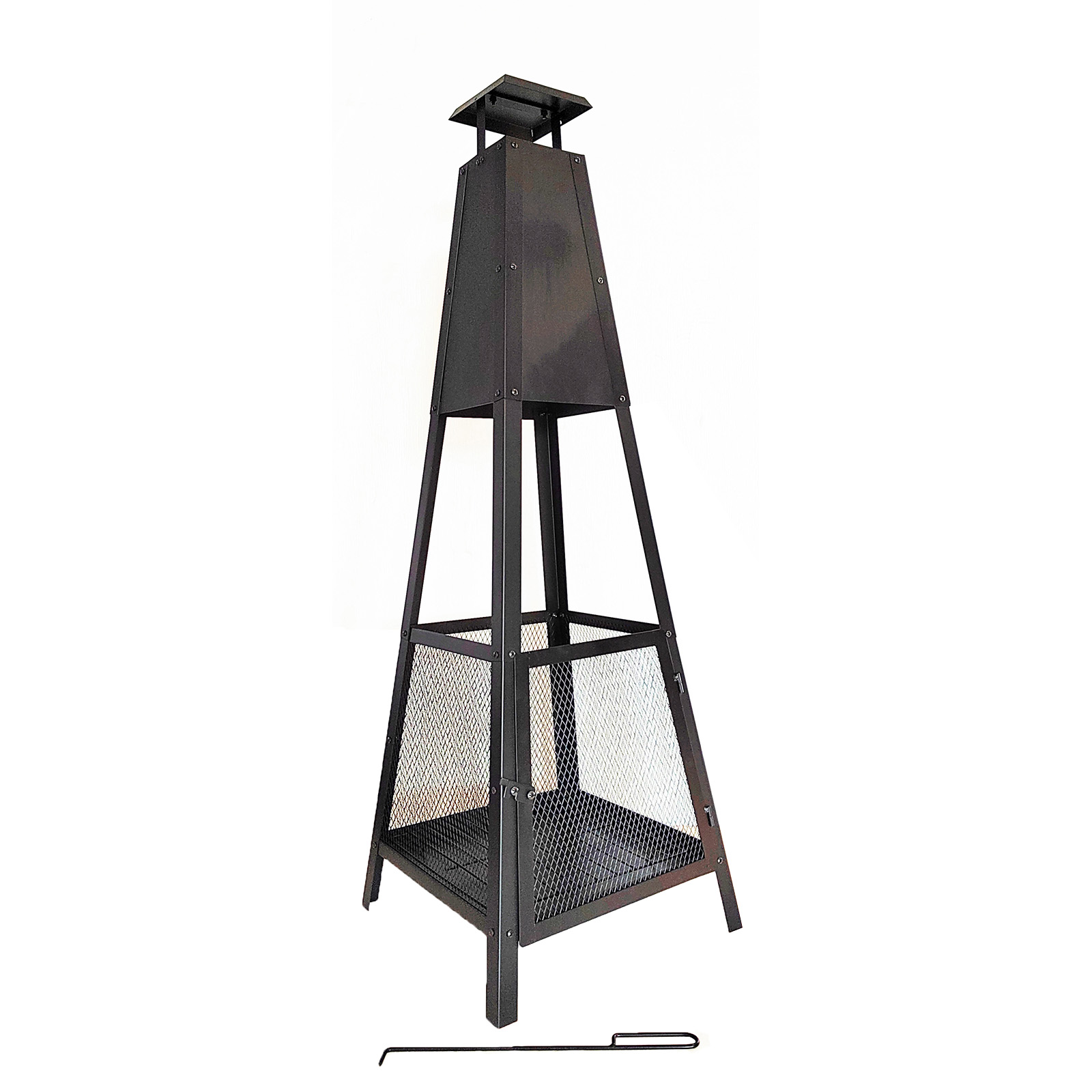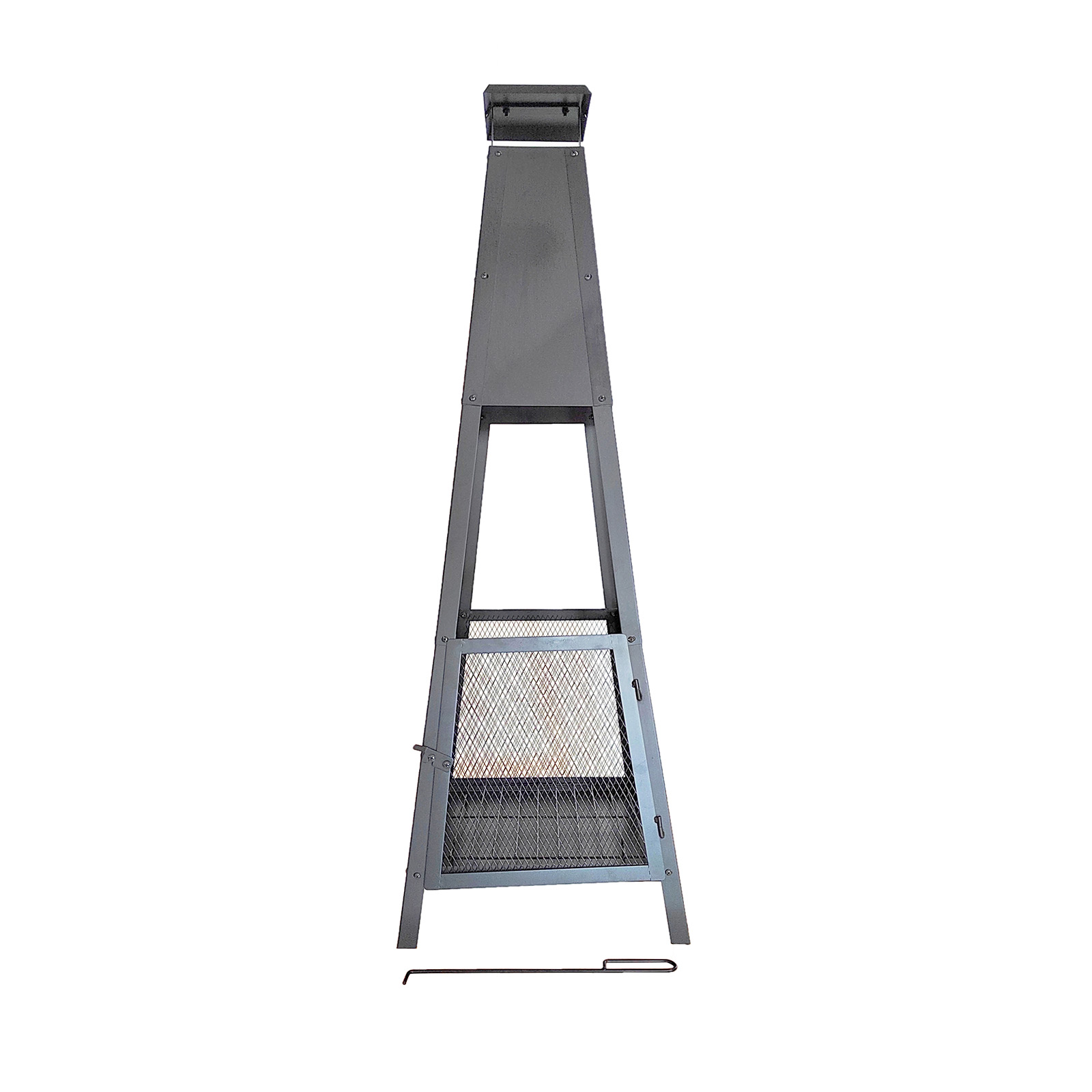 Cheminée Brasero Usage Extérieur Kekai Akita Totem 40x40x140 cm Design Pyramidale en Acier et Tisonnier