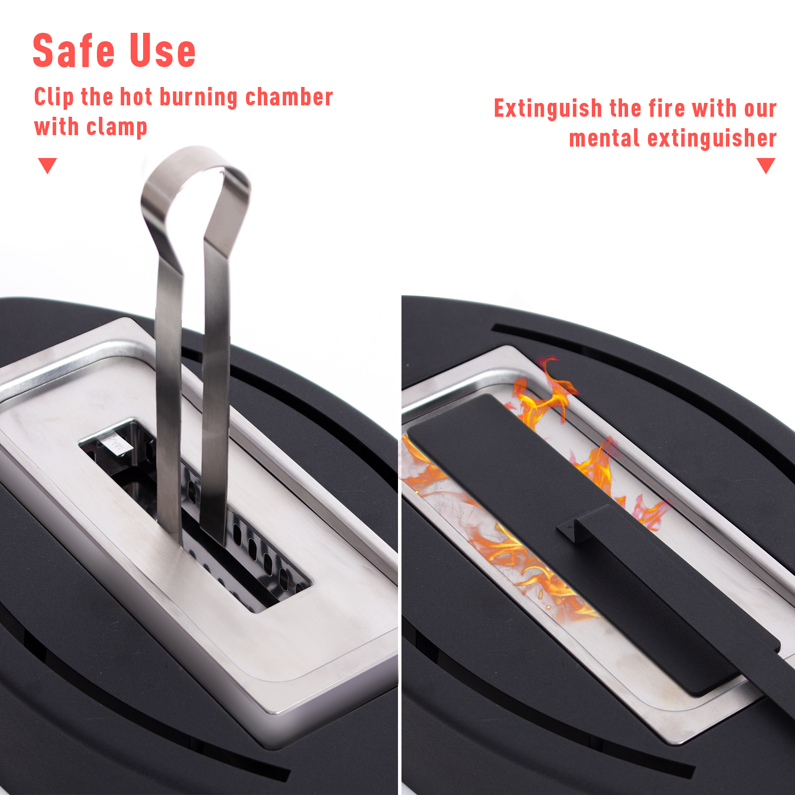 Sécurité - Il comprend un outil d'extinction d'incendie et une pince pour une protection supplémentaire, vous permettant d'éteindre rapidement les flammes sans risquer de vous brûler. La pince permet une manipulation sûre des chambres chaudes, prévenant ainsi les accidents. De plus, le couvercle en verre garantit que les flammes restent intactes et ne s'éteignent pas accidentellement.