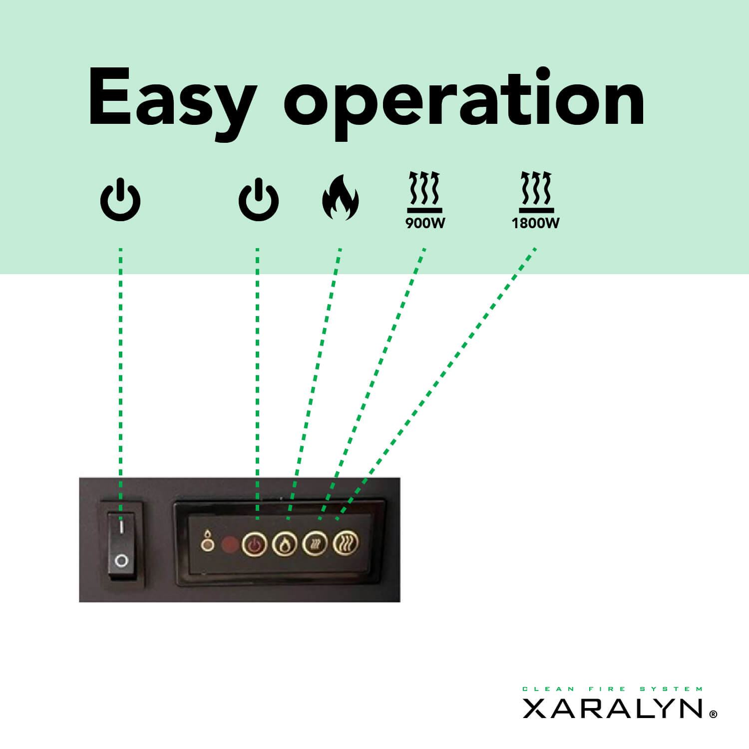 Un foyer électrique donne l'illusion d'un vrai feu de cheminée sans les inconvénients. Le Xaralyn Lagos est particulièrement économe en énergie grâce à notre toute dernière technologie LED et dispose en plus d'une fonction de chauffage de 900 et 1800 Watts. Le Lagos offre un bon effet tridimensionnel et est parfaitement adapté à une utilisation quotidienne.