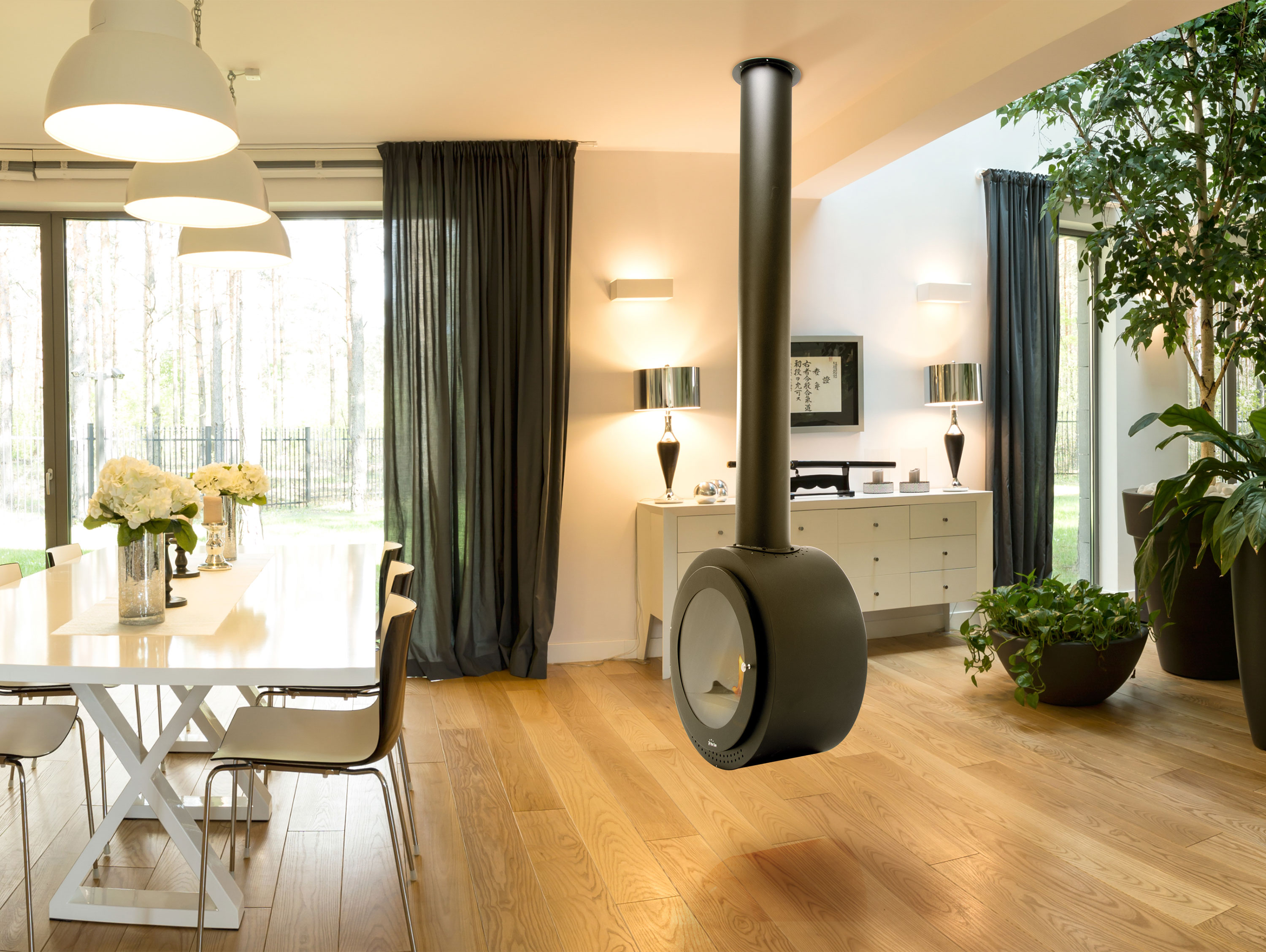 La SYKE ROUND est un cheminée à accrocher au plafond, de grande taille (LxPxH: 60 x 35 x 210cm) et une ligne moderne qui apporte une touche de design très attrayante qui se combine avec la décoration de n'importe quelle maison. Avec cet élégant biochimenea, il est possible de profiter du feu d'une maison sur le mur de votre salon ou chambre et d'une manière beaucoup plus simple et économique qu'avec une cheminée classique.