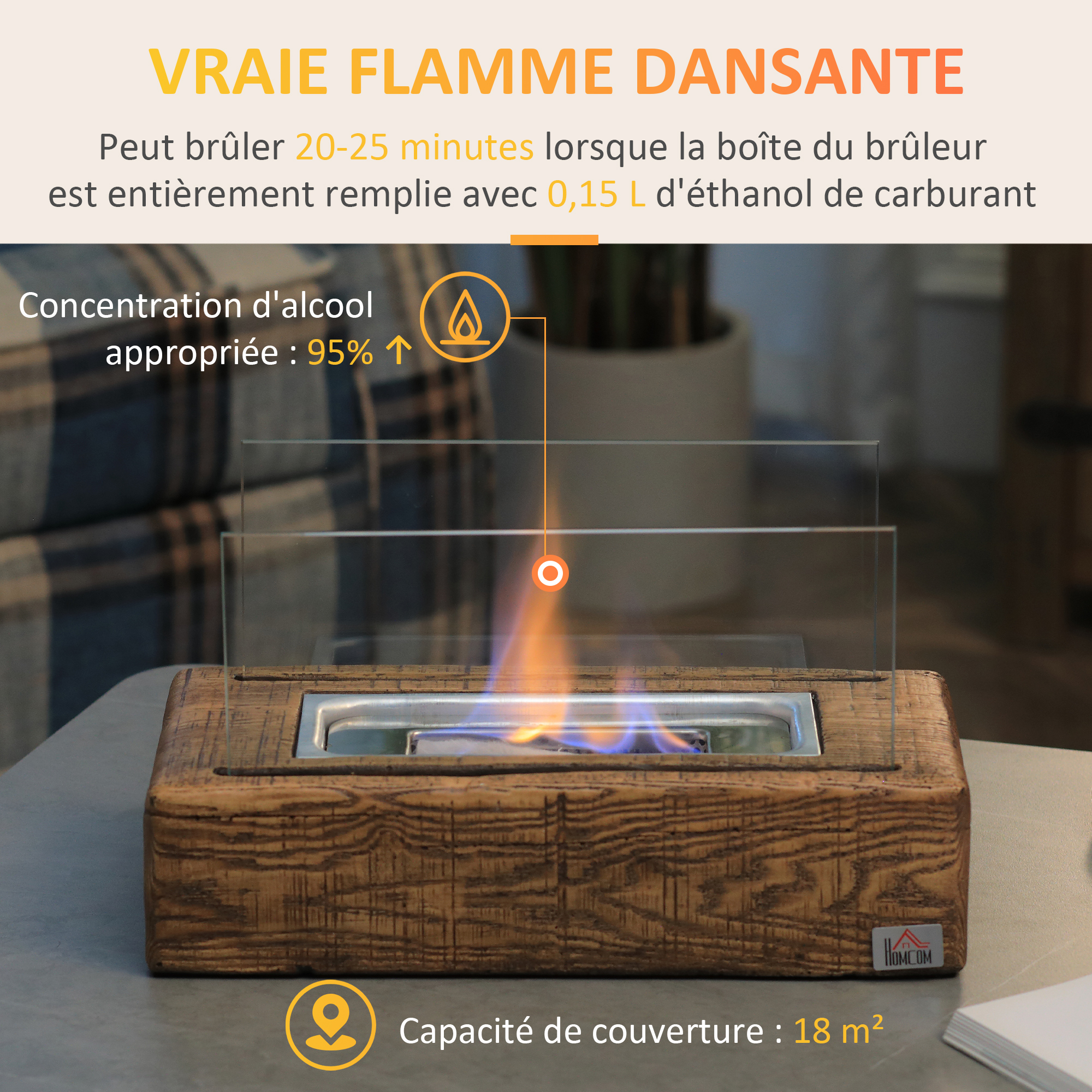 Cheminée portable à poser bioéthanol avec réservoir 0,15 L couverture 18 m² - design bûche de bois - dim.