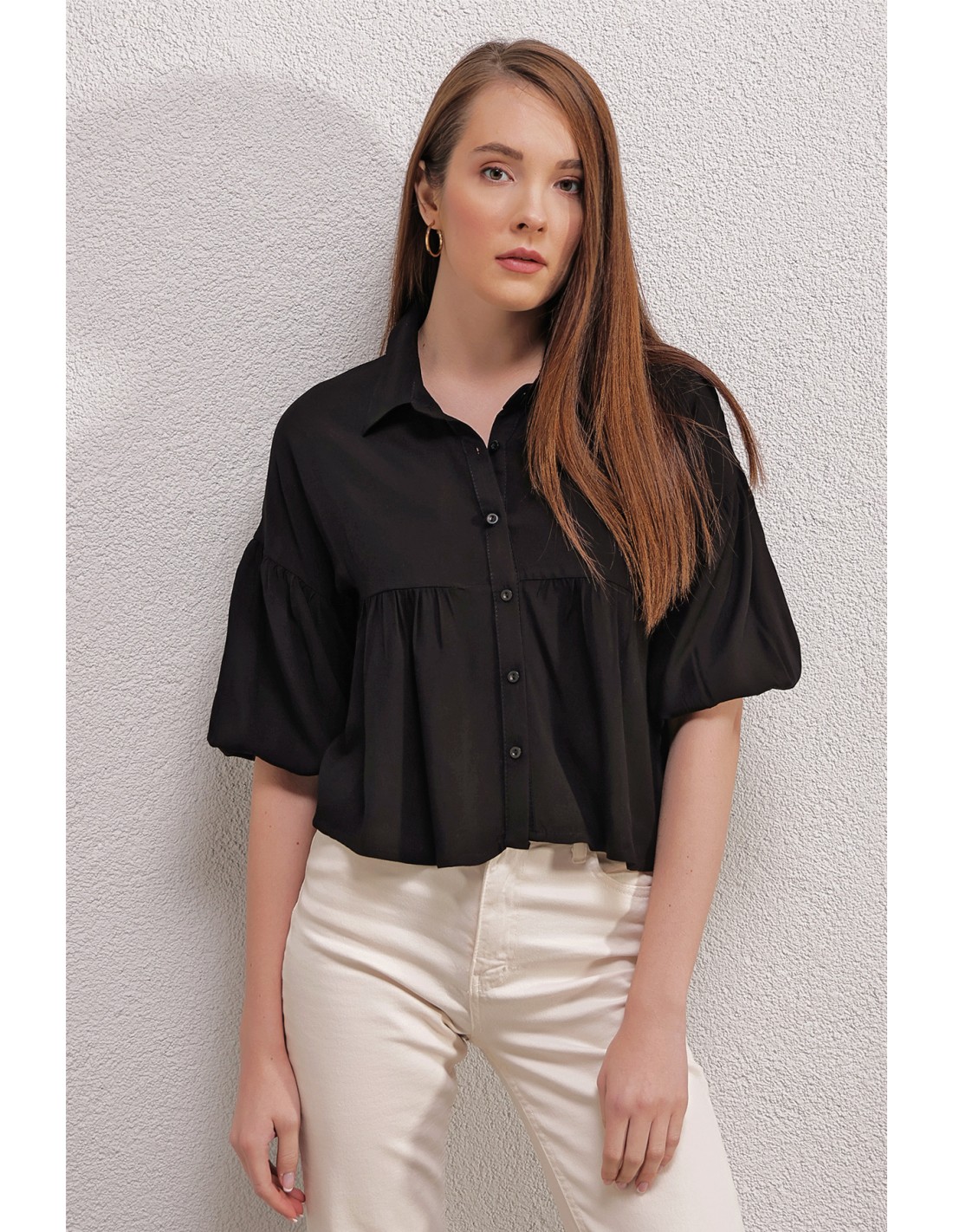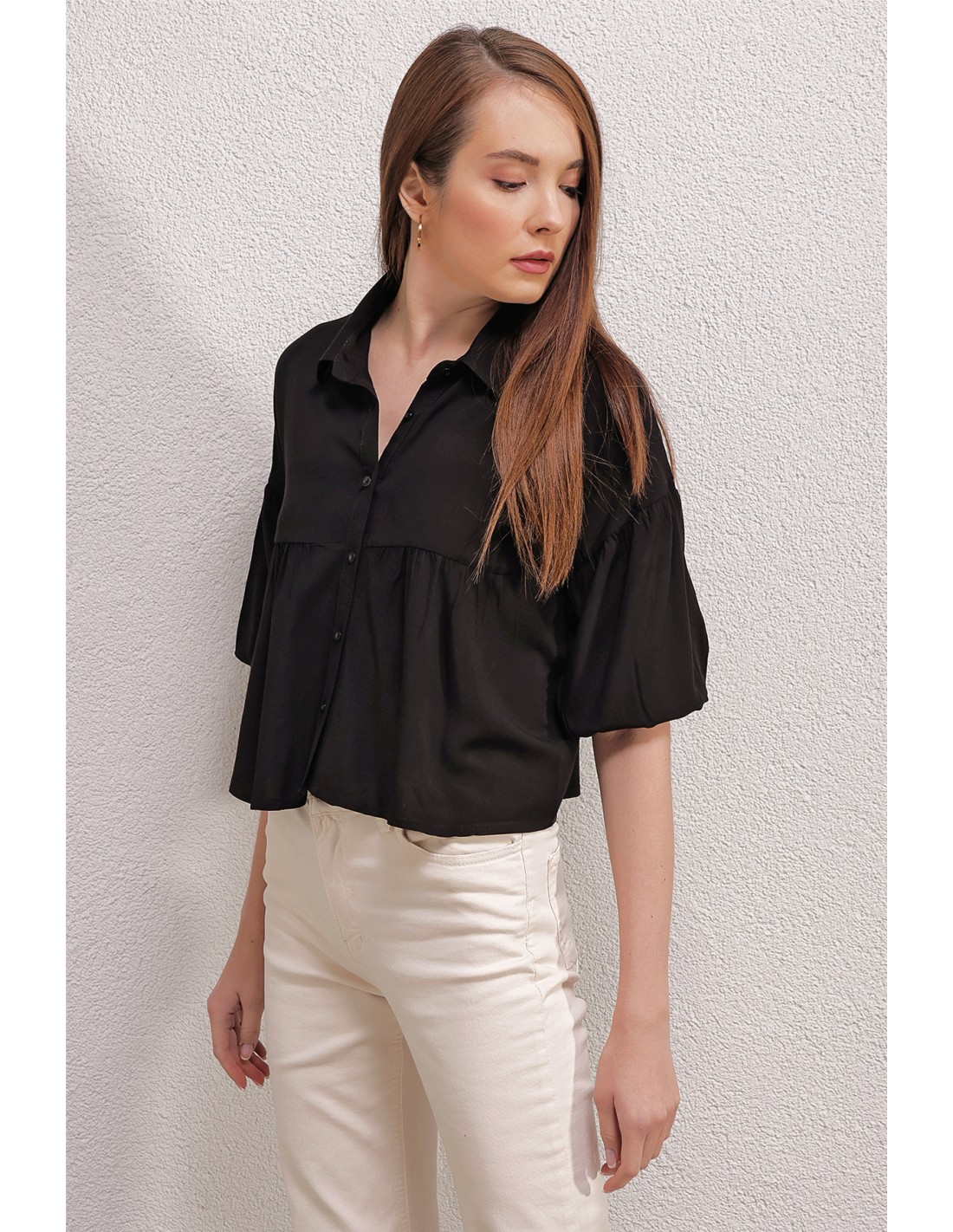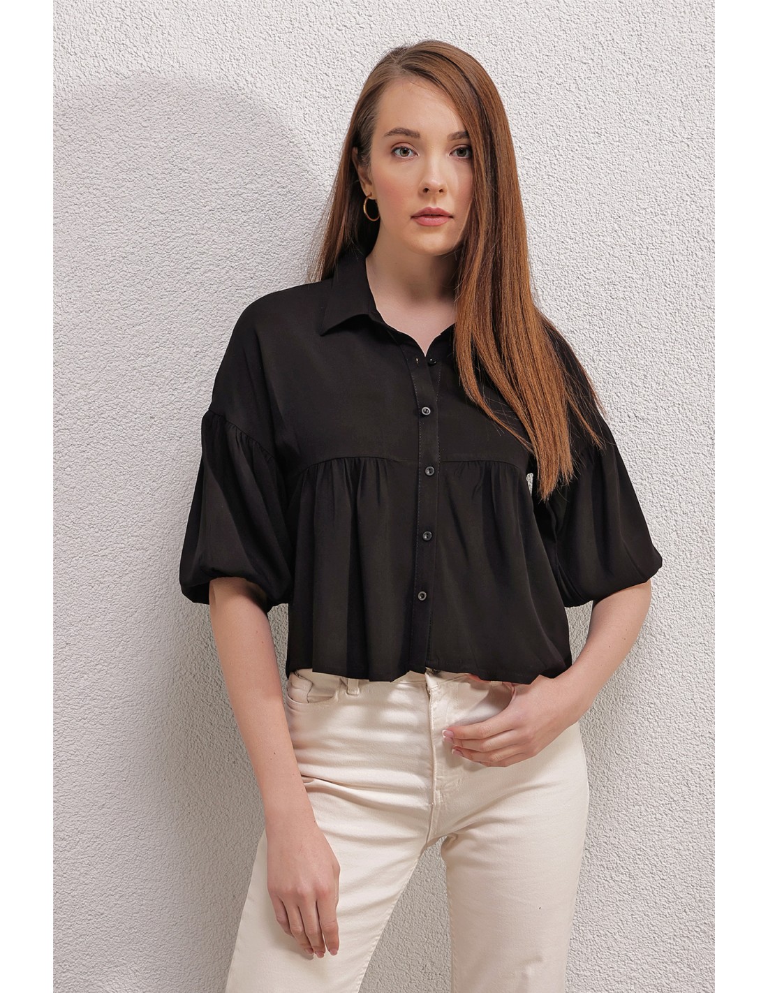 Découvrez cette chemise courte femme noire en 100% viscose, un essentiel intemporel pour une élégance raffinée au quotidien. Son tissu fluide et léger offre un tombé parfait pour un look sophistiqué et confortable. Commandez dès maintenant et profitez de la livraison offerte dès 49€ d'achat.