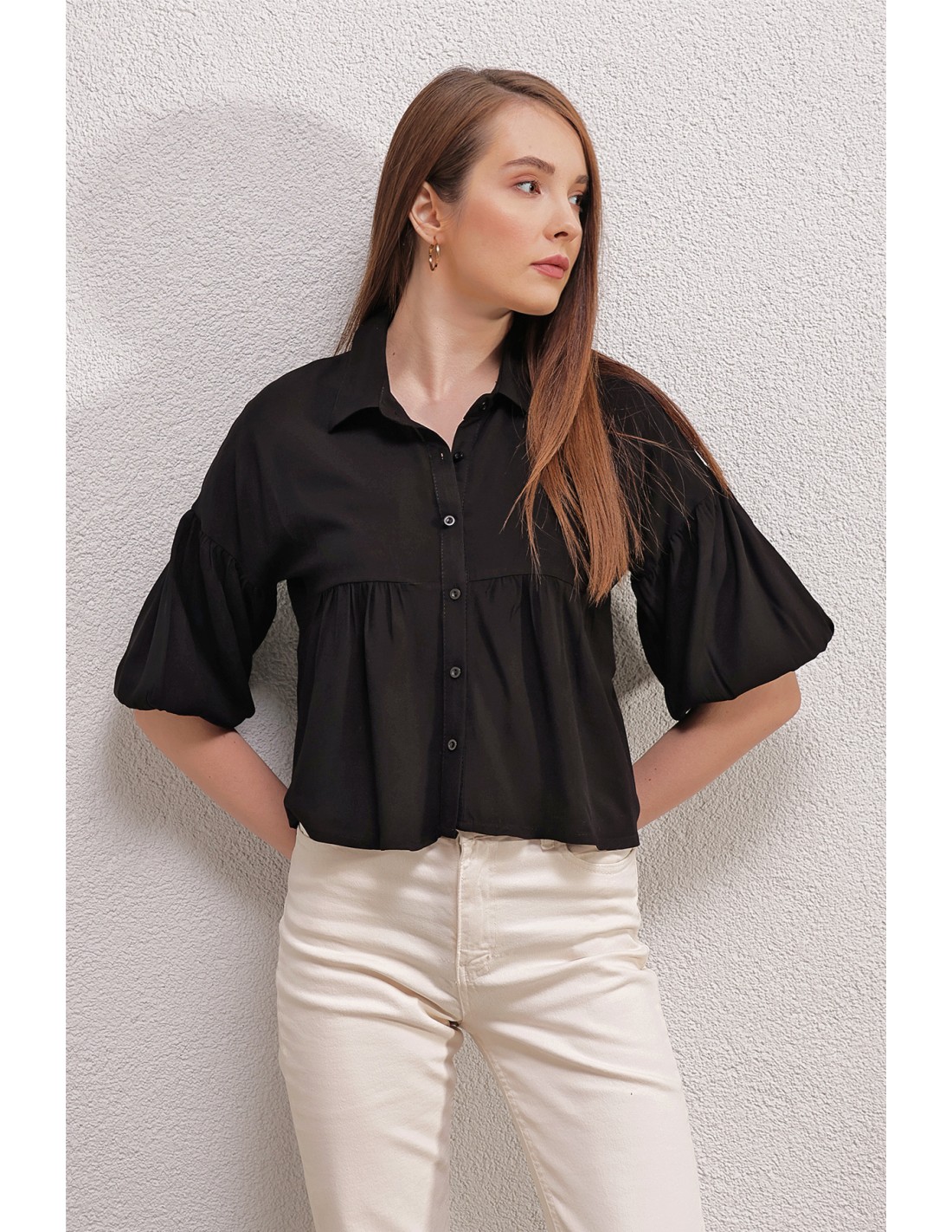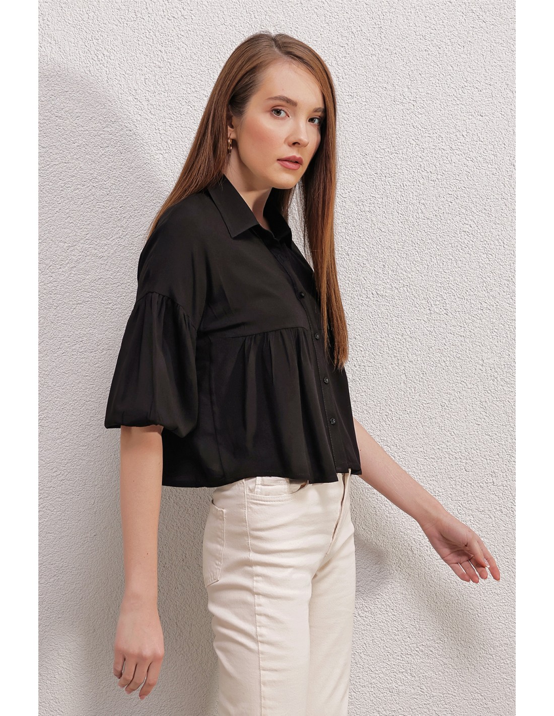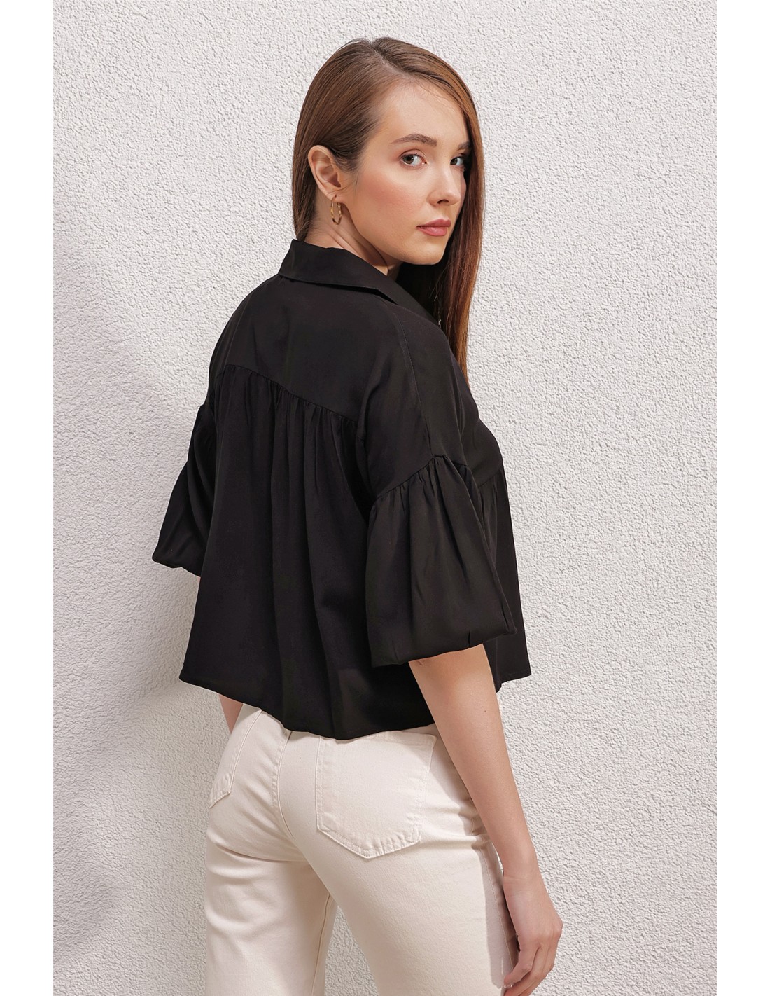 Découvrez cette chemise courte femme noire en 100% viscose, un essentiel intemporel pour une élégance raffinée au quotidien. Son tissu fluide et léger offre un tombé parfait pour un look sophistiqué et confortable. Commandez dès maintenant et profitez de la livraison offerte dès 49€ d'achat.