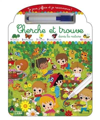 L'enfant s'amuse à chercher, compter, puis entourer avec un feutre effaçable jusqu'à 10 petits éléments cachés dans des paysages colorés et animés !