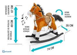 Cheval à bascule Mustang. Chaque enfant rêve d'un jouet tel que ce cheval à bascule unique. En plus des fonctions de bascule traditionnelles, il dispose d'un certain nombre d'options attrayantes pour rendre le plaisir agréable et attrayant. Un cheval est équipé de bascules en bois et de poignées en bois. dimensions : hauteur : 67 cm, longueur : 74 cm, largeur : 28 cm hauteur à selle : 49 cm charge maximale 30 kg