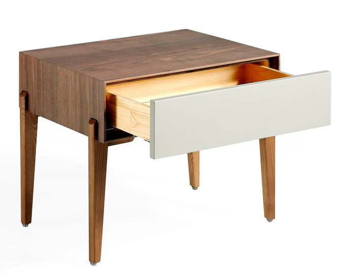 Chevet 1 tiroir bois laqué et bois noyer Muza-Couleur Country