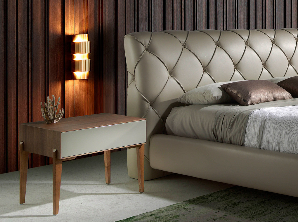 Chevet 1 tiroir bois laqué et bois noyer Muza-Couleur Crystal