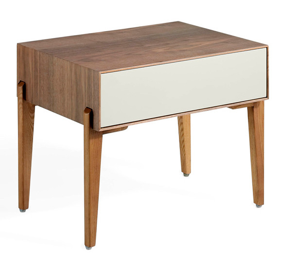Chevet 1 tiroir bois laqué et bois noyer Muza-Couleur Cuir