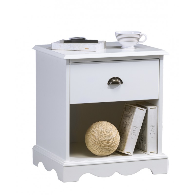 Chevet Blanc 1 Tiroir 1 Niche, de Style Anglais.