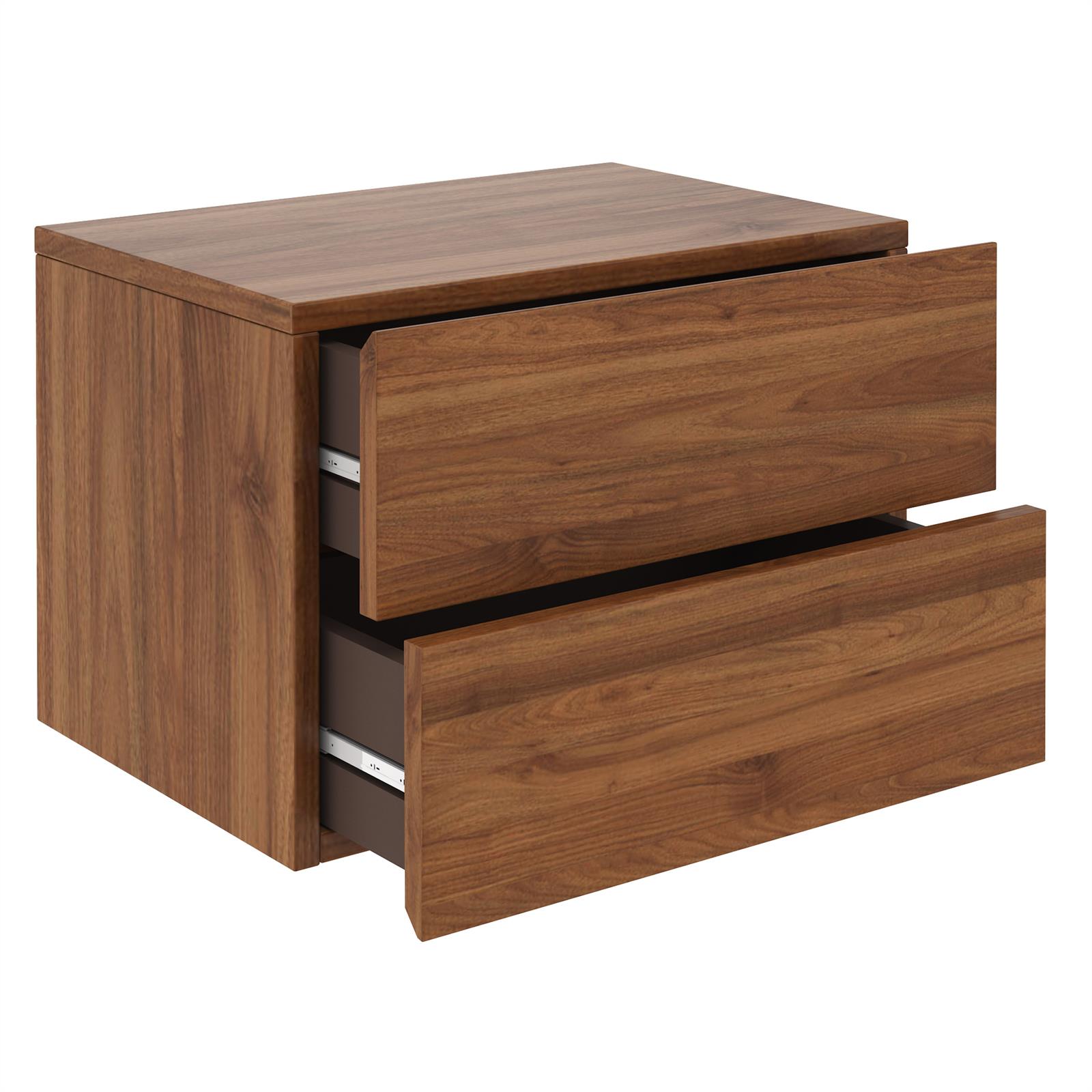 | Libellé | Chevet suspendu FLORENT, étagère murale avec 2 tiroirs sans poignée, en mélaminé couleur noyer |