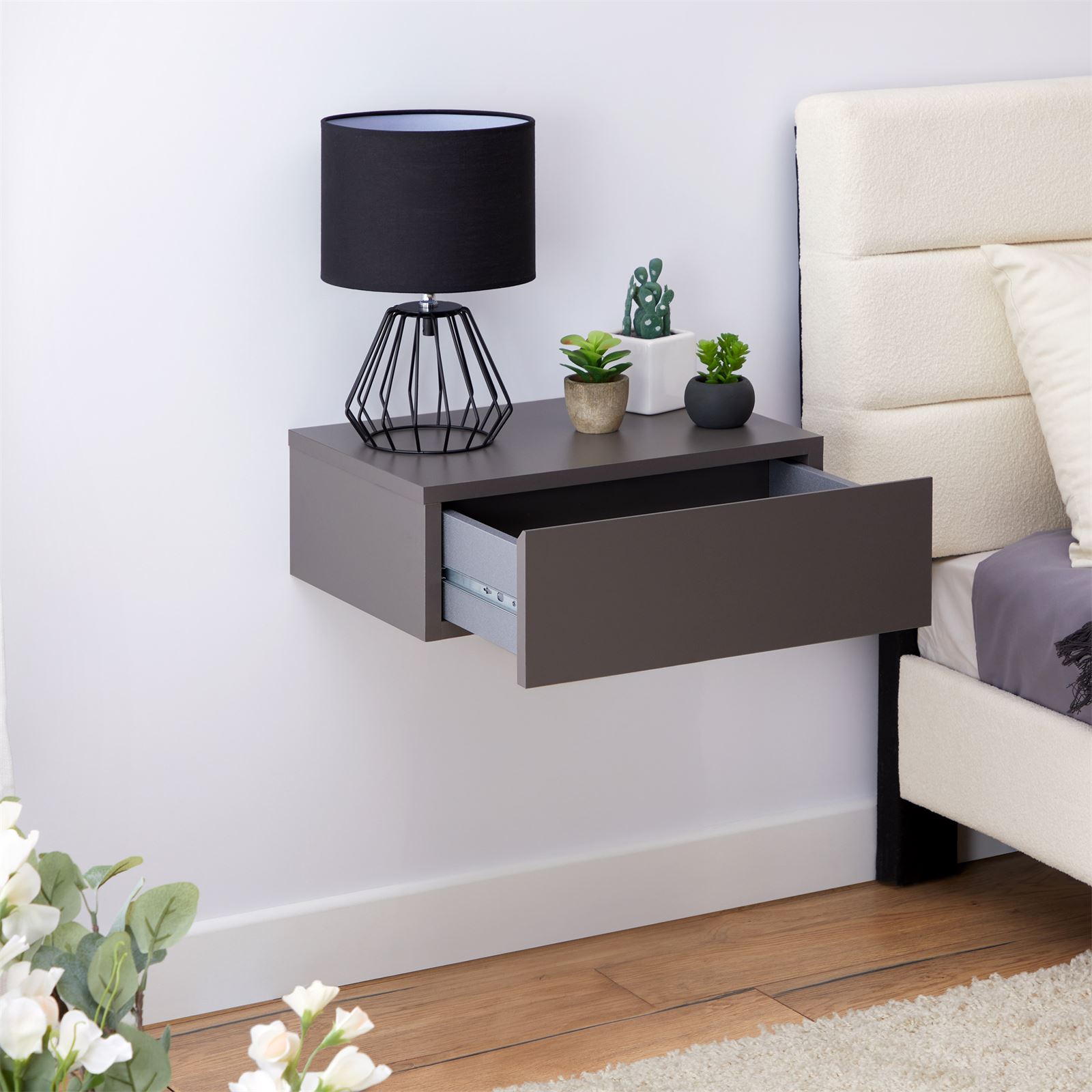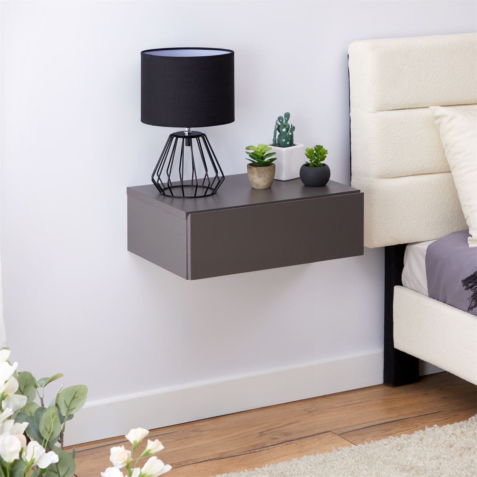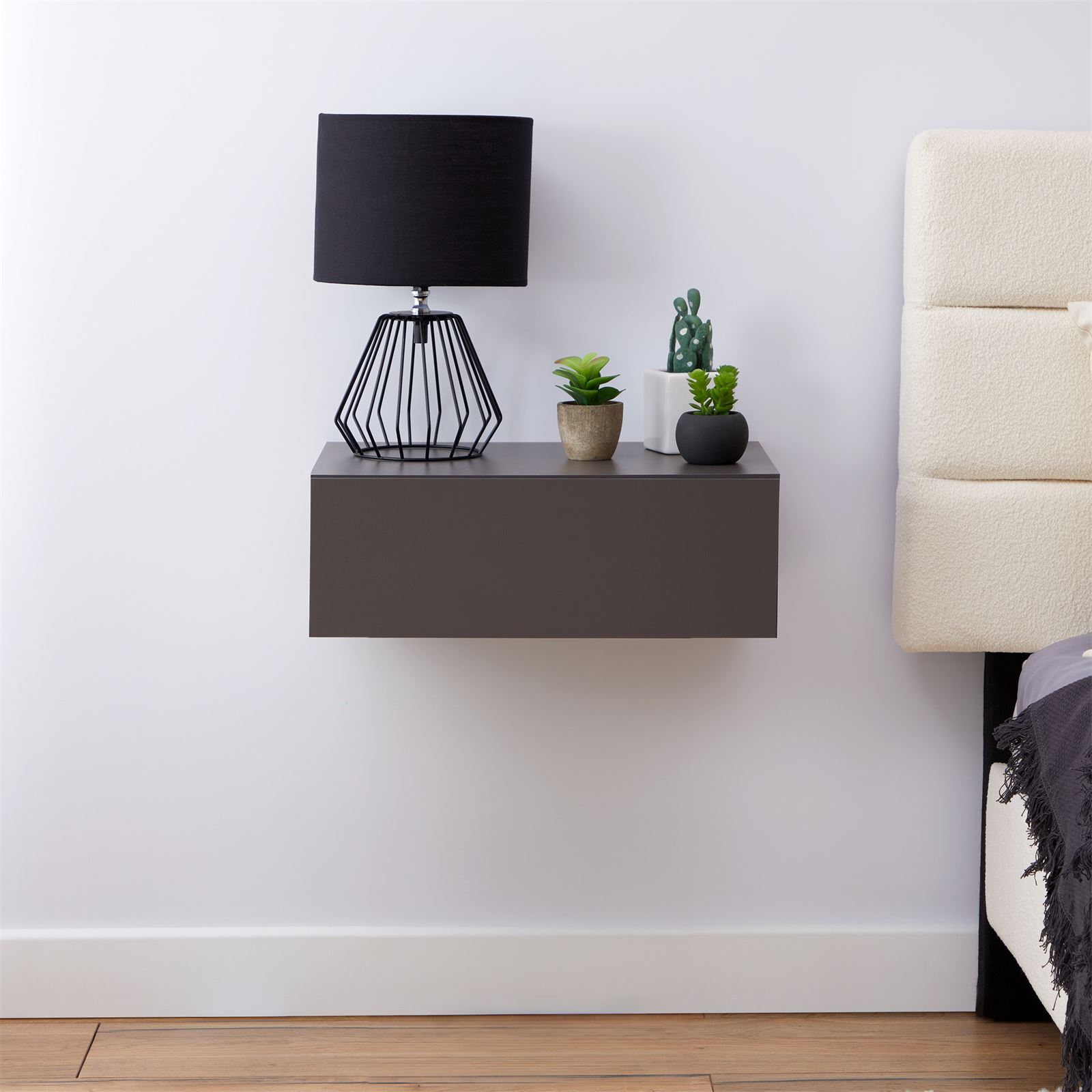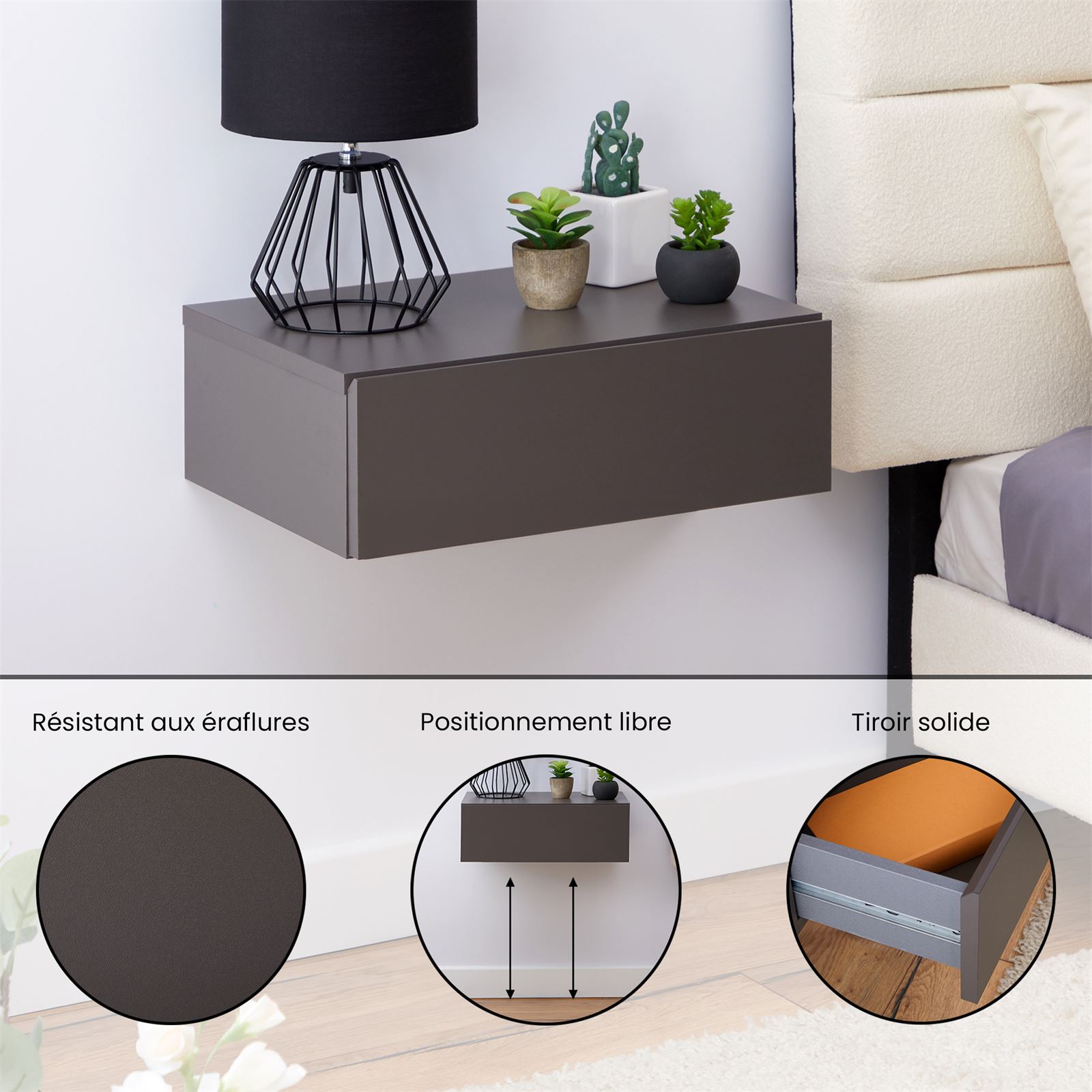 | Libellé | Chevet suspendu OCEANE, étagère murale avec 1 tiroir sans poignée, en mélaminé gris mat |