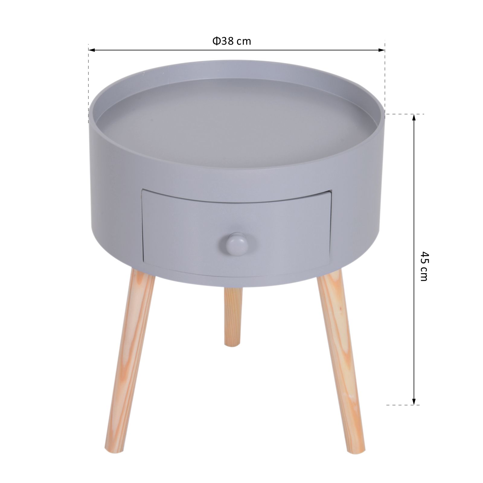 | Libellé | Chevet table de nuit ronde design scandinave tiroir bicolore pieds effilés inclinés bois massif chêne clair gris |