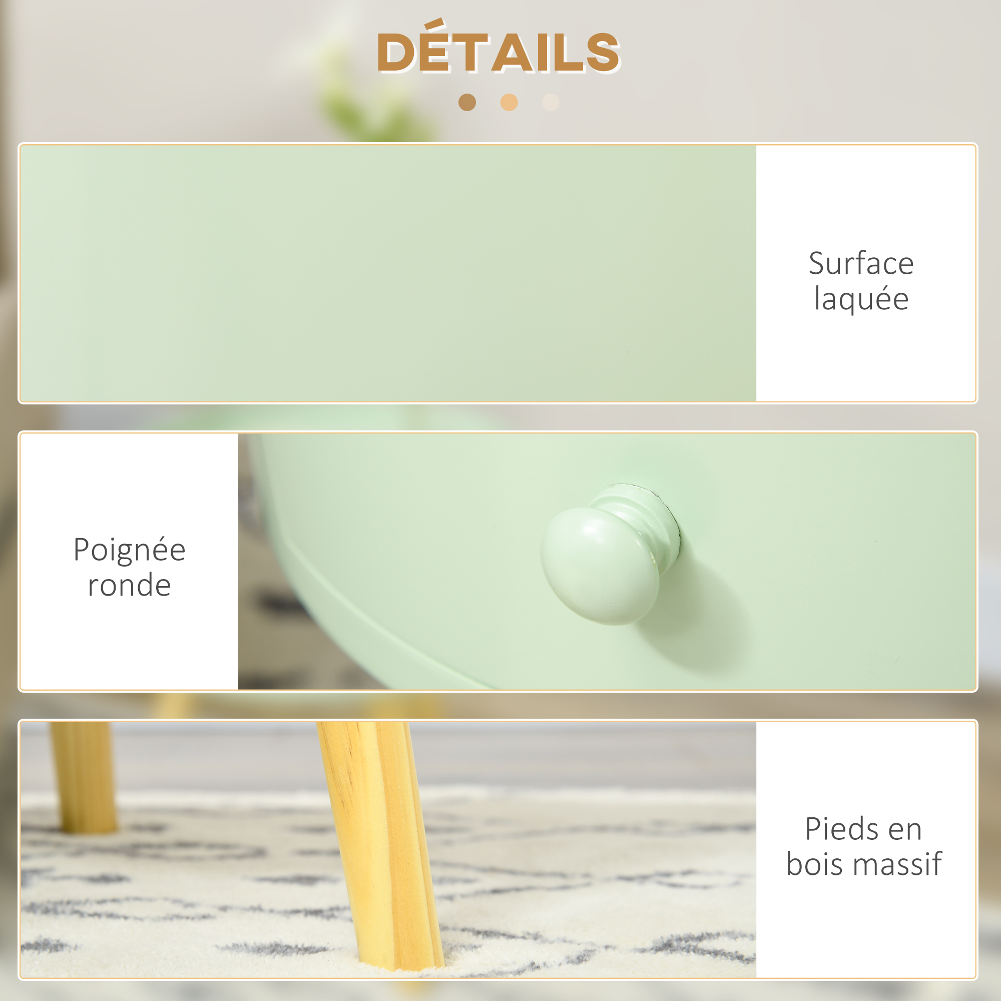- Plateau supérieur avec bordure, idéal pour poser des affaires