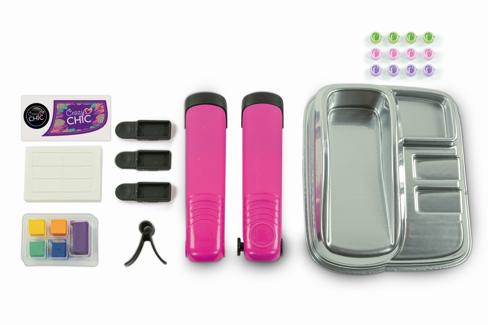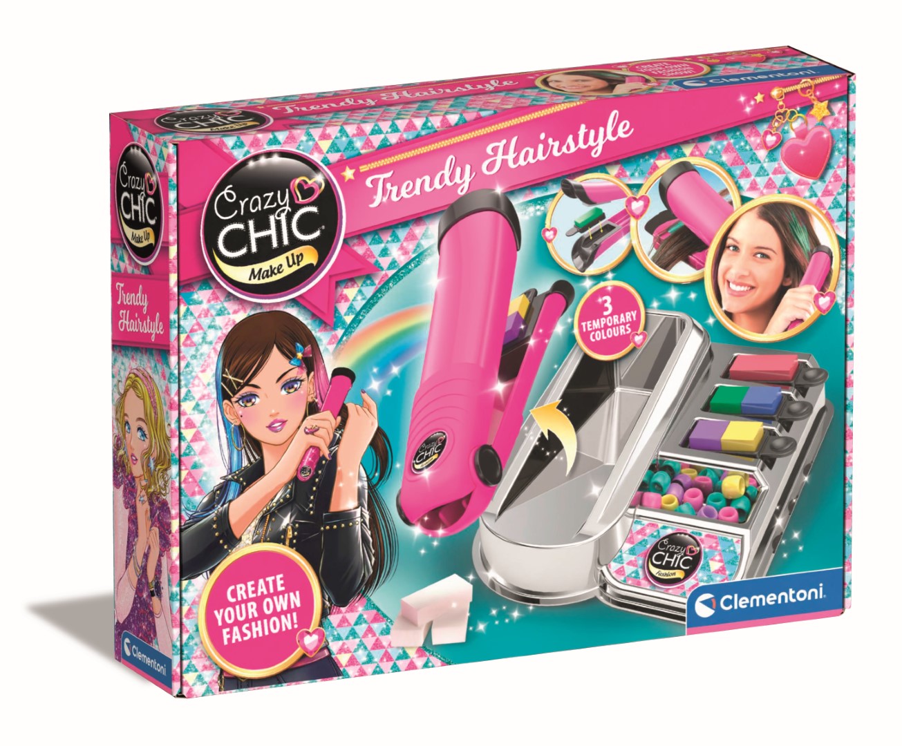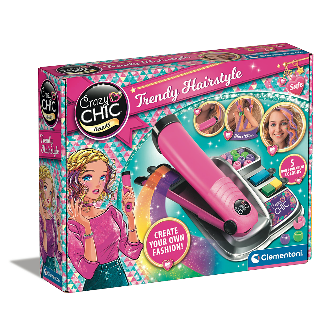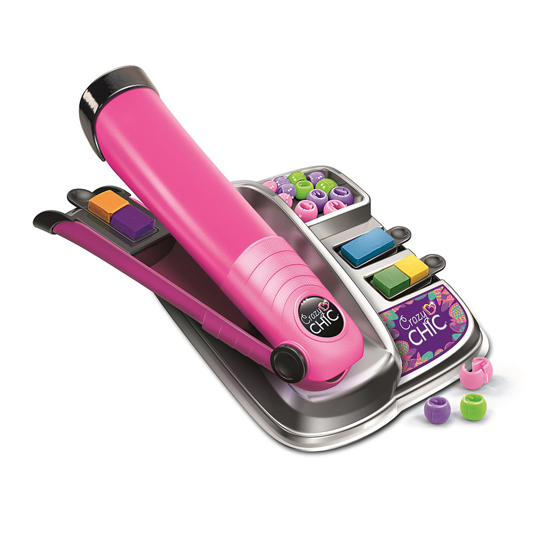 • Avec le coffret de coloration pour cheveux Crazy Chic, tu peux créer des mèches arc-en-ciel comme une vraie coiffeuse ! • Le "fer à lisser" au design moderne et à la touche professionnelle comprend un espace où insérer facilement la cartouche de couleur interchangeable. • Le coffret contient également des perles pour embellir tes coiffures ! • Pour un look toujours nouveau, grâce à sa facilité d’utilisation et à la variété de couleurs.